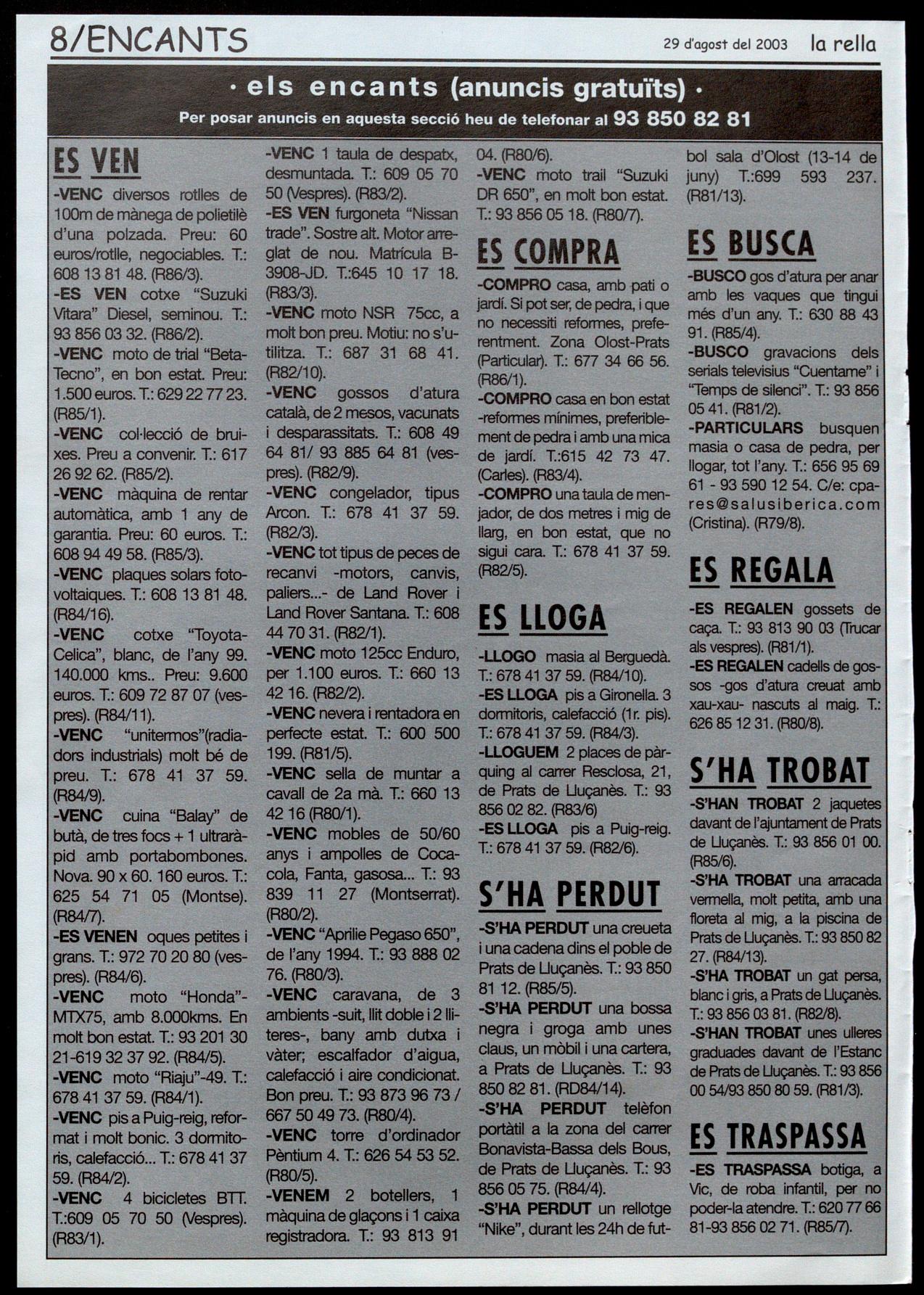 MAJOR, 44, bis T.: 93 850 81 92 PRATS DE LLUÇANÈS