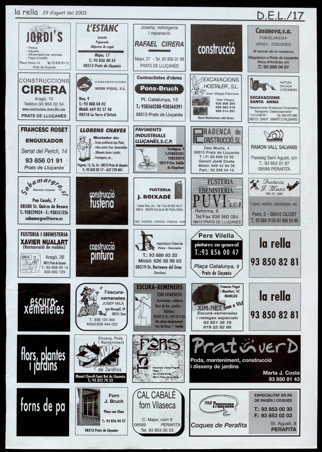 Av. Pau Casa/s, 54- Prats de Uuçanès T.: 93 850 82 44