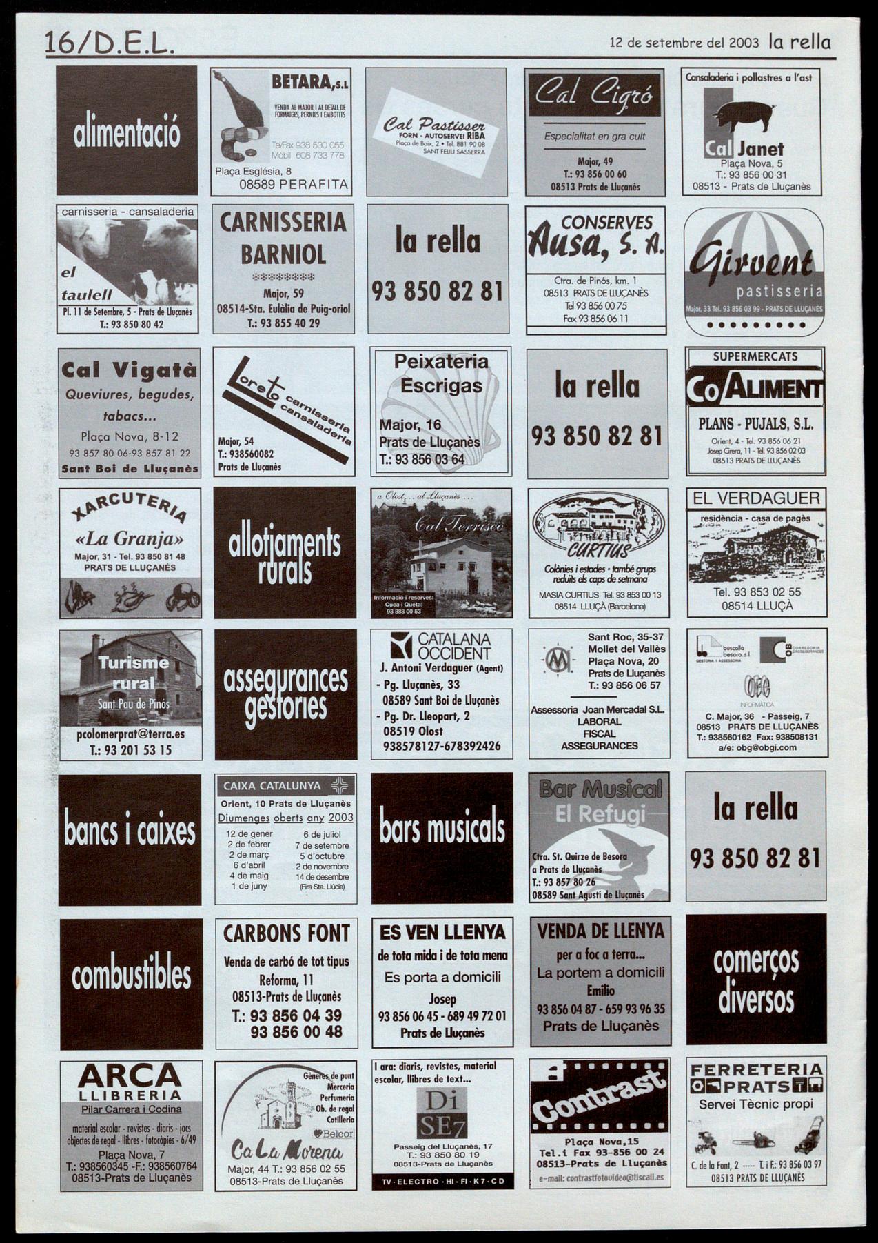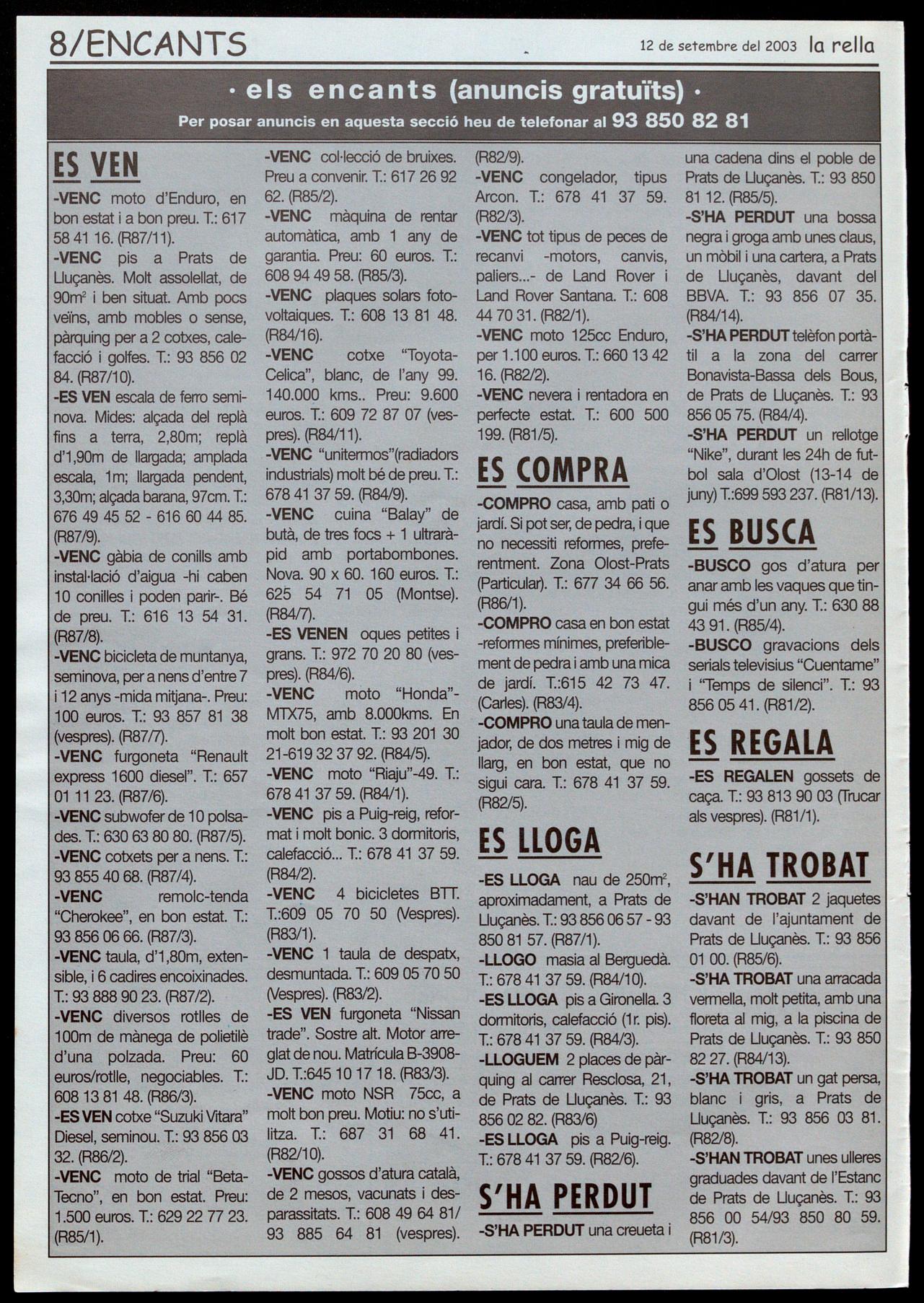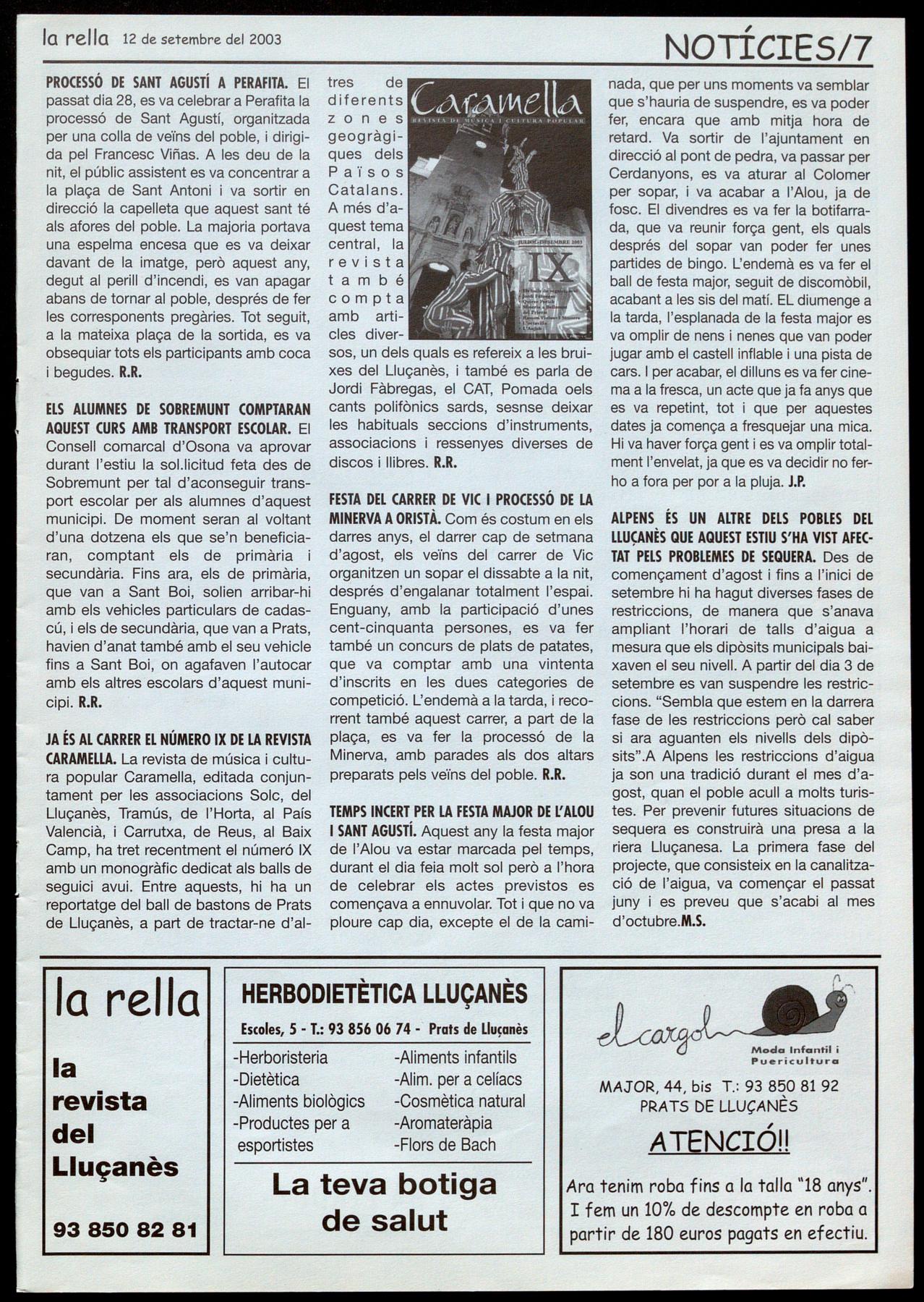 a totes les entitats esportives, ajunta-ments, esportistes de la comarca �ra que comença, en moltes especialitats esportives, una nova temporada de competicions, ens convindria que féssiu arribar a la redacció de la rellaMajor, 51, baixos, 08513Prats de L1uçanès/ T. i F.: 93 850 82 81/ solc@pangea.org- el calendari de partits activitats, d'aquesta manera podrem oferir una agenda completa i amb les dades permanentment actualitzades.