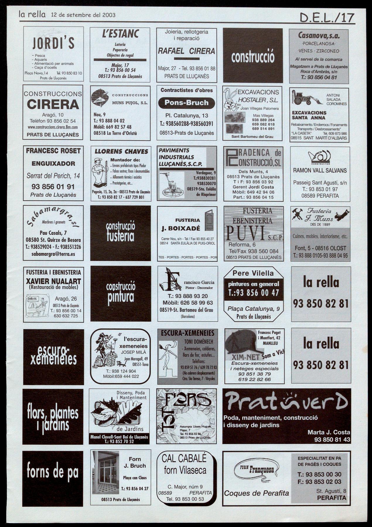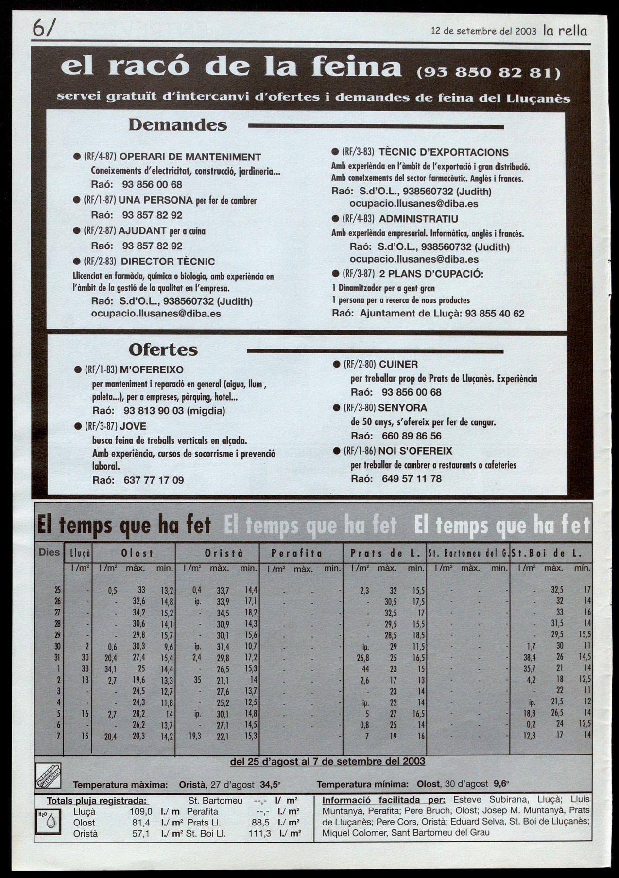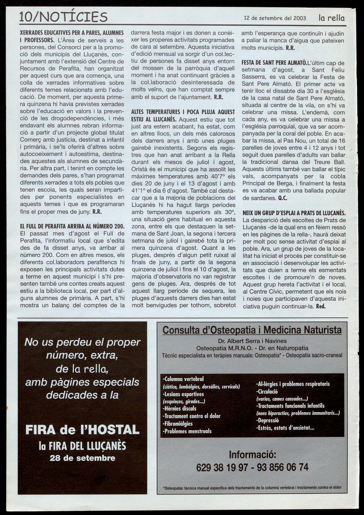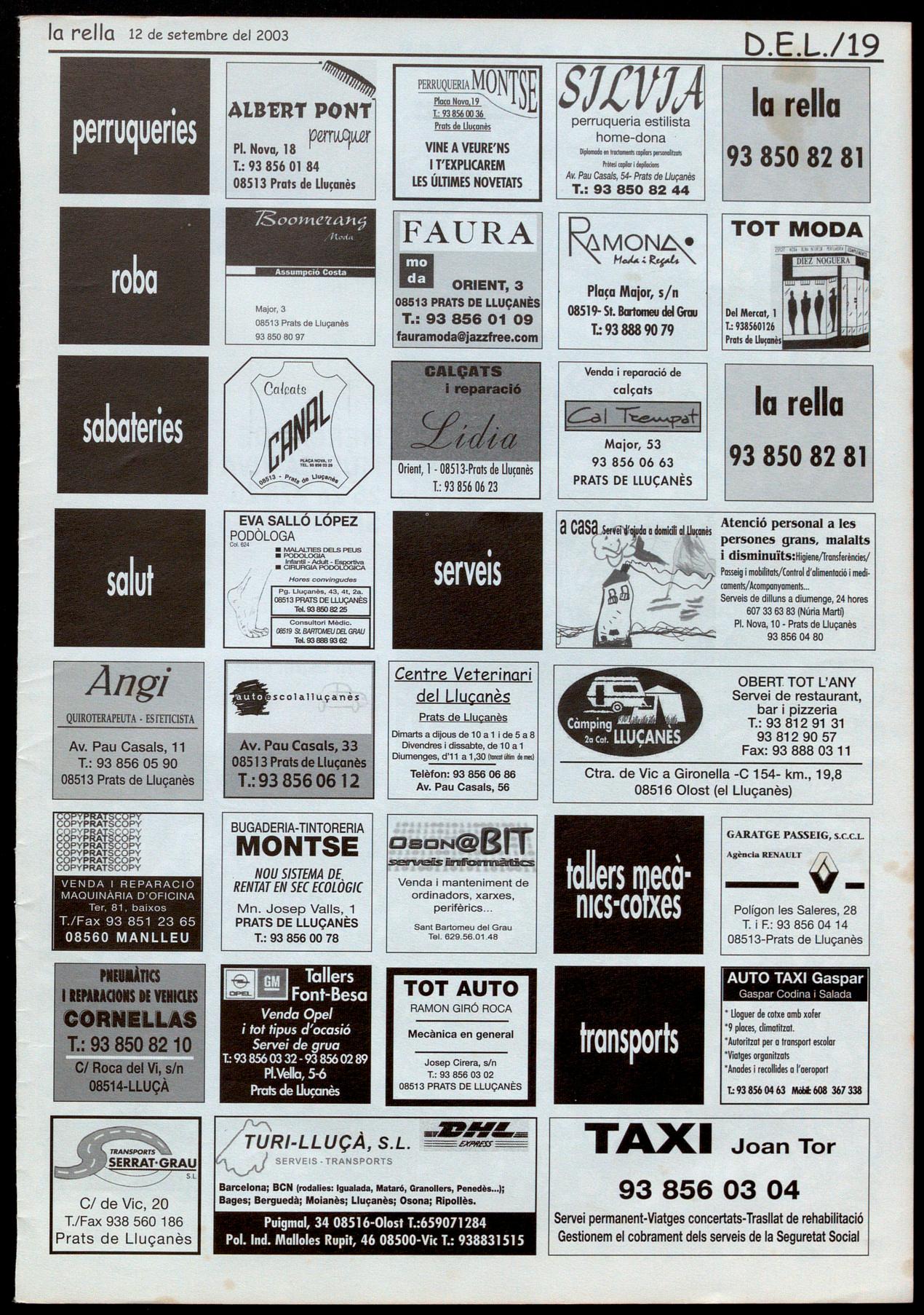 a totes les entitats esportives, ajunta-ments, esportistes de la comarca �ra que comença, en moltes especialitats esportives, una nova temporada de competicions, ens convindria que féssiu arribar a la redacció de la rellaMajor, 51, baixos, 08513Prats de L1uçanès/ T. i F.: 93 850 82 81/ solc@pangea.org- el calendari de partits activitats, d'aquesta manera podrem oferir una agenda completa i amb les dades permanentment actualitzades.