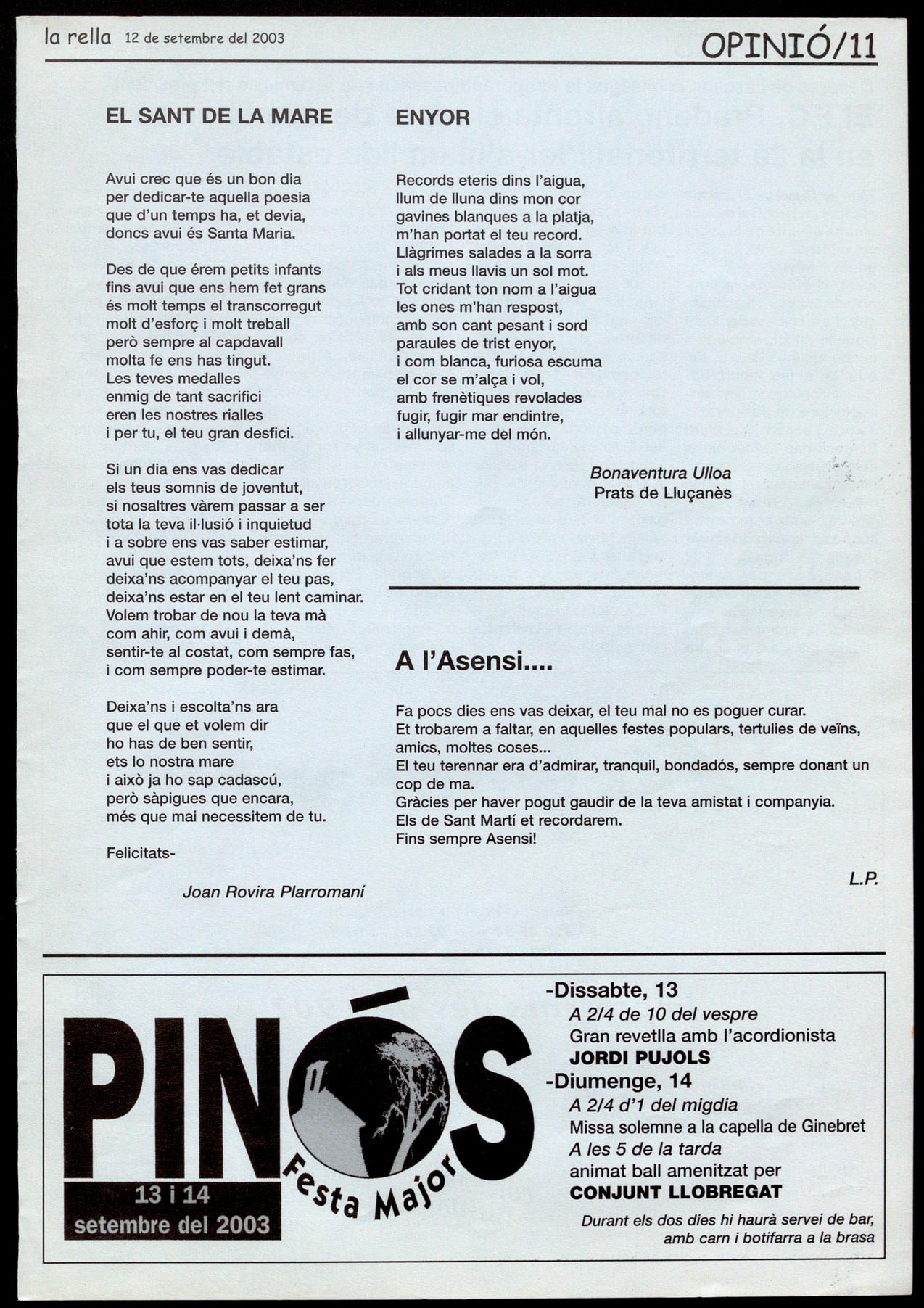 Agenda: Roso M. Boixadé. Fotografio: Teresa Parareda. Publicitat: M. Angels