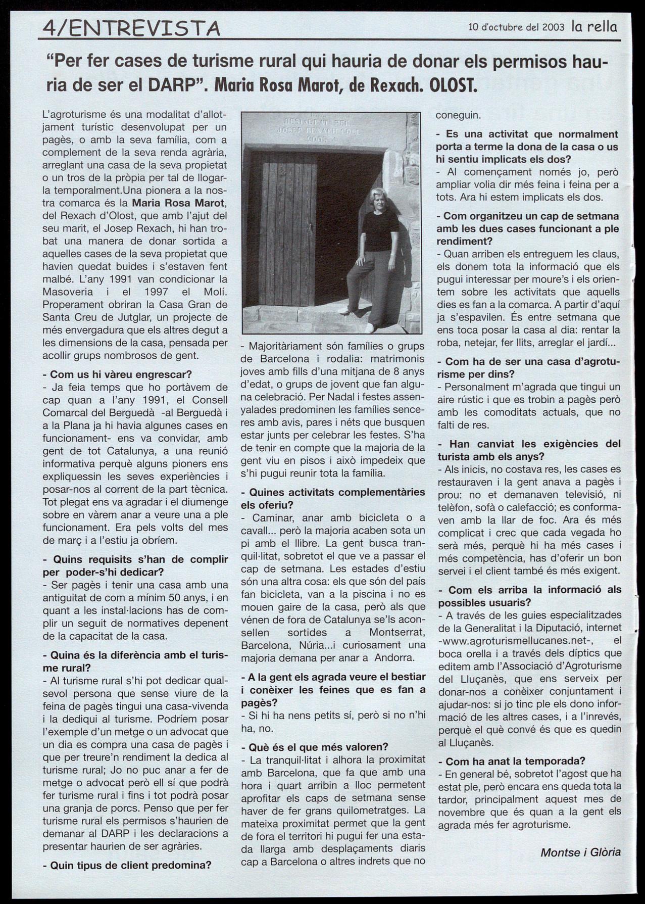 "Per fer cases de turisme rural qui hauria de donar els permisos hauria de ser el CARP". Maria Rosa Marot, de Rexach. OLOST.