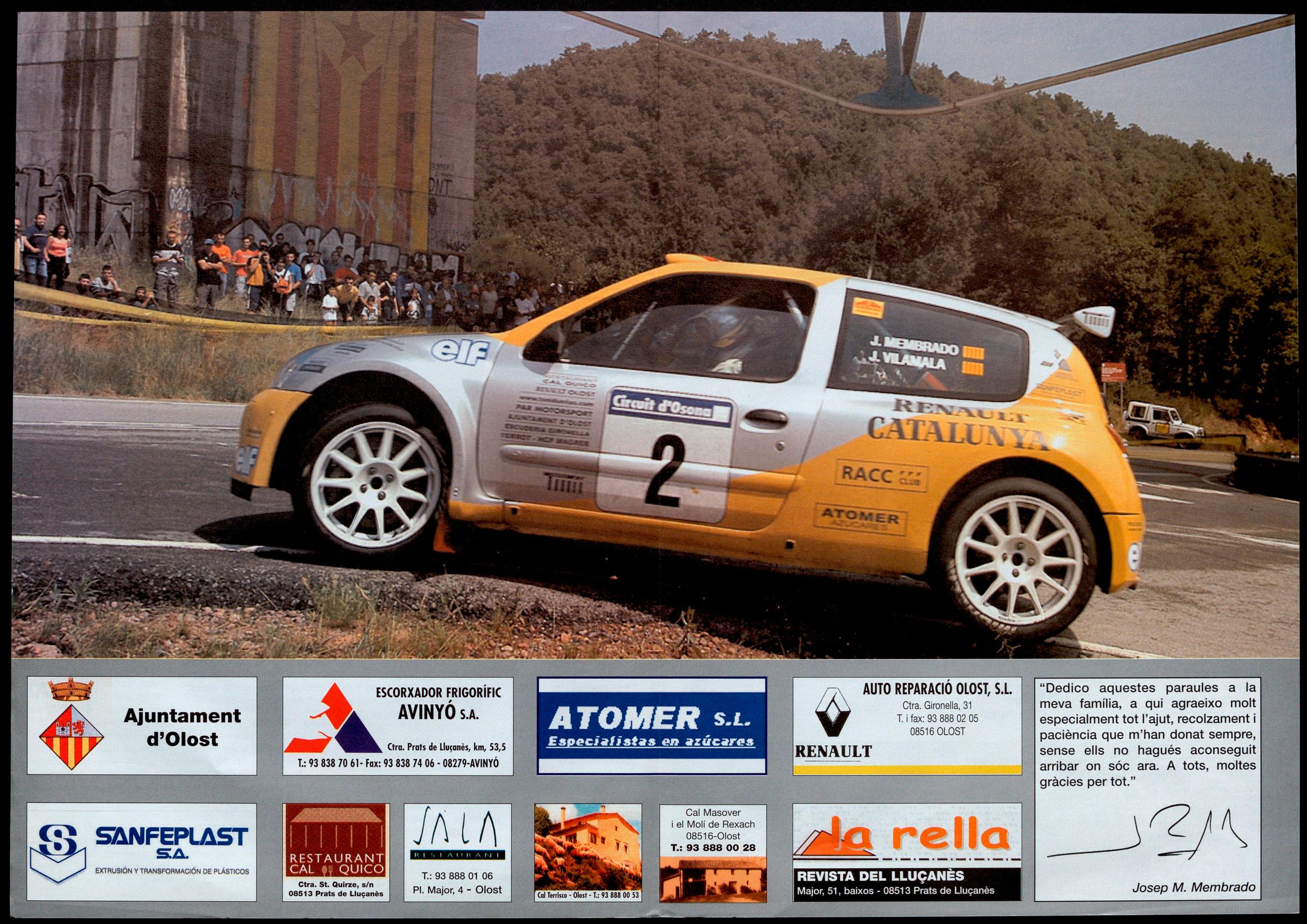 Sens dubte la carrera més emotiva pel d'Olost. Tornava a córrer prop de casa, ara més aprop que mai, i es va endur per primera vegada cap a terres lluçaneses el primer lloc de la classificació del Ral-li Osona. Aquest, que tenia trams al Lluçanès, va comptar amb una forta presència de públic durant tot el dissabte 28 de juny, i molts incondicionals que animaven a Membrado, pilot més
