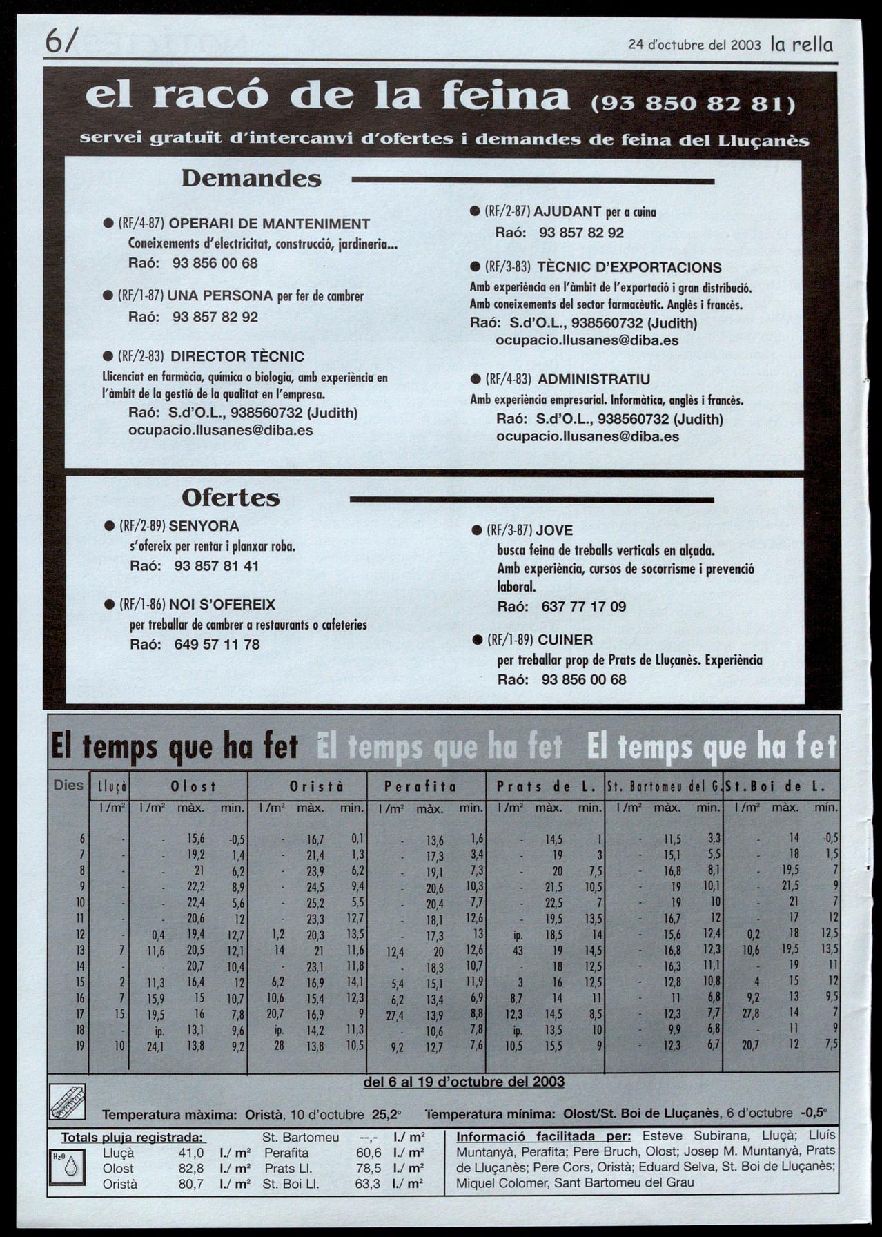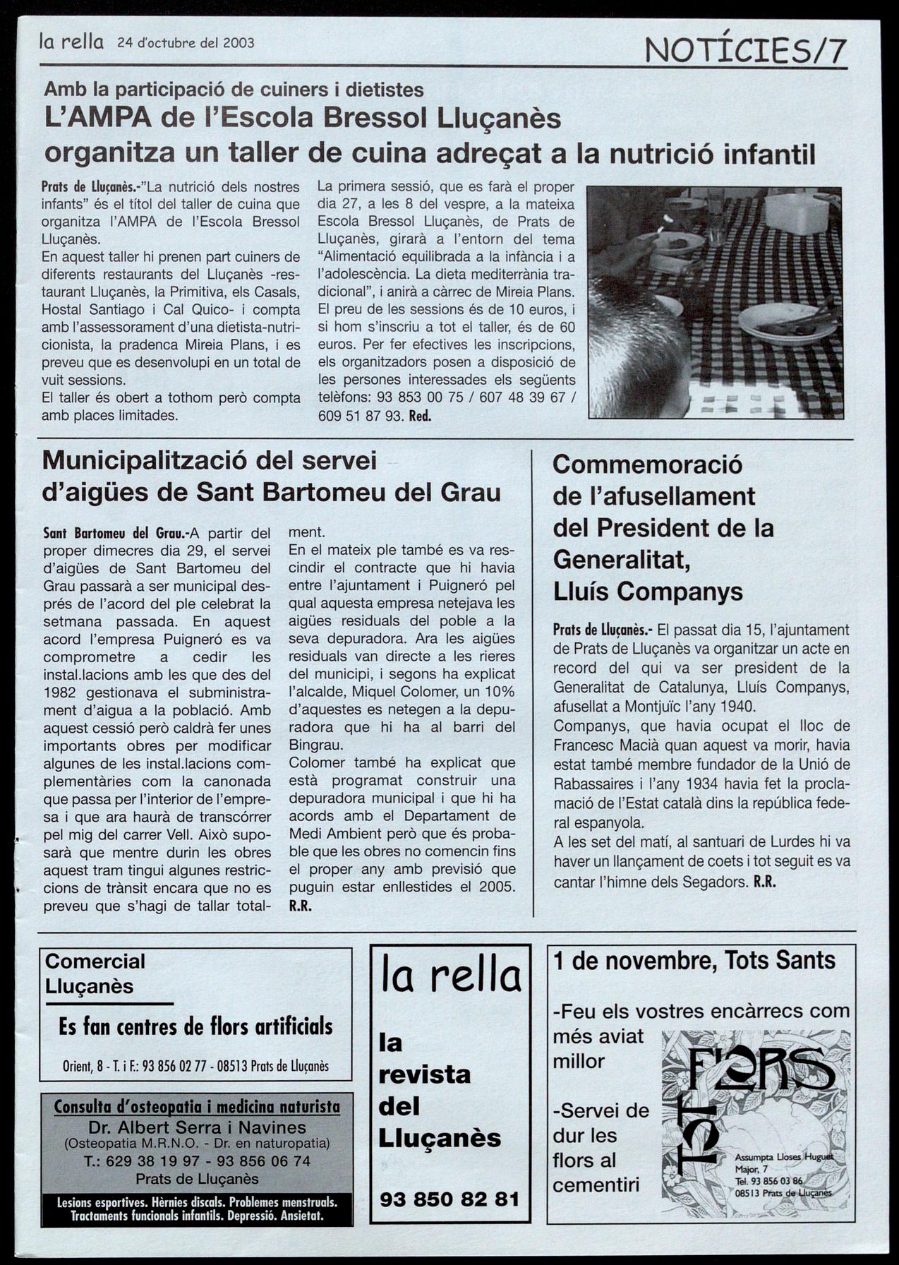 - Tenim tot el moviment parroquial i el del registre civil, una pàgina de medicina que funciona des del primer any el poema. Aquestes dues seccions, a vegades surten en funció de la quantitat d'articles que