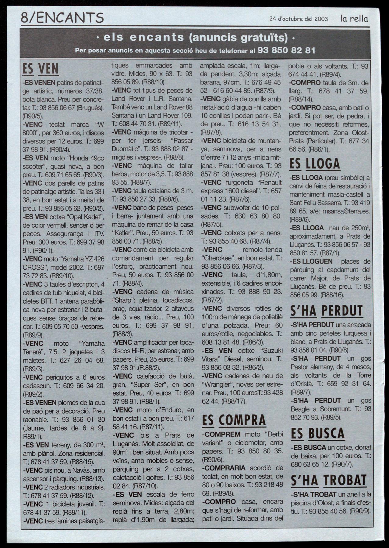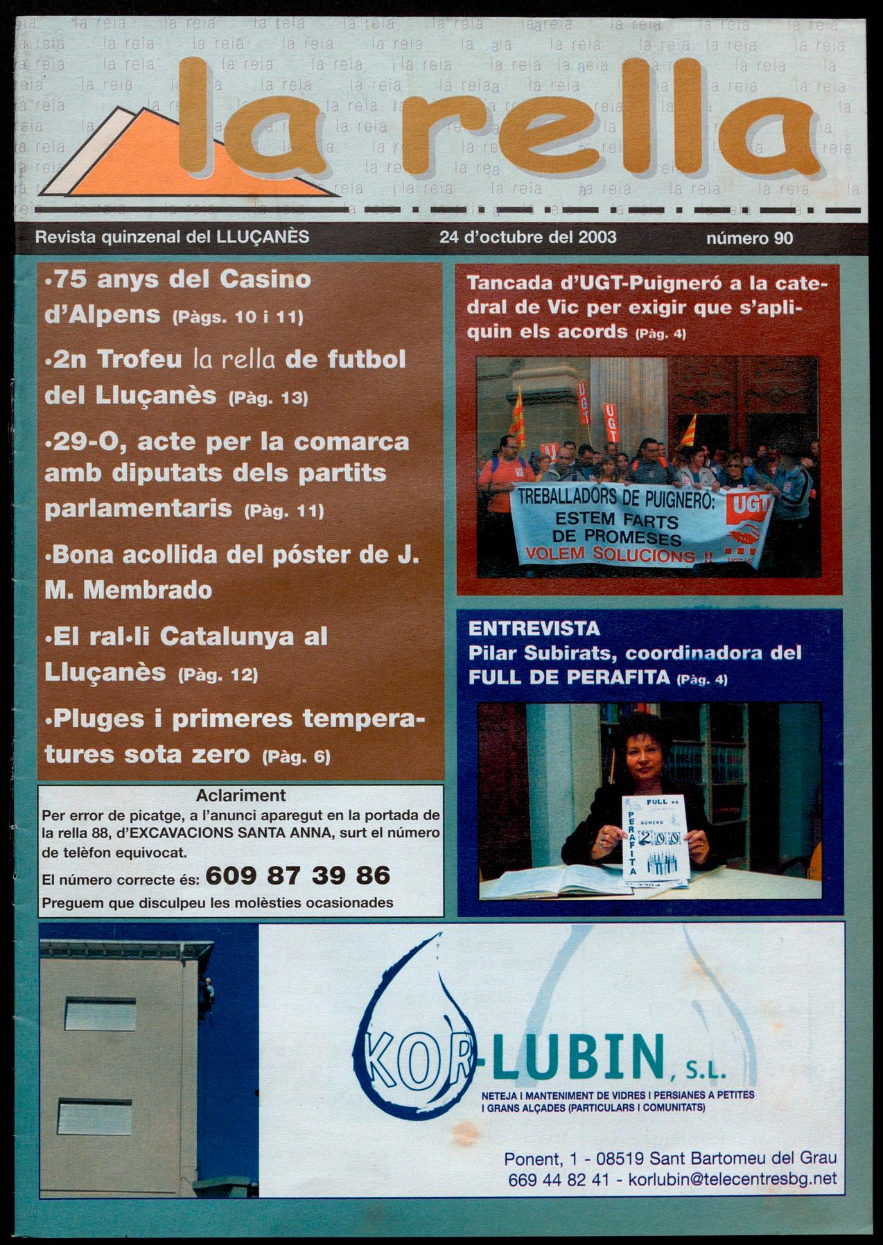 Per error de picatqe, a l'anunci aparegut en la portada de la rella 88, d'EXCAVACIONS SANTA ANNA, surt el número de telèfon equivocat. El número correcte és: 609 87 39 86