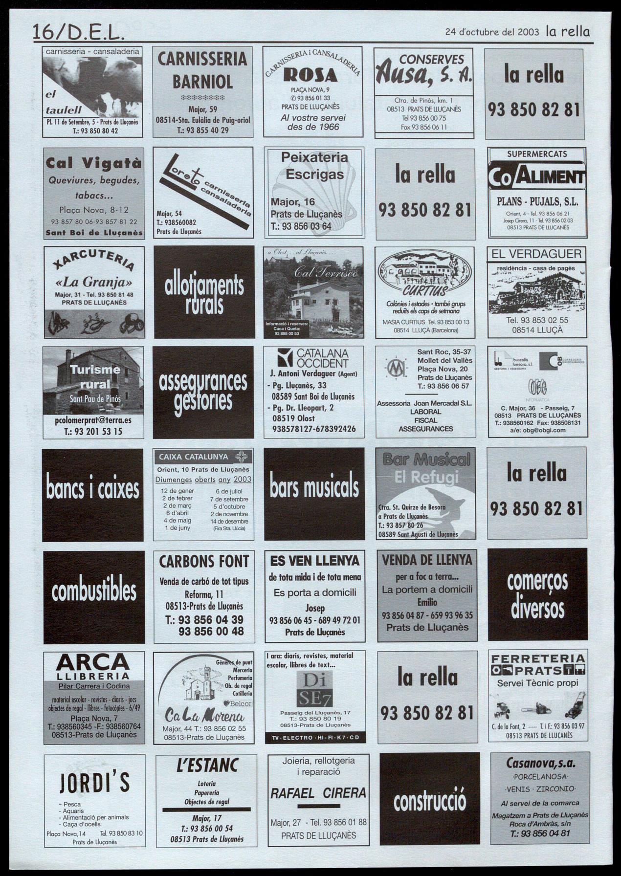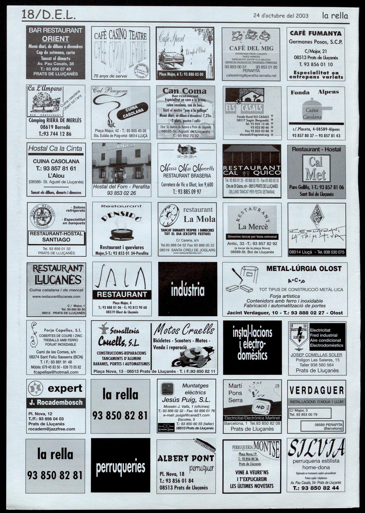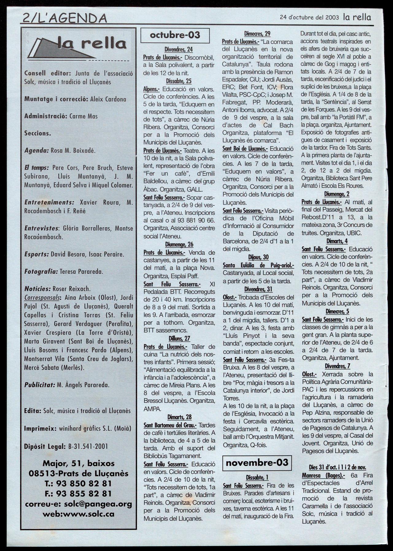 Prots de Uuamès.- Discomòbil a la Sala polivalent, a Parti� de les 12 de la nit. Dissabte, 2S � Educació en valors. Cicle de conferències. A les 5 de la tarda, "Eduquem en el respecte. Tots necessitem de tots", a càrrec de Núria Ribera. Organitza, Consorci per a la Promoció dels Municipis del Uuçanès. Prots de Uucanès.- Teatre. A les 10 de la nit, a la Sala polivalent, representació de l'obra "Fer un cafè", d'Emili Baldellou, a càrrec del grup Àbac. Organitza, GALL. Sant feliu Sasserra.- Sopar castanyada, a 2/4 de 9 del vespre, a l'Ateneu. Inscripcions al casal o al 93 881 90 66. Organitza, Associació centre sociall'Ateneu.