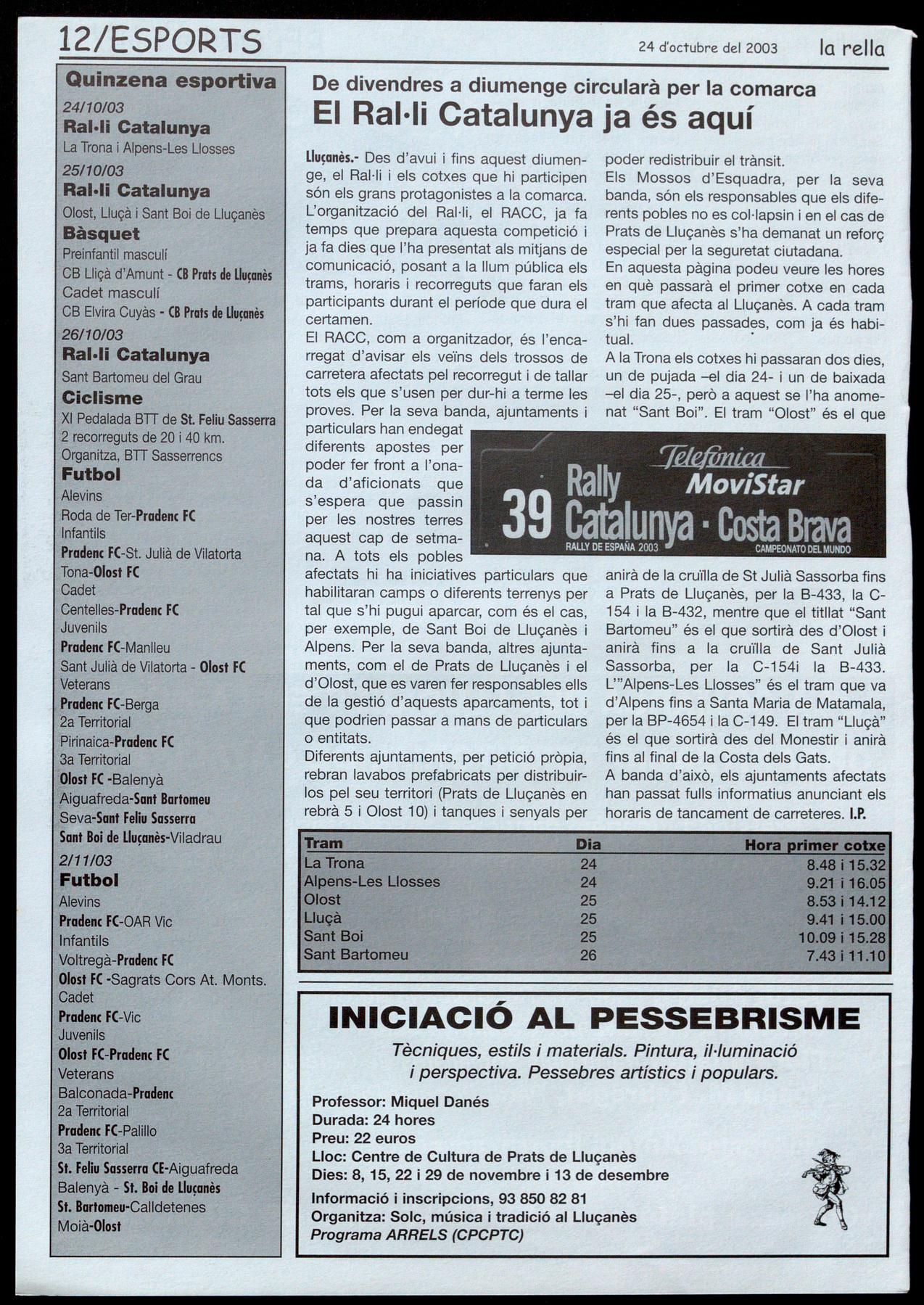 L1uçanès.- Des d'avui i fins aquest diumenge, el Rai-ti i els cotxes que hi participen són els grans protagonistes a la comarca. L'organització del Ral-li, el RACC, ja fa temps que prepara aquesta competició i ja fa dies que l'ha presentat als mitjans de comunicació, posant a la llum pública els trams, horaris recorreguts que faran els participants durant el període que dura el certamen.