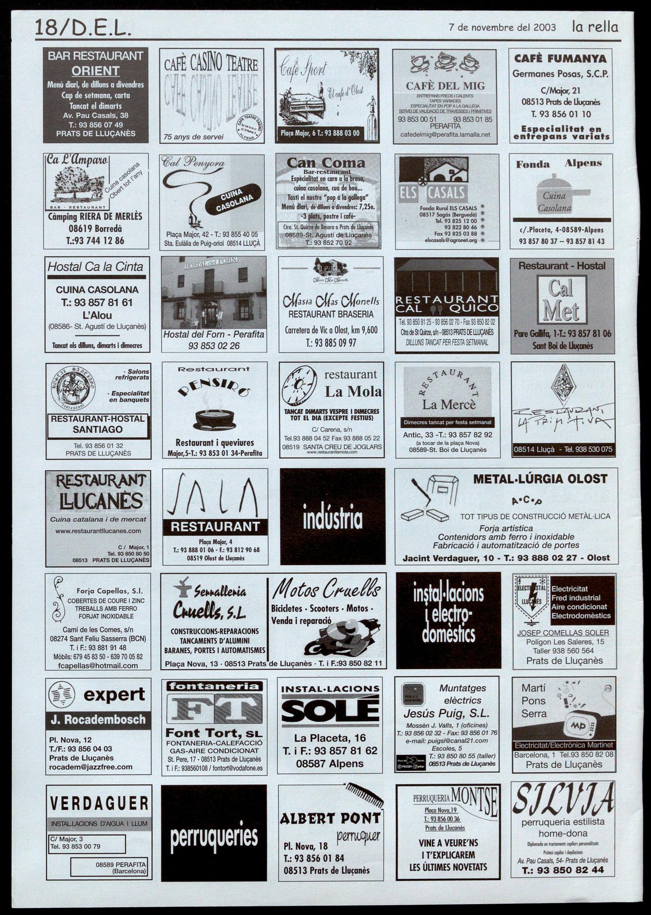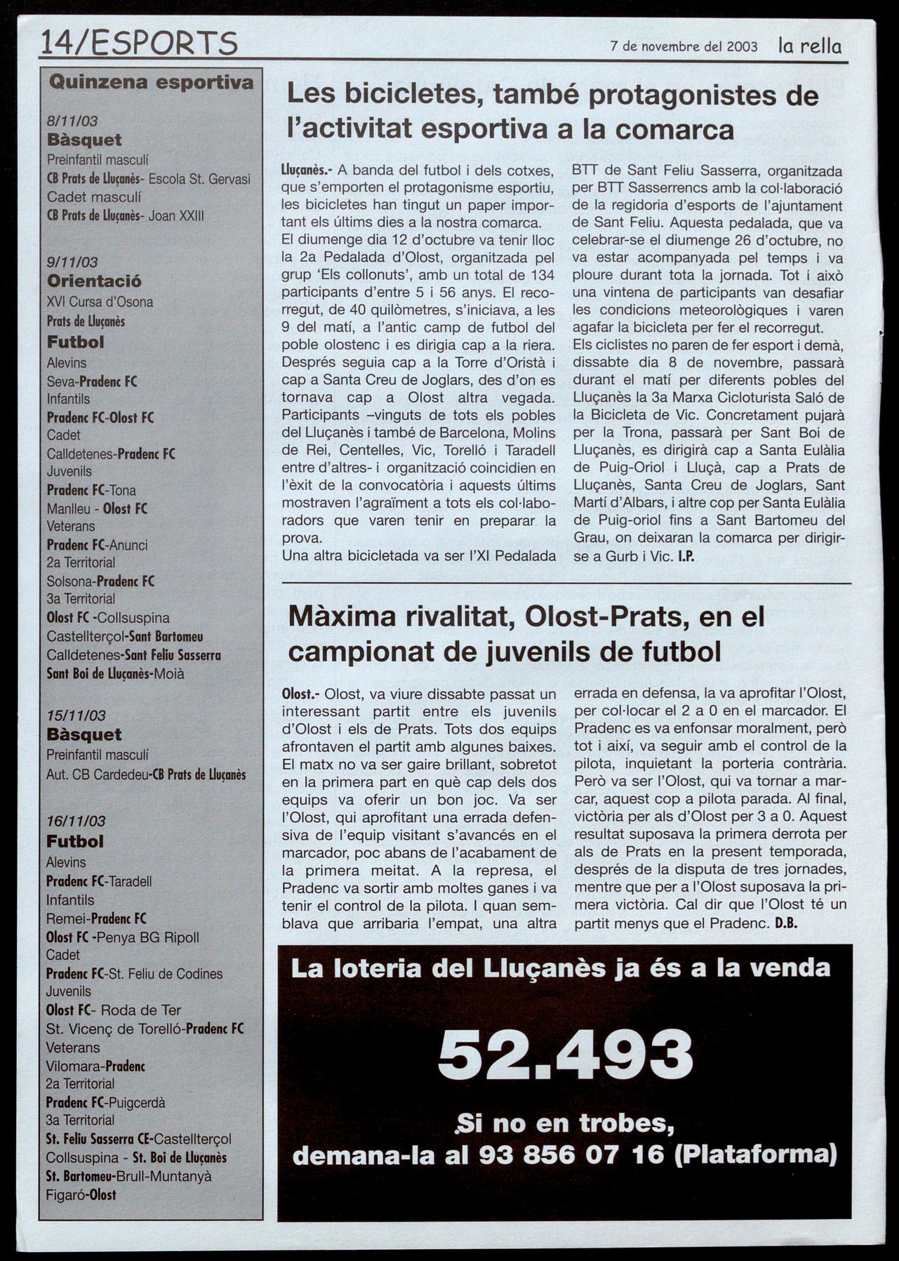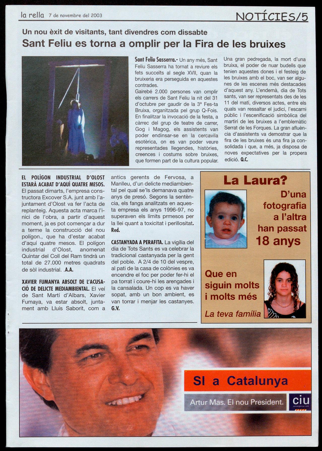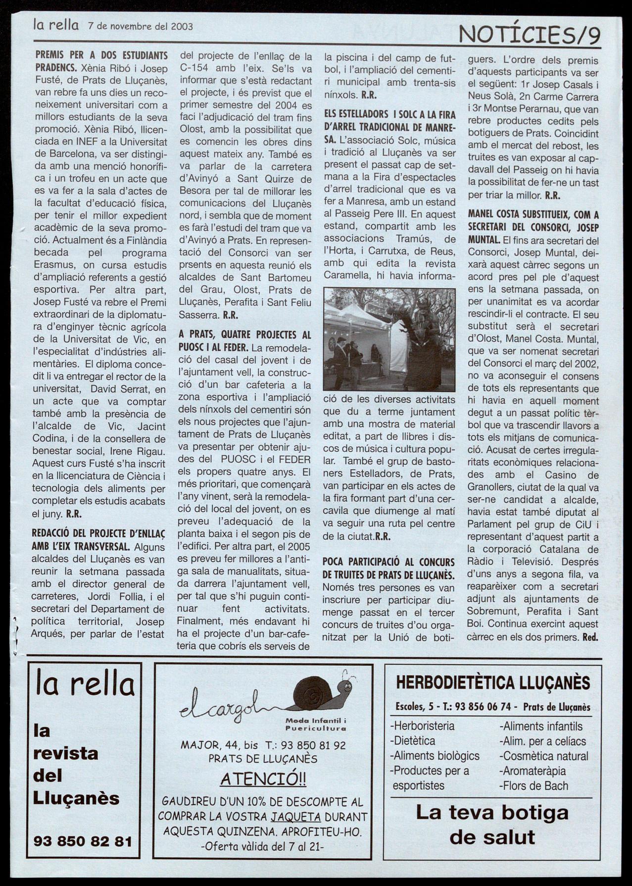 Notícies: Roser Reixoch. (orresponsals: Aina Arboix (Olosl), Jordi Pujol (Sf. Agustí de Lluçanès), Queralt Copellos i Cristina Torras (Sf. Feliu Sasserra), Gerard Verdaguer (Perafita), Xavier Crespiero (lo Torre d'Oristà), Morta Giravent (Sant Boi de lluçanès), lluís Bosoms i Francesc Pardo (Alpens), Montserrat Vila (Santa Creu de Joglars), Mercè Sabata (Merlès), Estela lopez (Sobremunt).