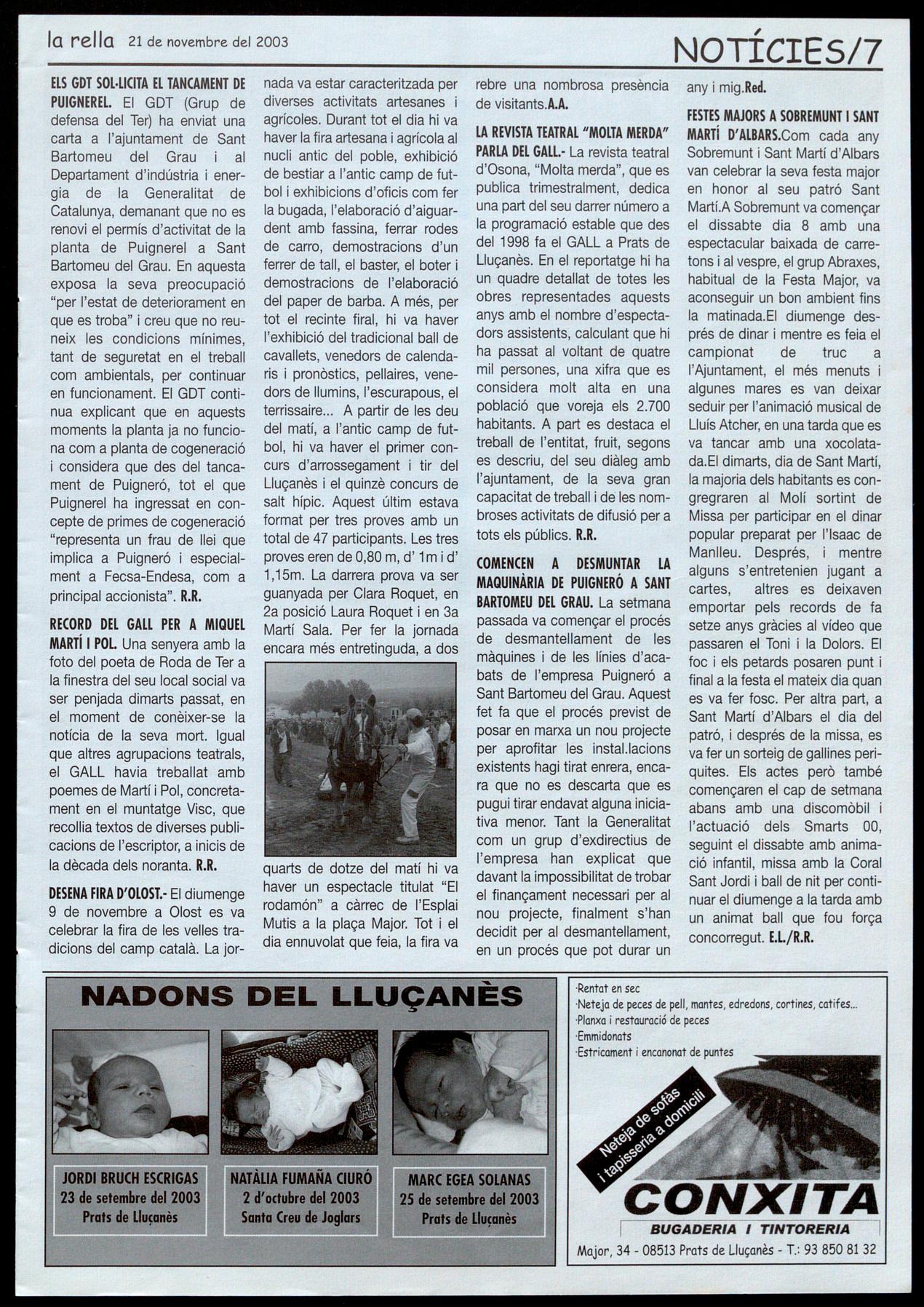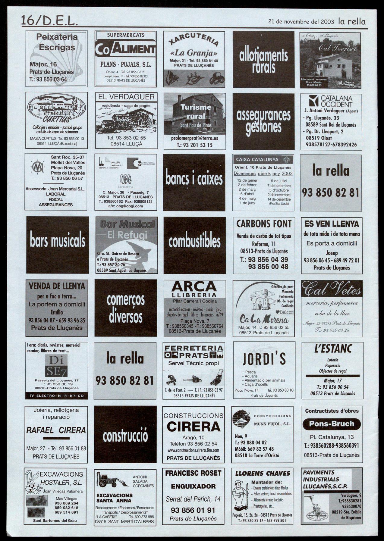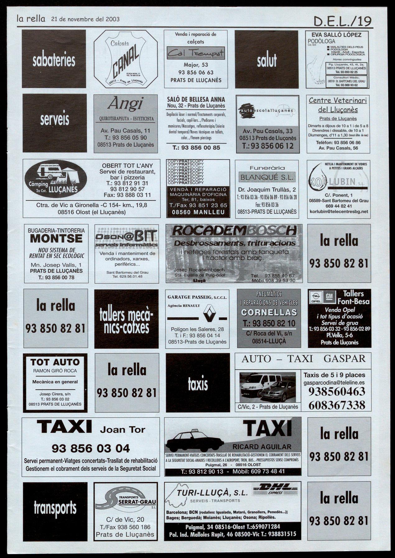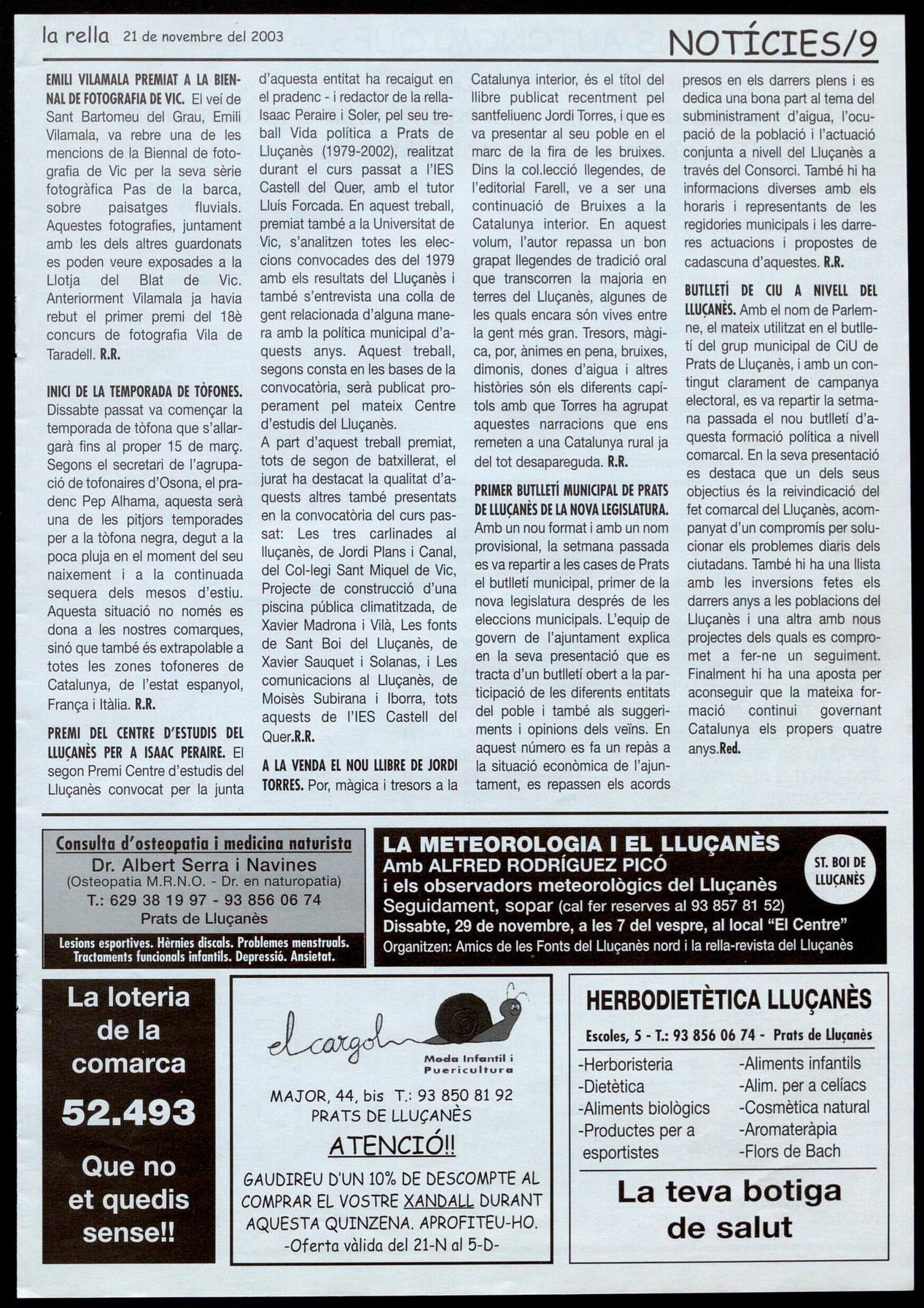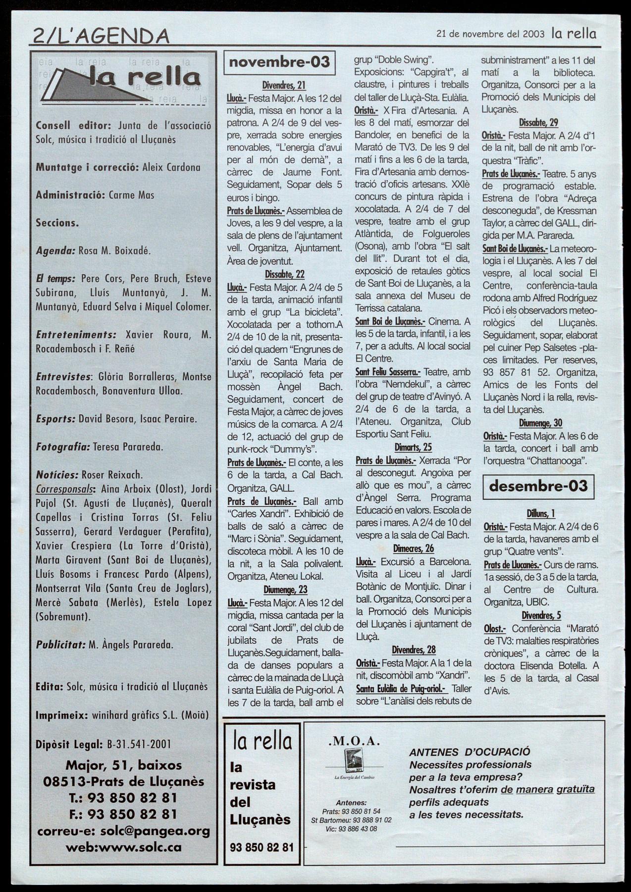 Oristà.- Festa Major. A 2/4 d'1 de la nit, ball de nit amb l'orquestra "Tràfic". Prats de 1.Iuamès.- Teatre. 5 anys de programació estable. Estrena de l'obra "Adreça desconeguda", de Kressman Taylor, a càrrec del GALL, dirigida per MA Parareda. Sant Boide Uucanès.- La meteorologia el Uuçanès. A les 7 del vespre, al local social El Centre, conferència-taula rodona amb Alfred Rodríguez Picó i els observadors meteorològics del Lluçanès. Seguidament, sopar, elaborat pel cuiner Pep Salsetes -places limitades. Per reserves, 93 857 81 52. Organitza, Amics de les Fonts del Uuçanès Nord la rella, revista del Uuçanès.