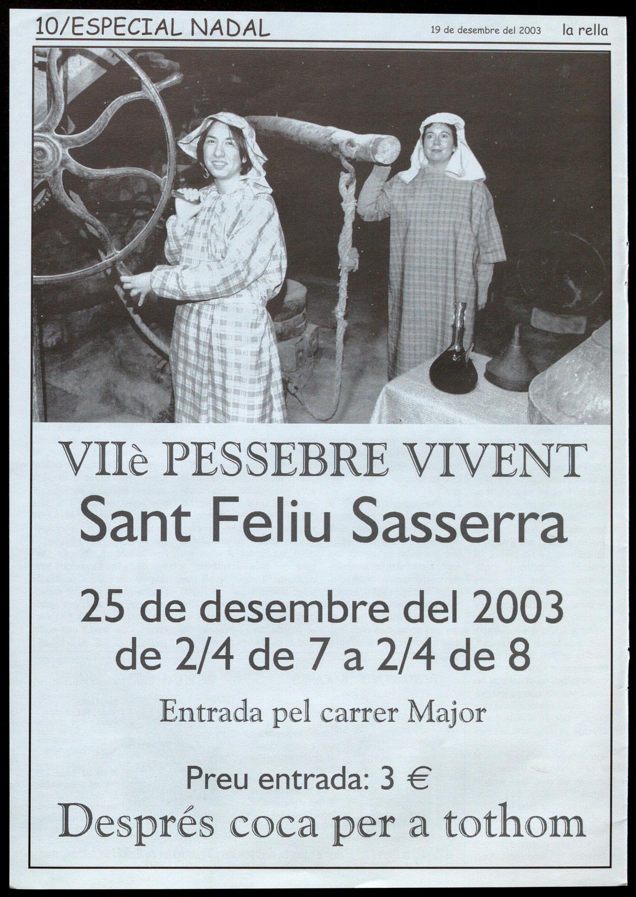 Sant Feliu Sasserra.- De 2/4 de 7 a 2/4 de 8, pels carrers del casc antic, Pessebre vivent.