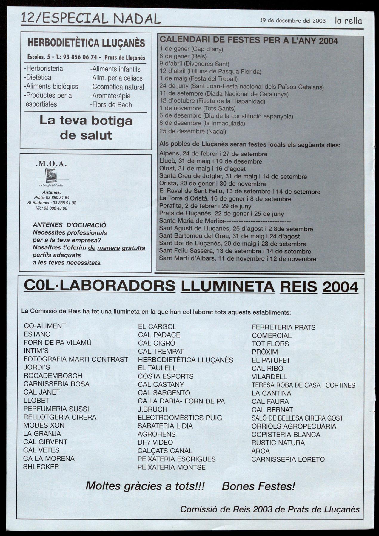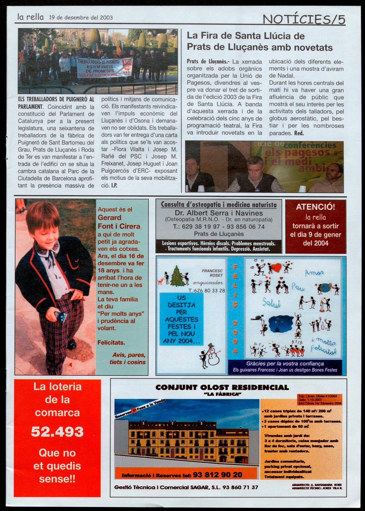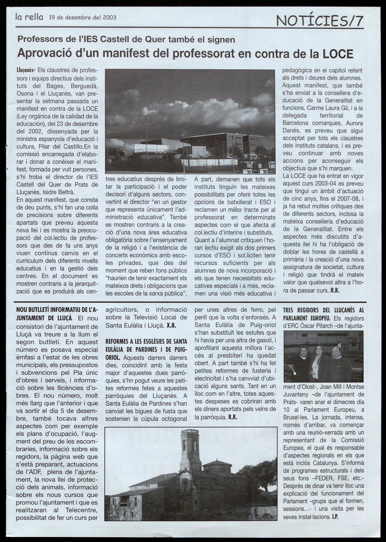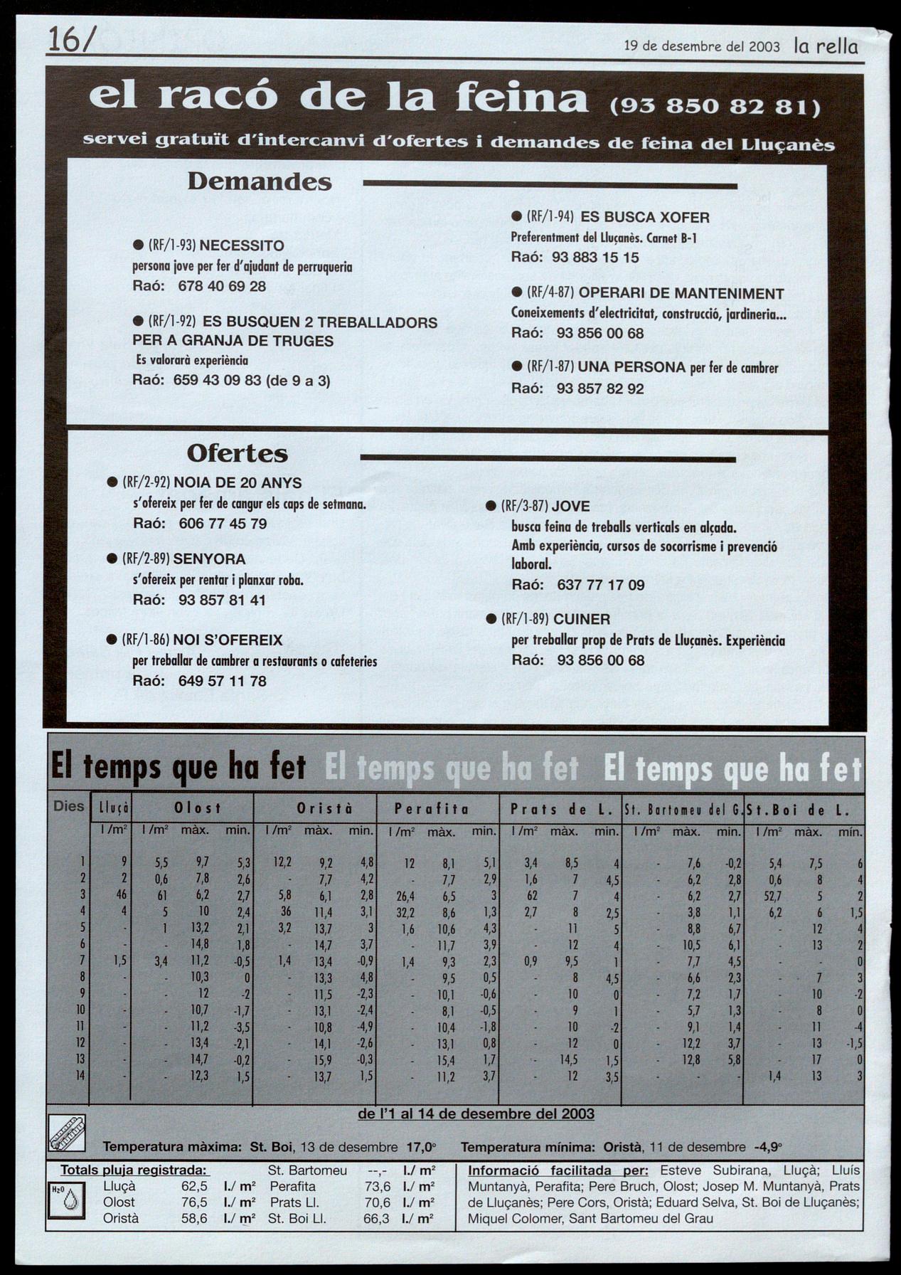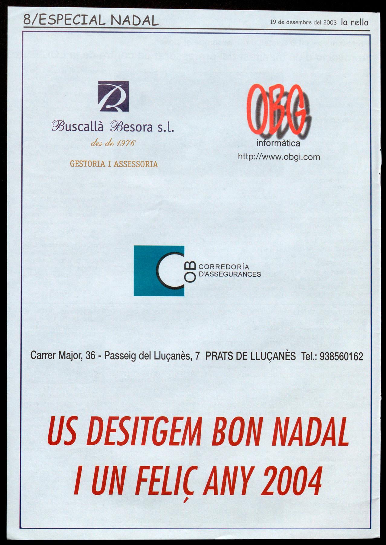 Corresponsals: Aina Arboix (Olost), Jordi Pujol (St. Agustí de lluçanès), Queralt Capellas i Cristina Torras (St. Feliu Sasserra), Gerard Verdaguer (Perafita), Xavier Crespi era (lo Torre d'Oristà), Morta Giravent (Sant Boi de lluçanès), lluís Bosoms i Francesc Pardo (Alpens), Montserrat Vila (Santa Creu de Joglars), Mercè Sabata (Merlès), Estela lopez (Sobremunt), Morta Faja (Oristà), Montse Surinyach (lluçà), Xavier Barniol (Sta. Eulàlia de Puig-oriol].