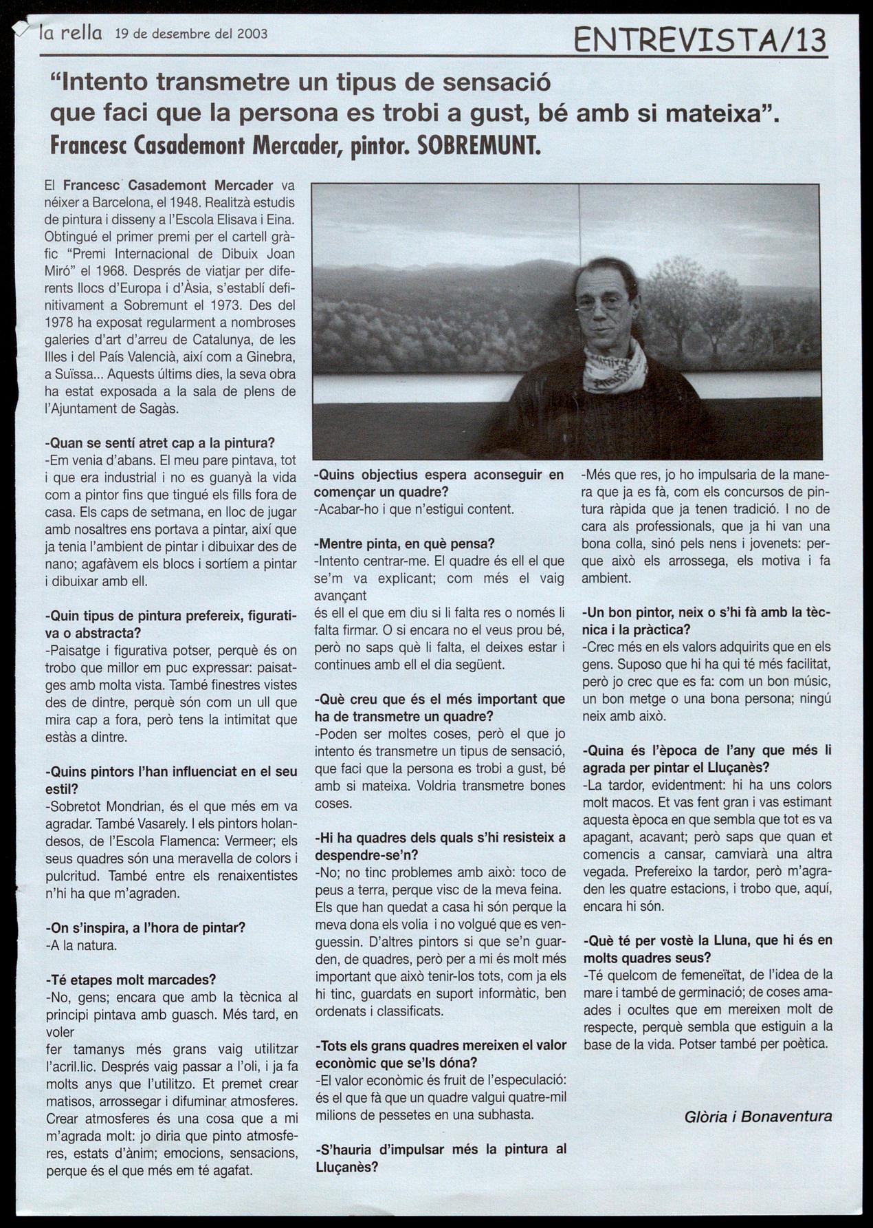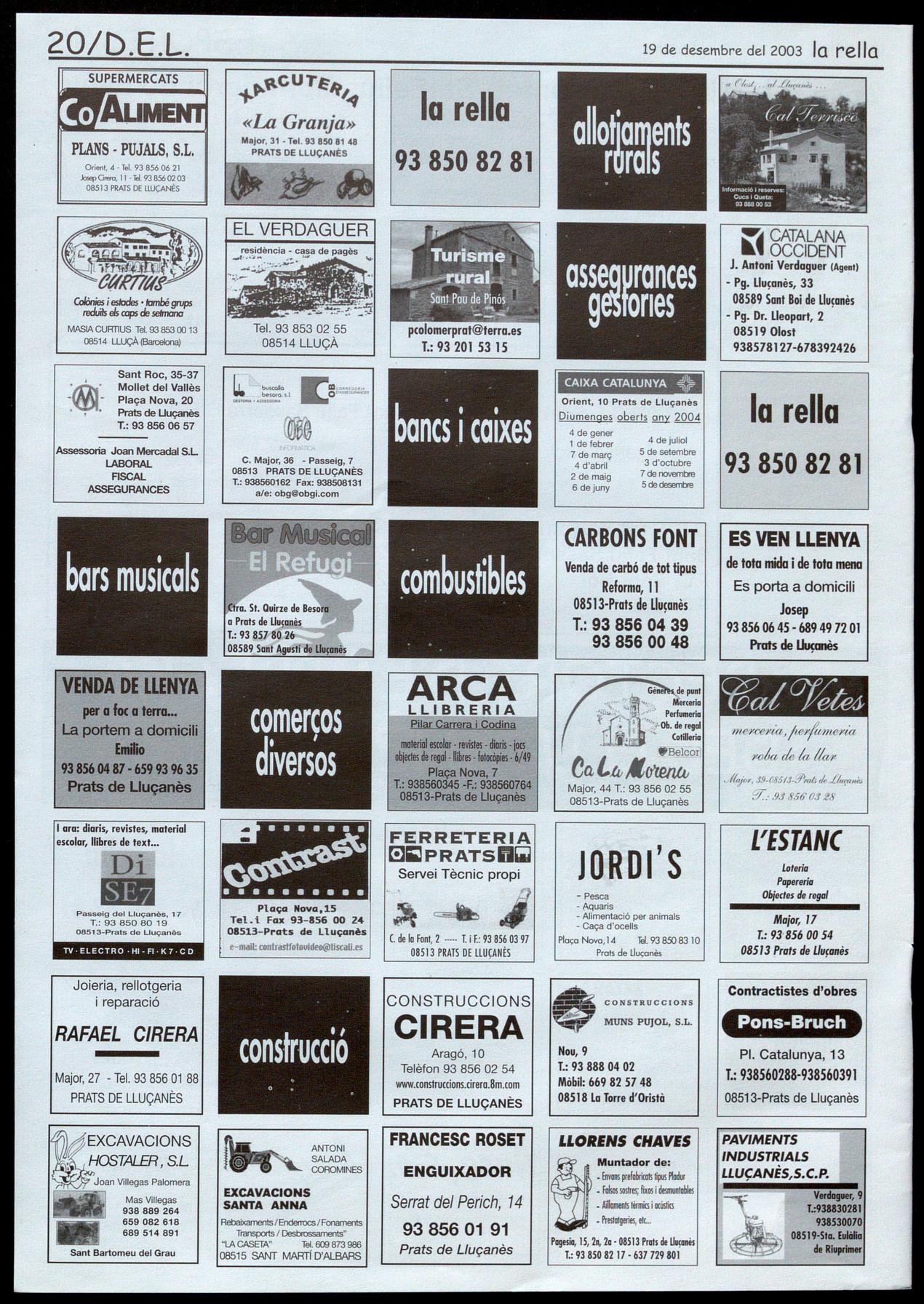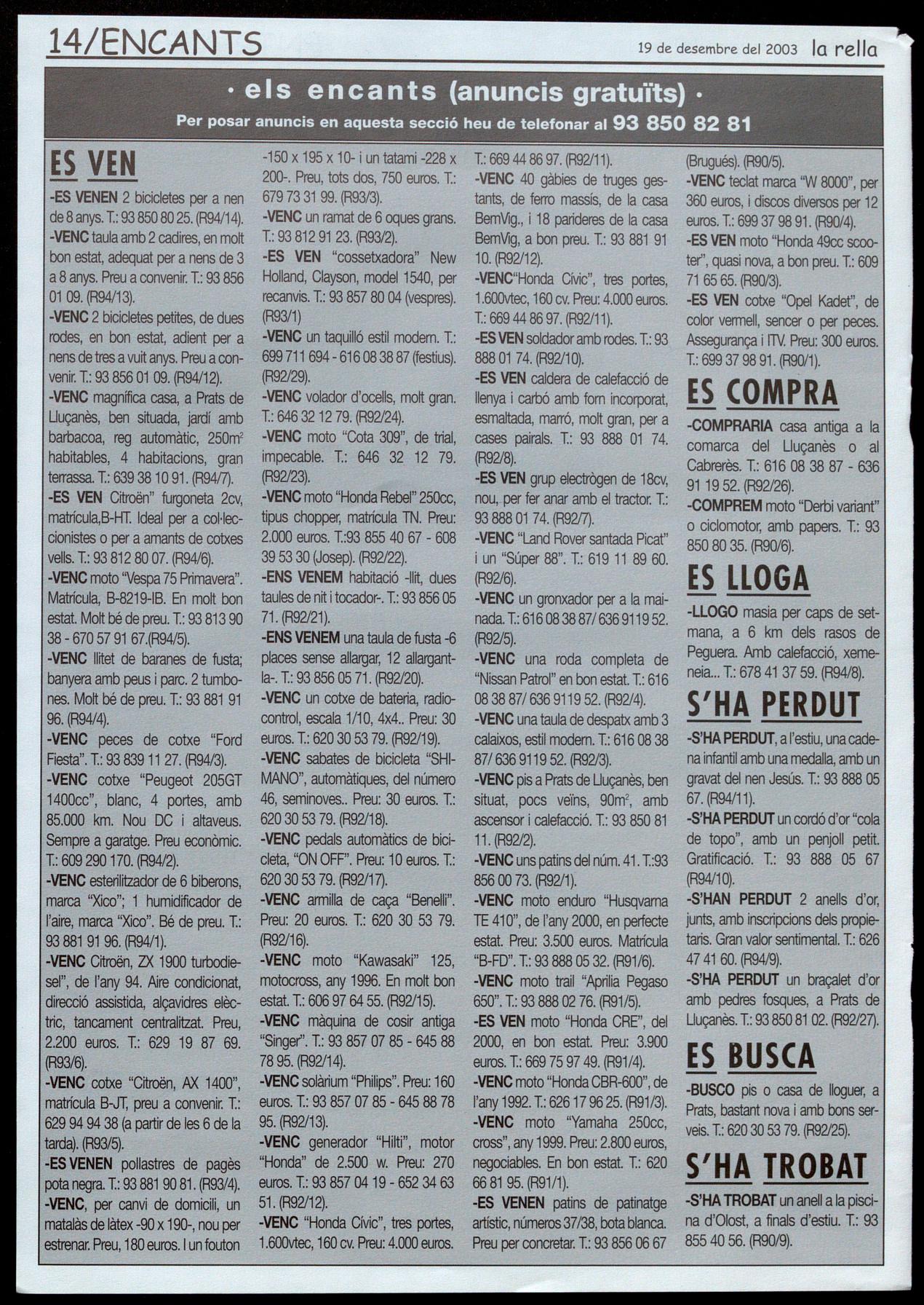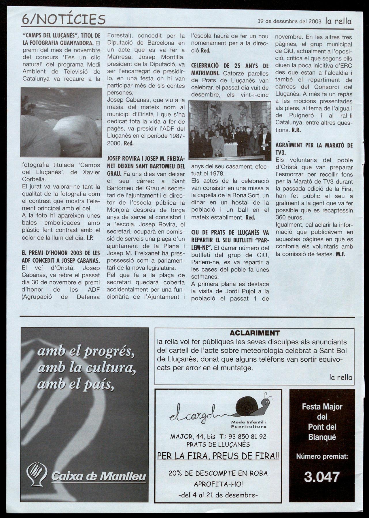 Corresponsals: Aina Arboix (Olost), Jordi Pujol (St. Agustí de lluçanès), Queralt Capellas i Cristina Torras (St. Feliu Sasserra), Gerard Verdaguer (Perafita), Xavier Crespi era (lo Torre d'Oristà), Morta Giravent (Sant Boi de lluçanès), lluís Bosoms i Francesc Pardo (Alpens), Montserrat Vila (Santa Creu de Joglars), Mercè Sabata (Merlès), Estela lopez (Sobremunt), Morta Faja (Oristà), Montse Surinyach (lluçà), Xavier Barniol (Sta. Eulàlia de Puig-oriol].