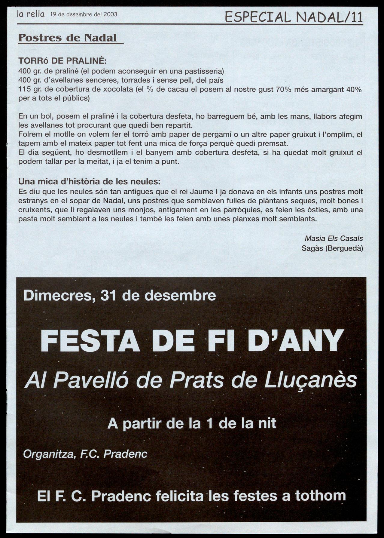 Sant Fem. Sasserra. - A les 6 de la tarda, a l'Ateneu, Concert de Nadal. Organitza, Coral Sant Feliu Sasserra.