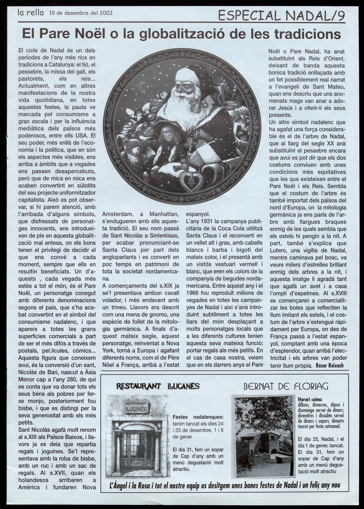 Sant Feliu Sasserra.- AI matí, a l'Ateneu, taller de Nadal. A la tarda, a l'Ateneu, espectacle infantil. Organitza, Q-fois, A les 7, a la plaça Major, arribada del Missatger reial.