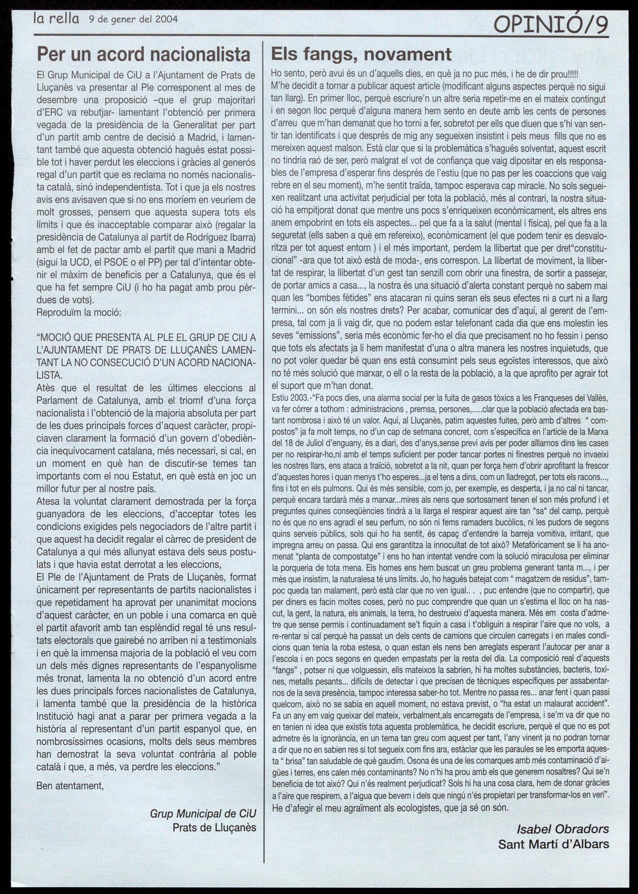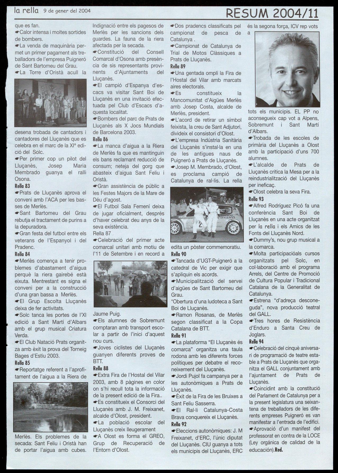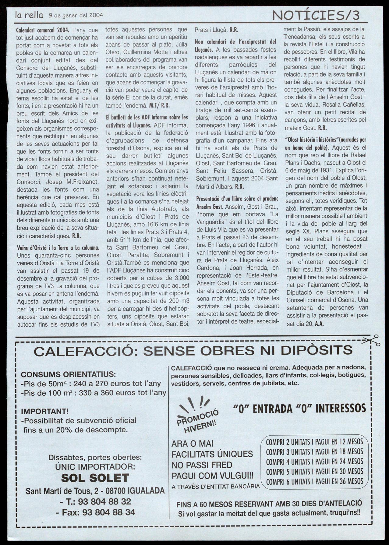 Corresponsals: Aina Arboix (Olost), Jordi Pujol (St. Agustí de Lluçanès), Queralt Copellos i Cristina Torras (Sf. Feliu Sasserra), Gerard Verdaguer (Perafita), Xavier Crespiero (lo' Torre d'Oristà), Morta Girovent (Sant Boi de Lluçanès), Lluís Bosoms i Francesc Pardo (Alpens), Montserrat Vila (Santa Creu de Joglars), Mercè Sabata (Merlès), Estela lopez (Sobremunt), Morta Faja (Oristà), Montse Surinyoch (Lluçà), Xavier Borniol (Sta. Eulàlia de Puiq-oriol).
