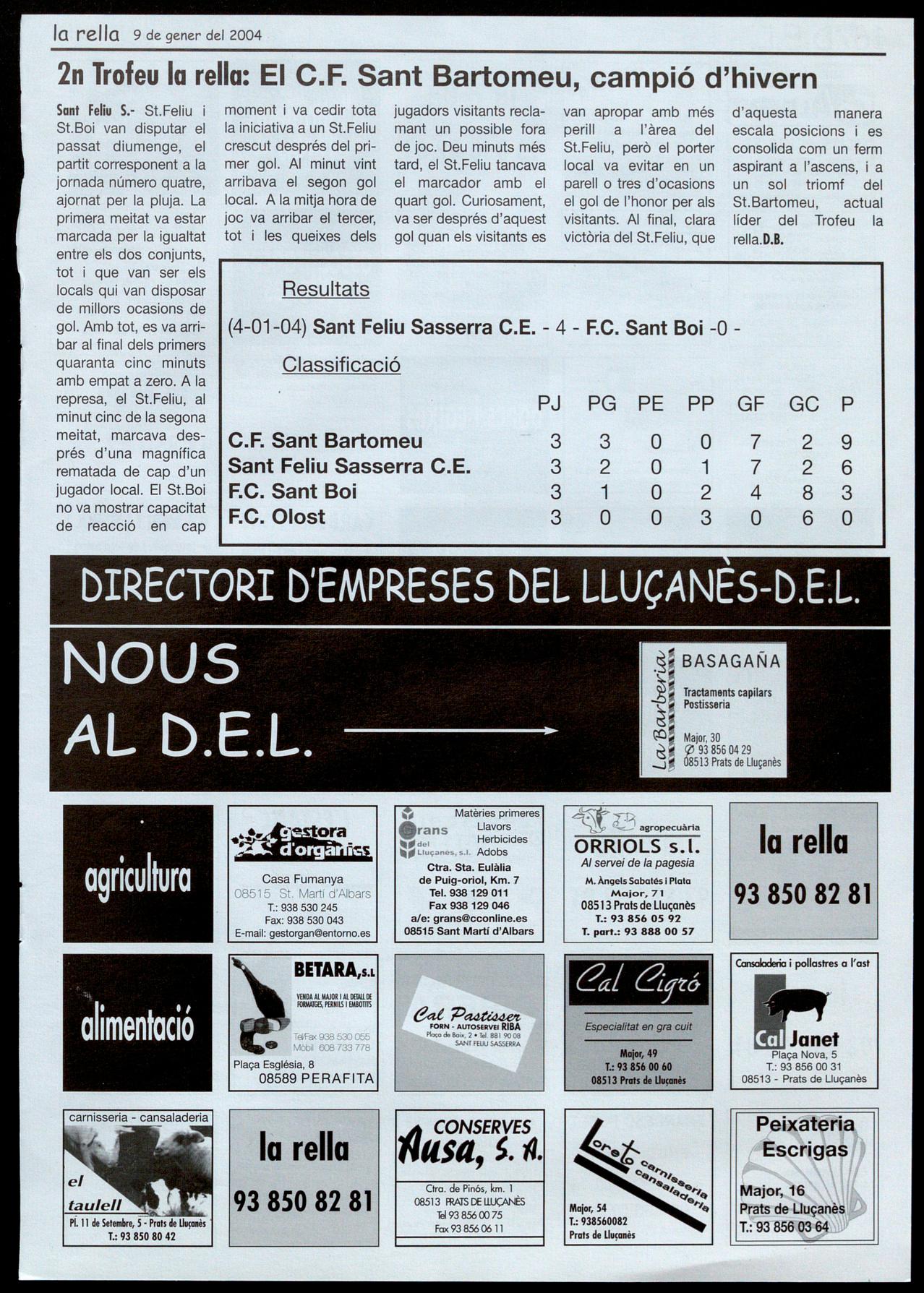 2n Trofeu la rella: El C.F. Sant Bartomeu, campió d'hivern