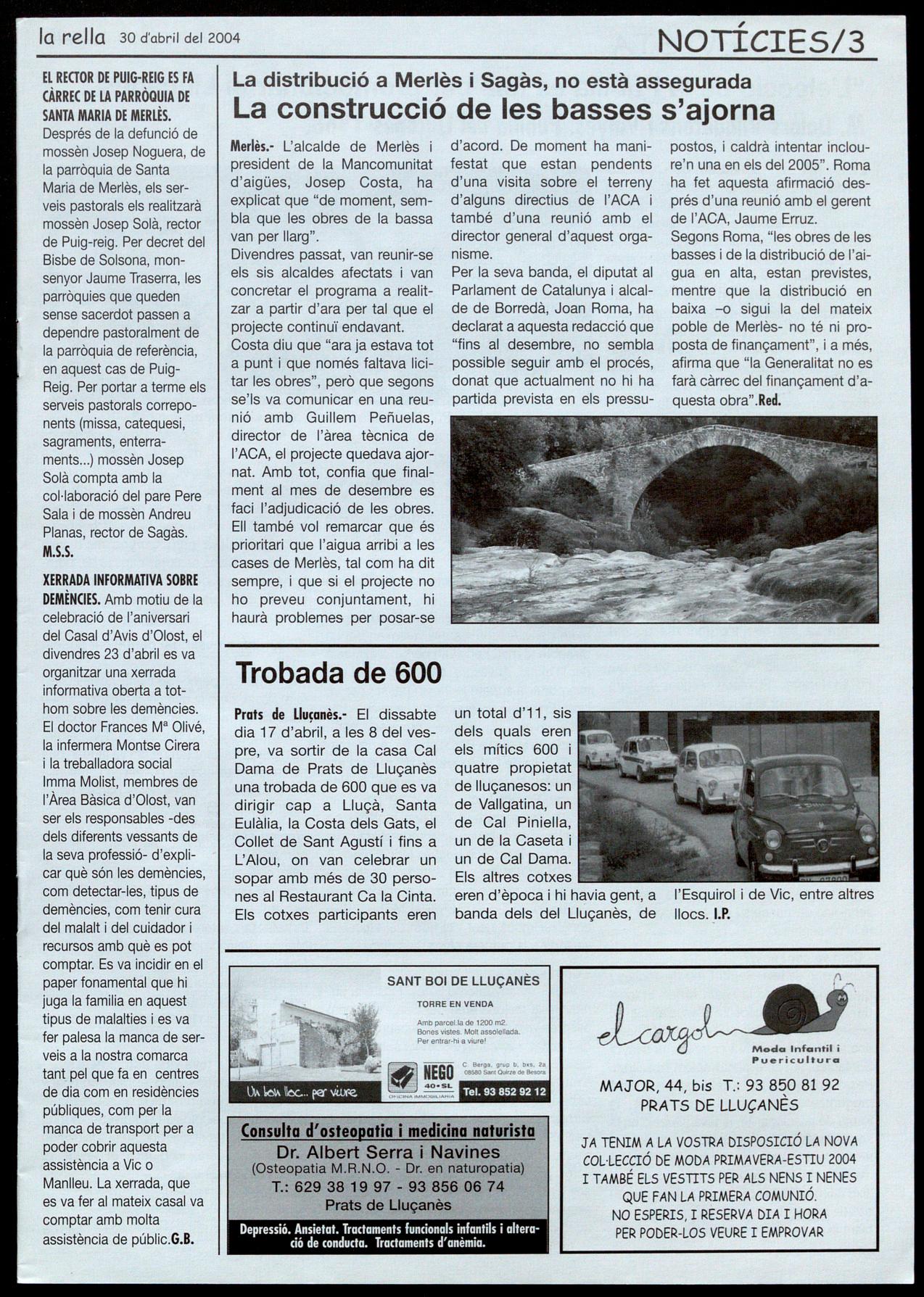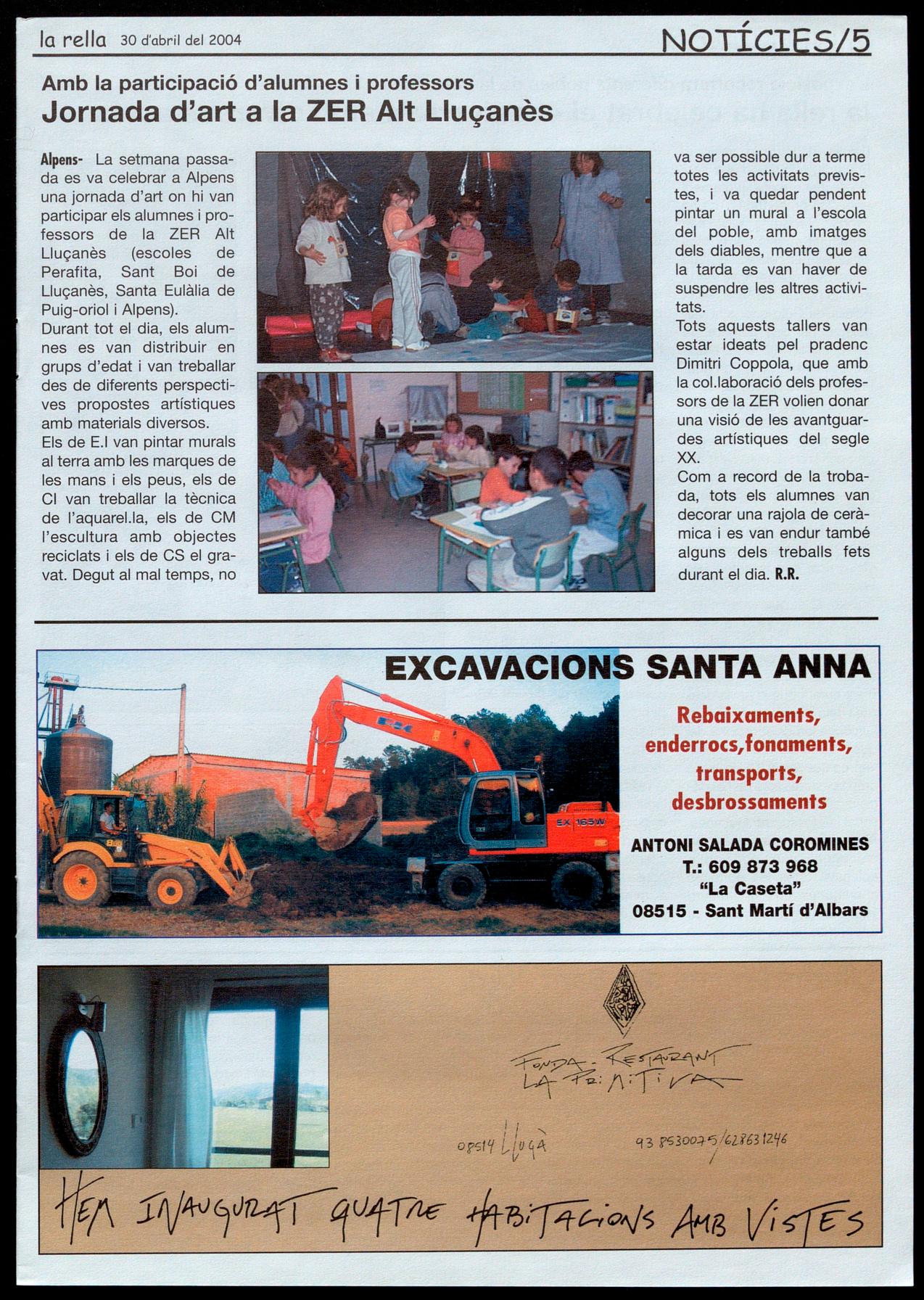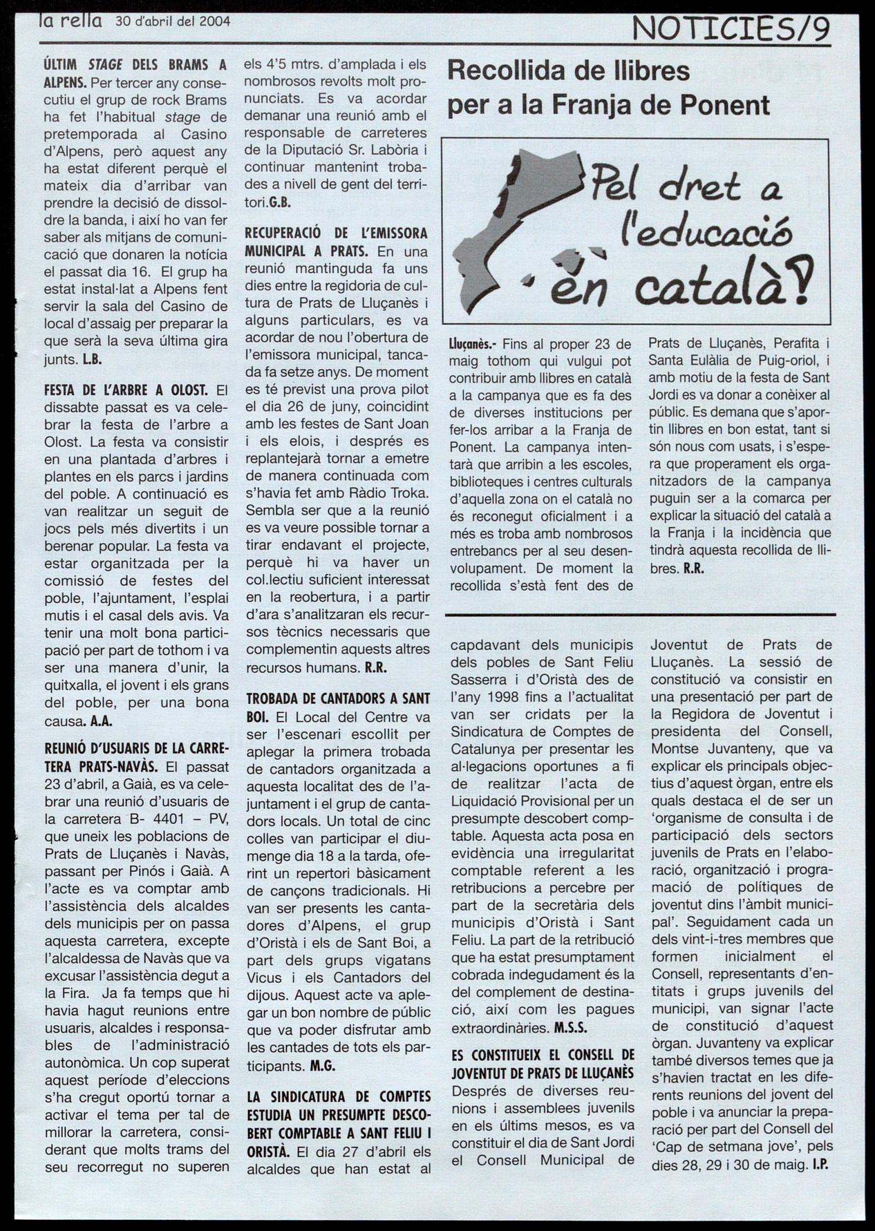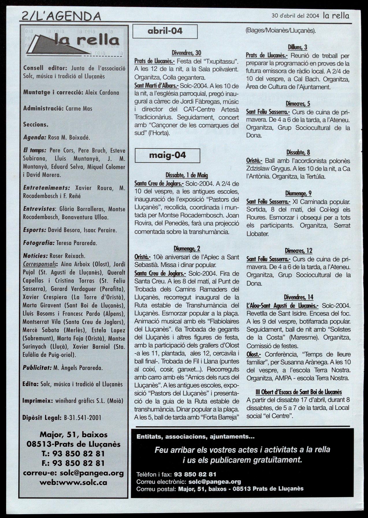 Corresponsals: Aina Arboix (Olost), Jordi Pujol (St. Agustí de Lluçanès), Queralt Capellas i Cristina Torras (St. Feliu Sasserra), Gerard Verdaguer (Perafita), Xavier Crespiera (Ln Torre d'Oristà), Marta Giravent (Sant Boi de Lluçanès), Lluís Bosoms i Francesc Pardo (Alpens), Montserrat Vila (Santa Creu de Joglars), Mercè Sabata (Merlès), Estela lopez (Sobremunt), Marta Faja (Oristà), Montse Surinyach (Lluçà), Xavier Barniol (Sta. Eulàlia de Puig-oriol).