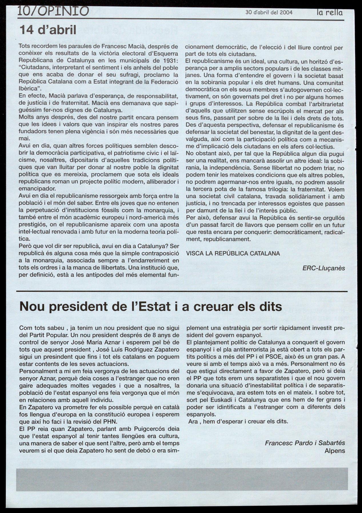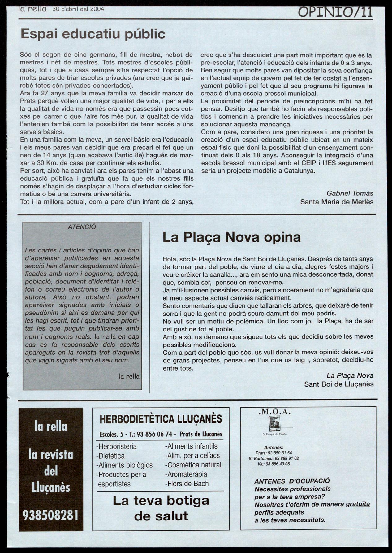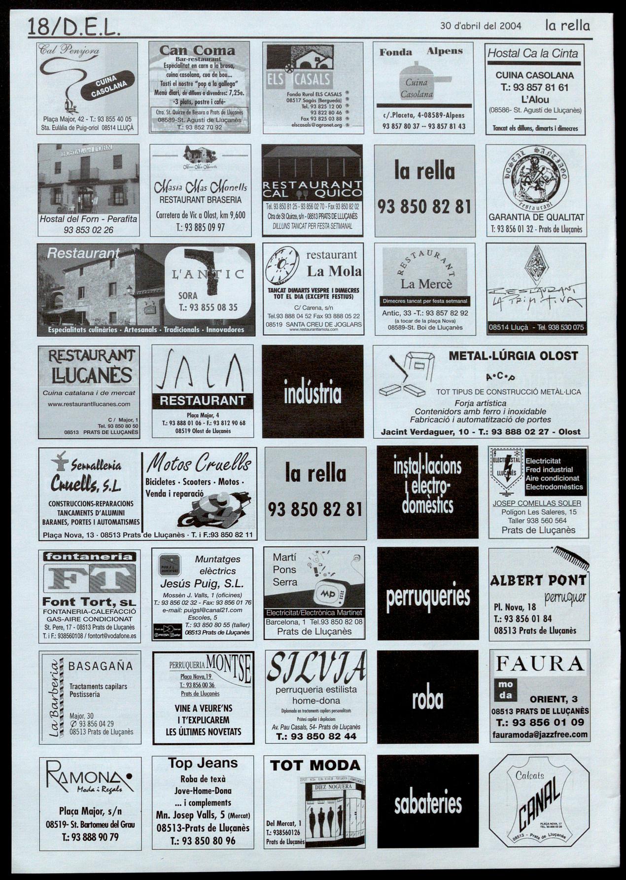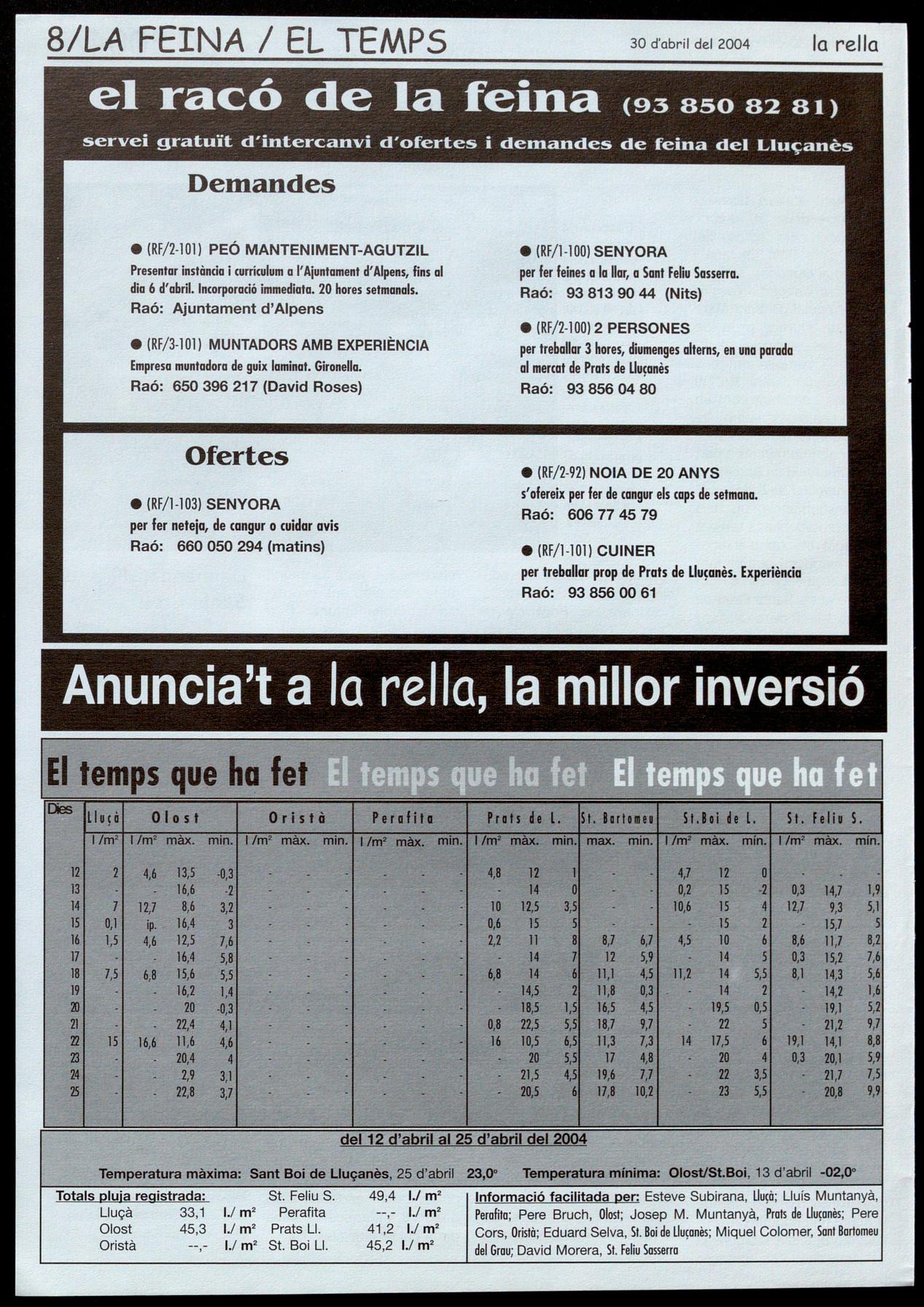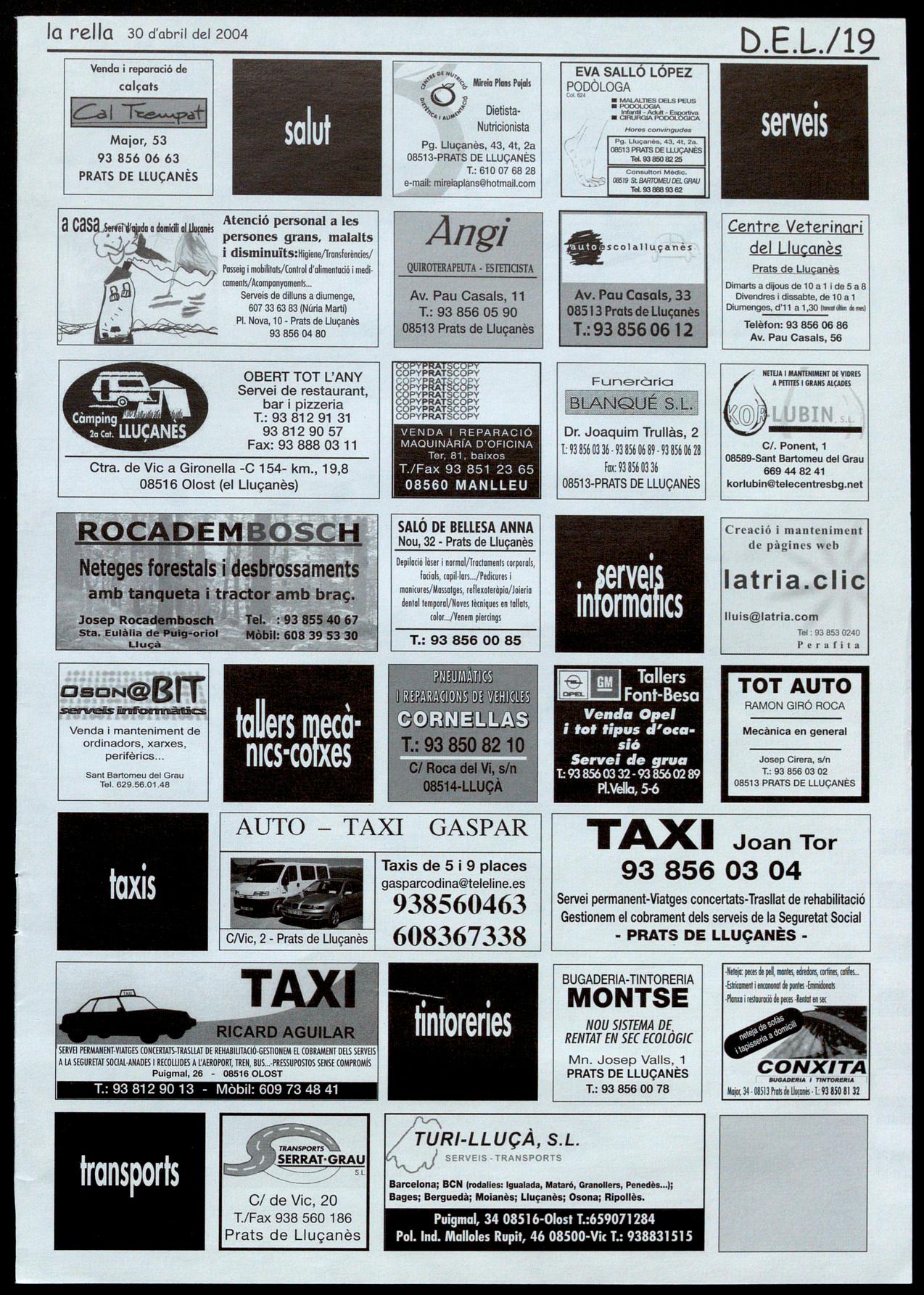 Corresponsals: Aina Arboix (Olost), Jordi Pujol (St. Agustí de Lluçanès), Queralt Capellas i Cristina Torras (St. Feliu Sasserra), Gerard Verdaguer (Perafita), Xavier Crespiera (Ln Torre d'Oristà), Marta Giravent (Sant Boi de Lluçanès), Lluís Bosoms i Francesc Pardo (Alpens), Montserrat Vila (Santa Creu de Joglars), Mercè Sabata (Merlès), Estela lopez (Sobremunt), Marta Faja (Oristà), Montse Surinyach (Lluçà), Xavier Barniol (Sta. Eulàlia de Puig-oriol).