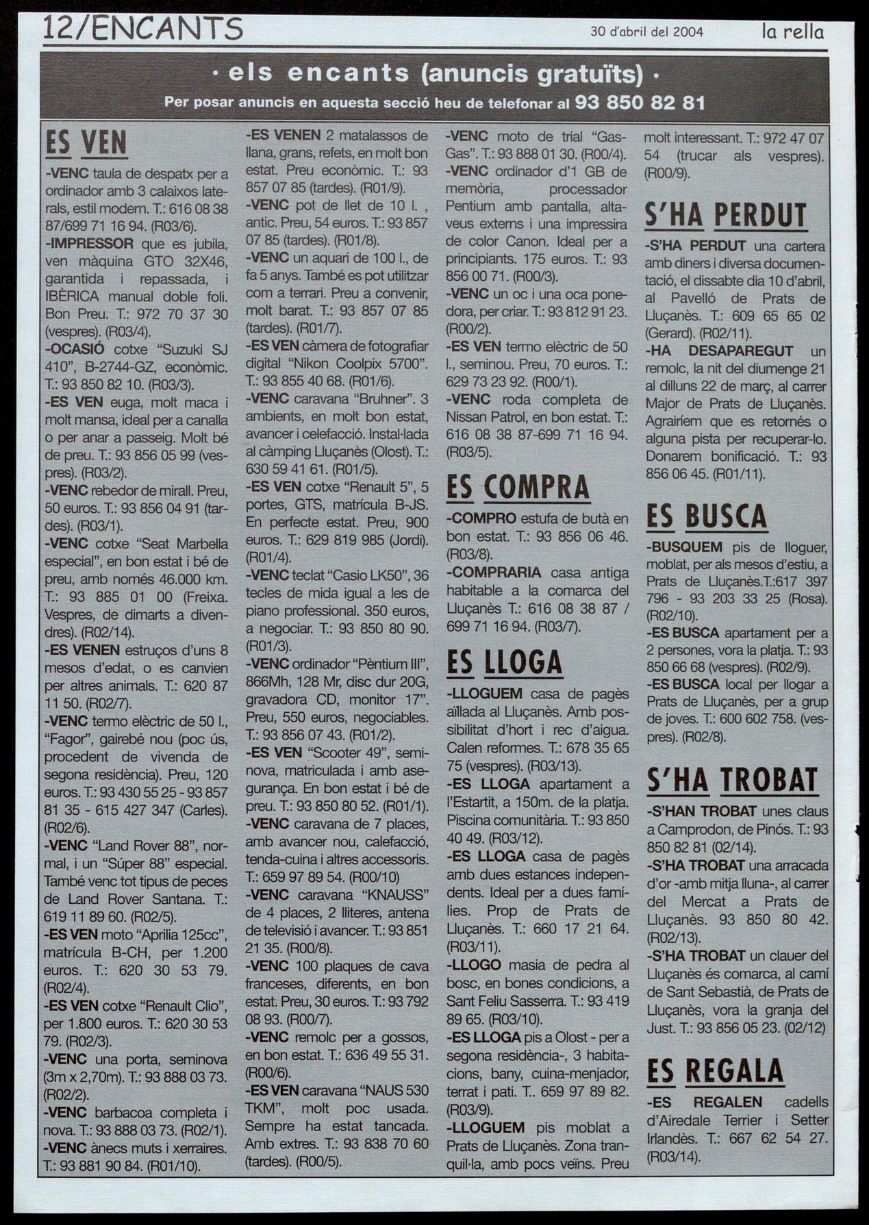 -HA DESAPAREGUT un remolc, la nit del diumenge 21 al dilluns 22 de març, al carrer Major de Prats de Lluçanès. Agrairíem que es retornés a alguna pista per recuperar-lo. Donarem bonificació. T.: 93 8560645. (R01/11).
