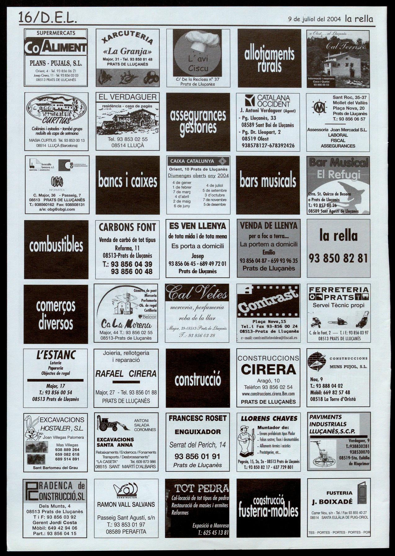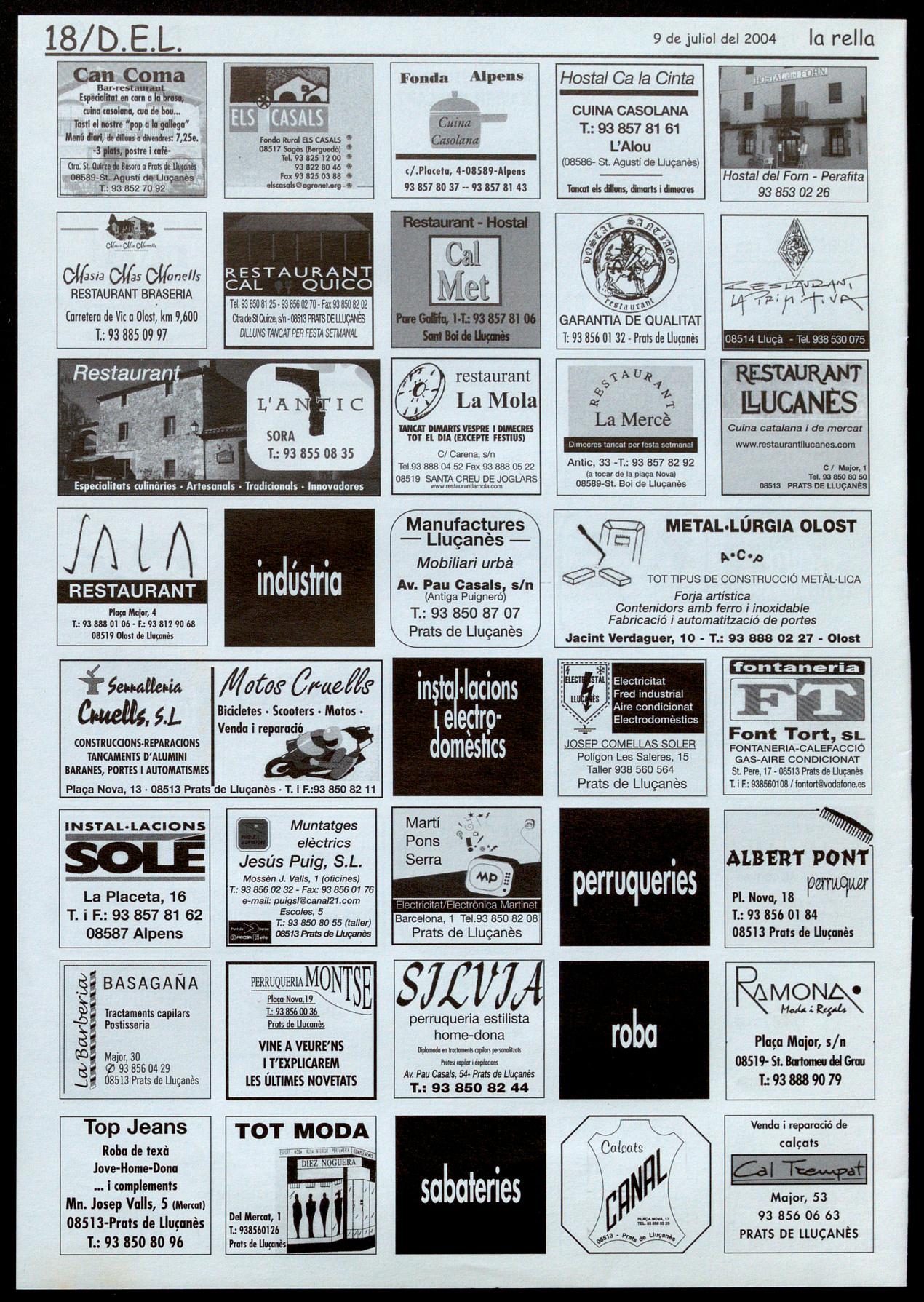 PlAÇA NOIA, 9 (ô93 856 0133 PRATS DE LLUÇANÈS AI vostre servei des de 1966