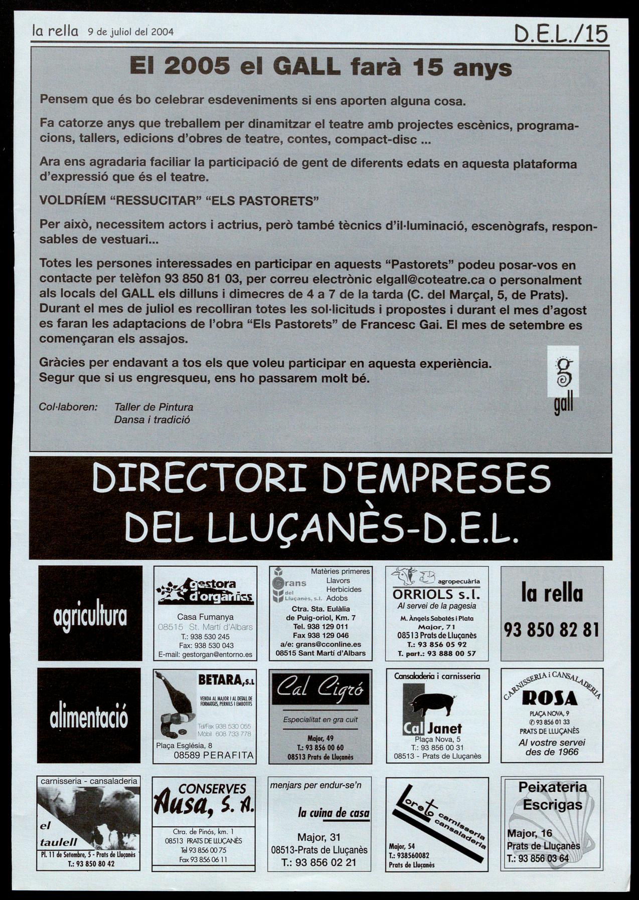 El 2005 el GALL farà 15 anys