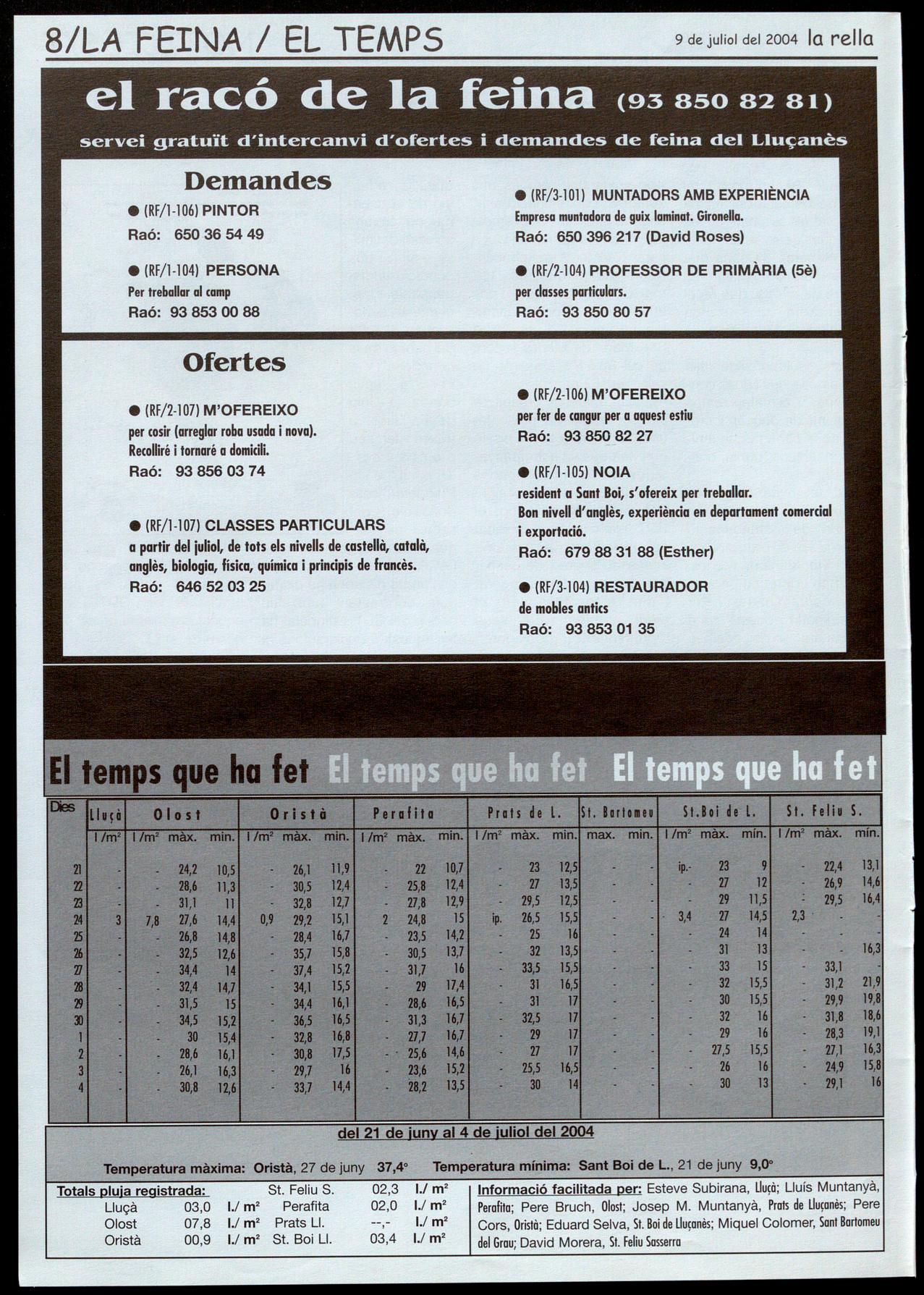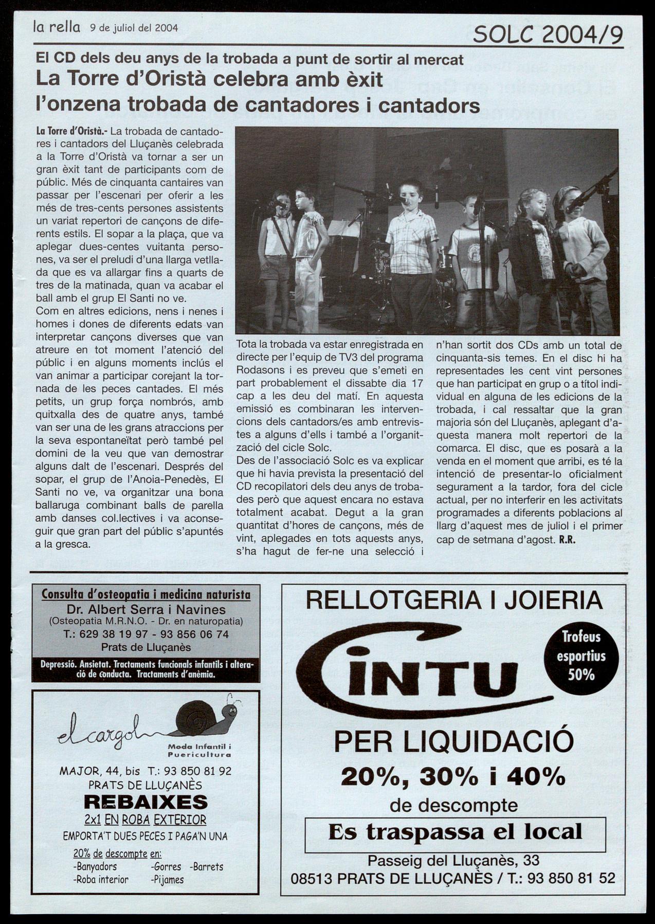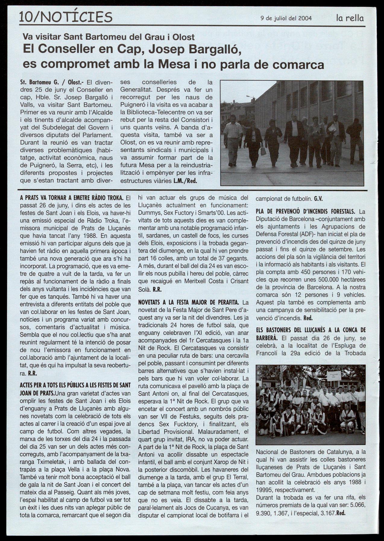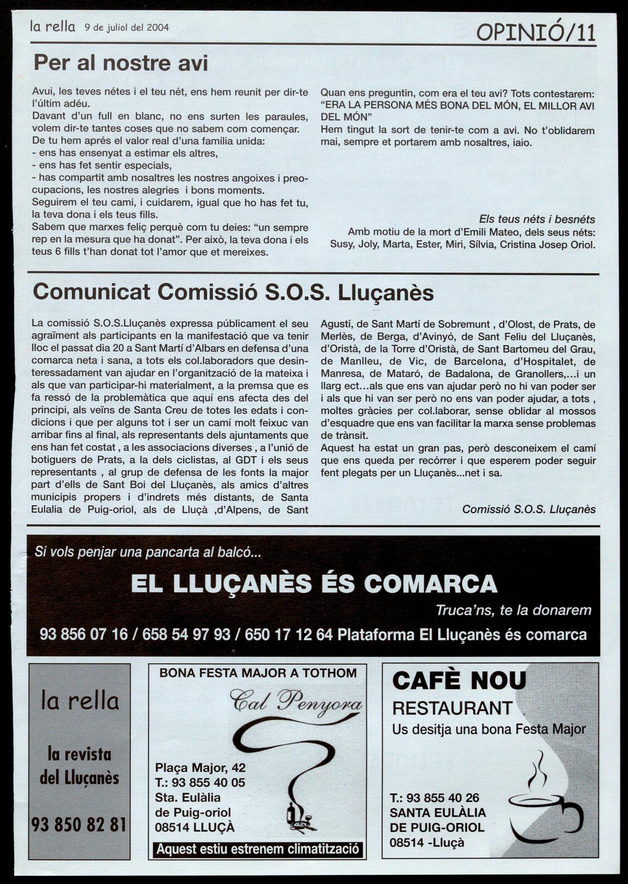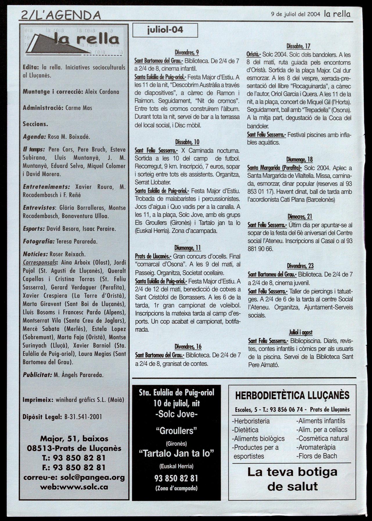 Corresponsals: Aina Arboix (Olost), Jordi Pujol (St. Agustí de Lluçanès), Queralt Capelles i Cristina Torras (St. Feliu Sasserra), Gerard Verdaguer (Perafita), Xavier Crespiera (la Torre d'Oristà), Marta Giravent (Sant Boi de lluçanès), Lluís Bosoms i Francesc Pardo (Alpens), Montserrat Vila (Santa Creu de Joglars), Mercè Sabata (Merlès), Estela lopez (Sobremunt), Morta Faja (Oristà), Montse Surinyoch (Lluçà), Xavier Barniol (Sta. Eulàlia de Puig-oriol), laura Megios (Sant Bartomeu del Grau).
