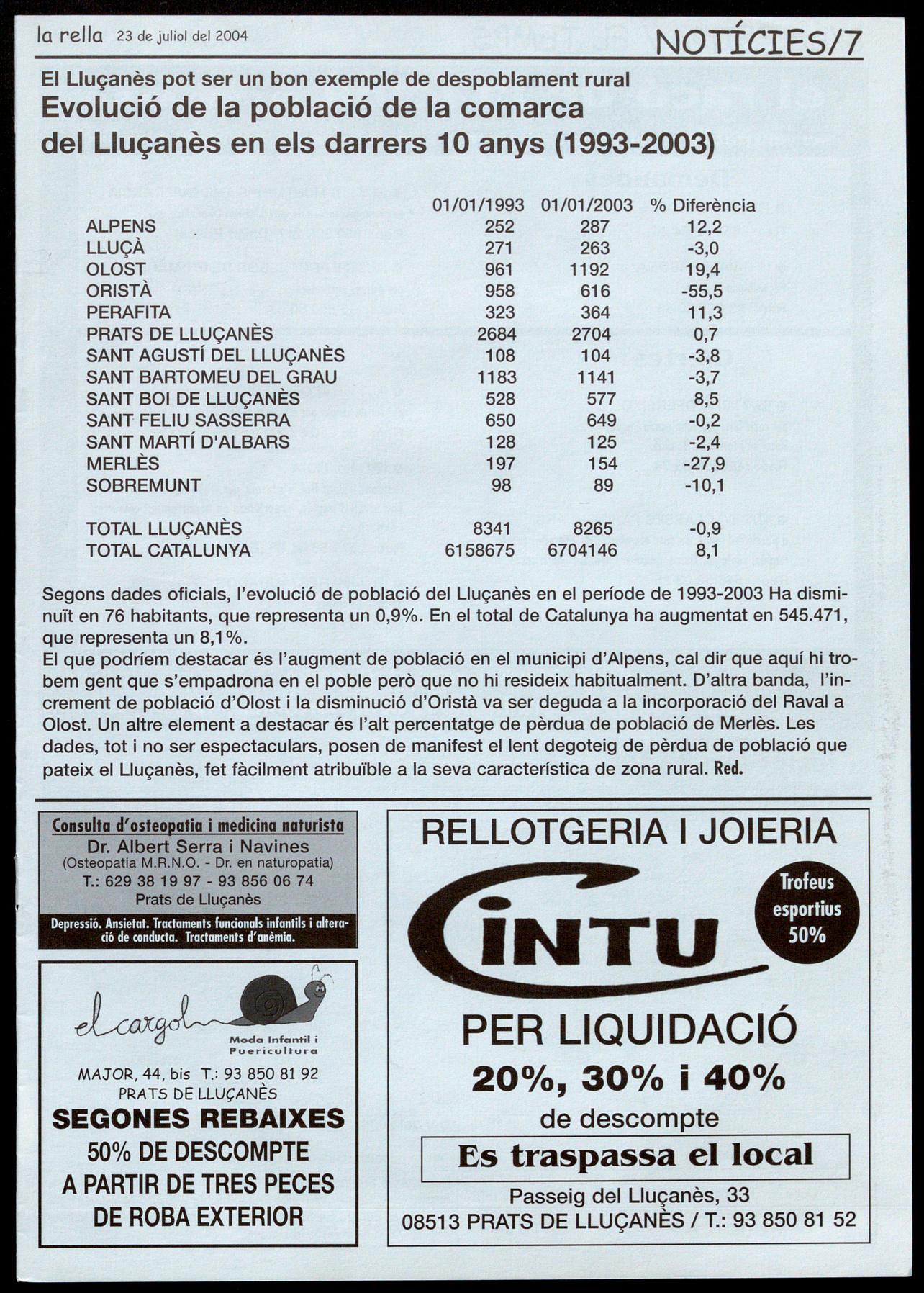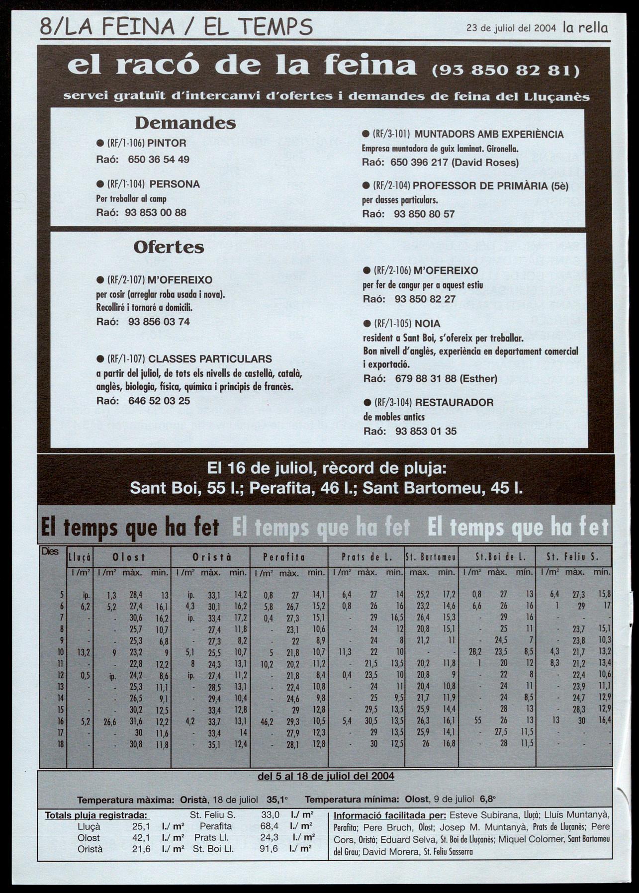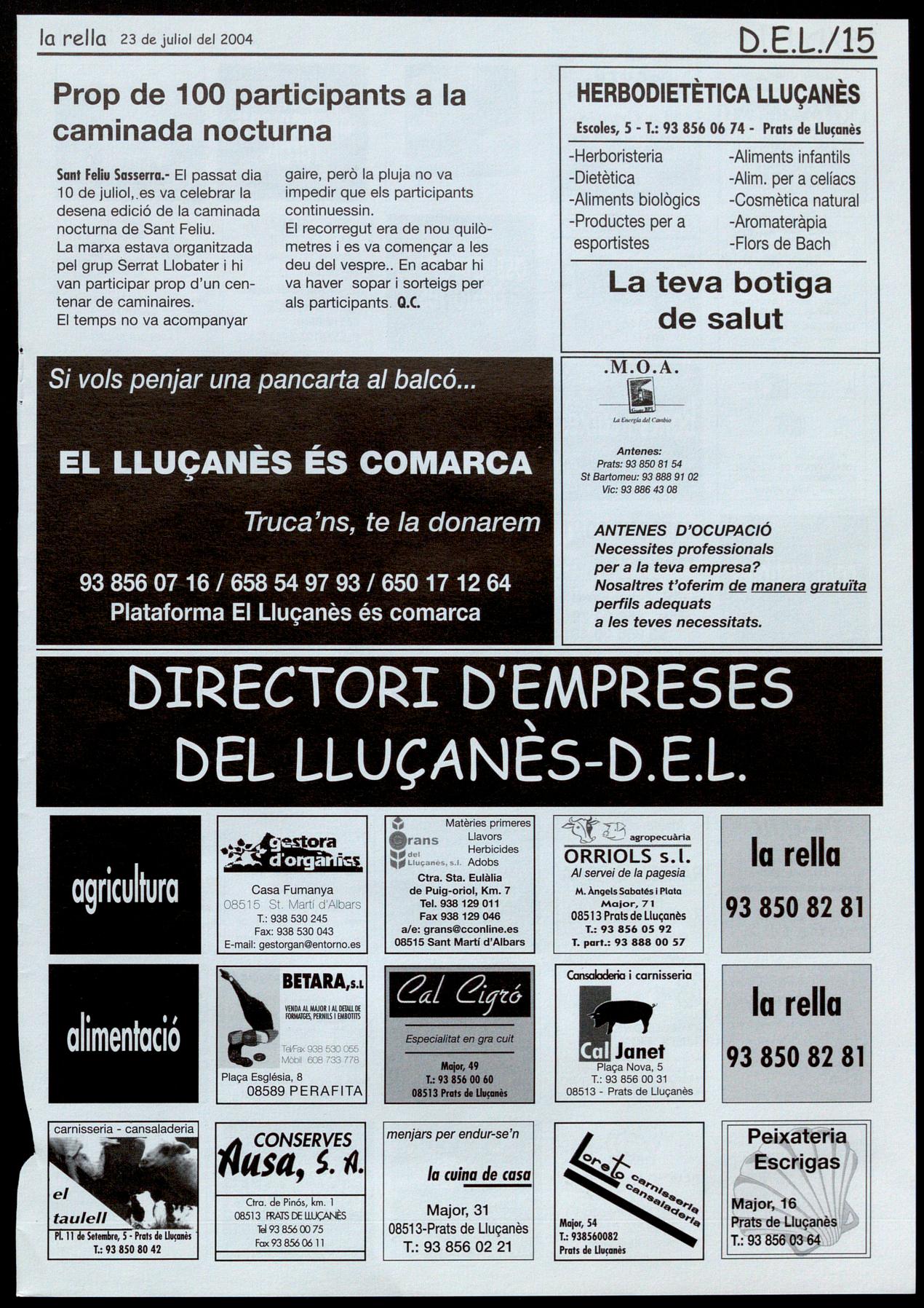 Corresponsals: Aina Arboix (Olost), Jordi Pujol (St. Agustí de Lluçanès), Queralt Capellas i Cristina Torras (St. Feliu Sasserra), Gerard Verdaguer (Perafita), Xavier Crespiera (Lo Torre d'Oristà), Marta Giravent (Sant Boi de Lluçanès), Lluís Bosoms i Francesc Pardo (Alpens), Montserrat Vila (Santa Creu de Joglars), Mercè Sabata (Merlès), Estela lopez (Sobremunt), Marta Faja (Oristà), Montse Surinyach (Lluçà), Xavier Barniol (Sta. Eulàlia de Puiq-oriol], laura Megias (Sant Bartomeu del Grau).