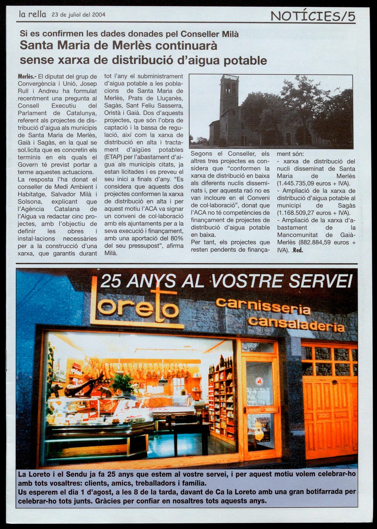 Santa Maria de Merlès continuarà sense xarxa de distribució d'aigua potable
