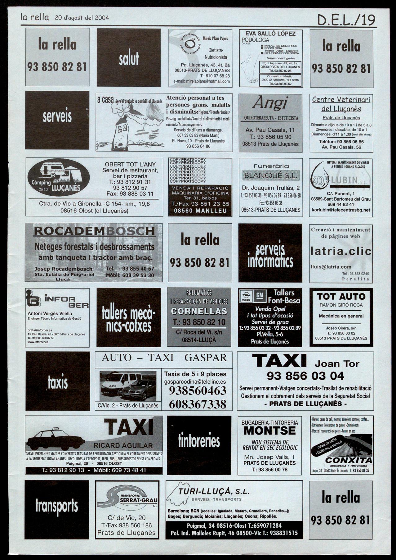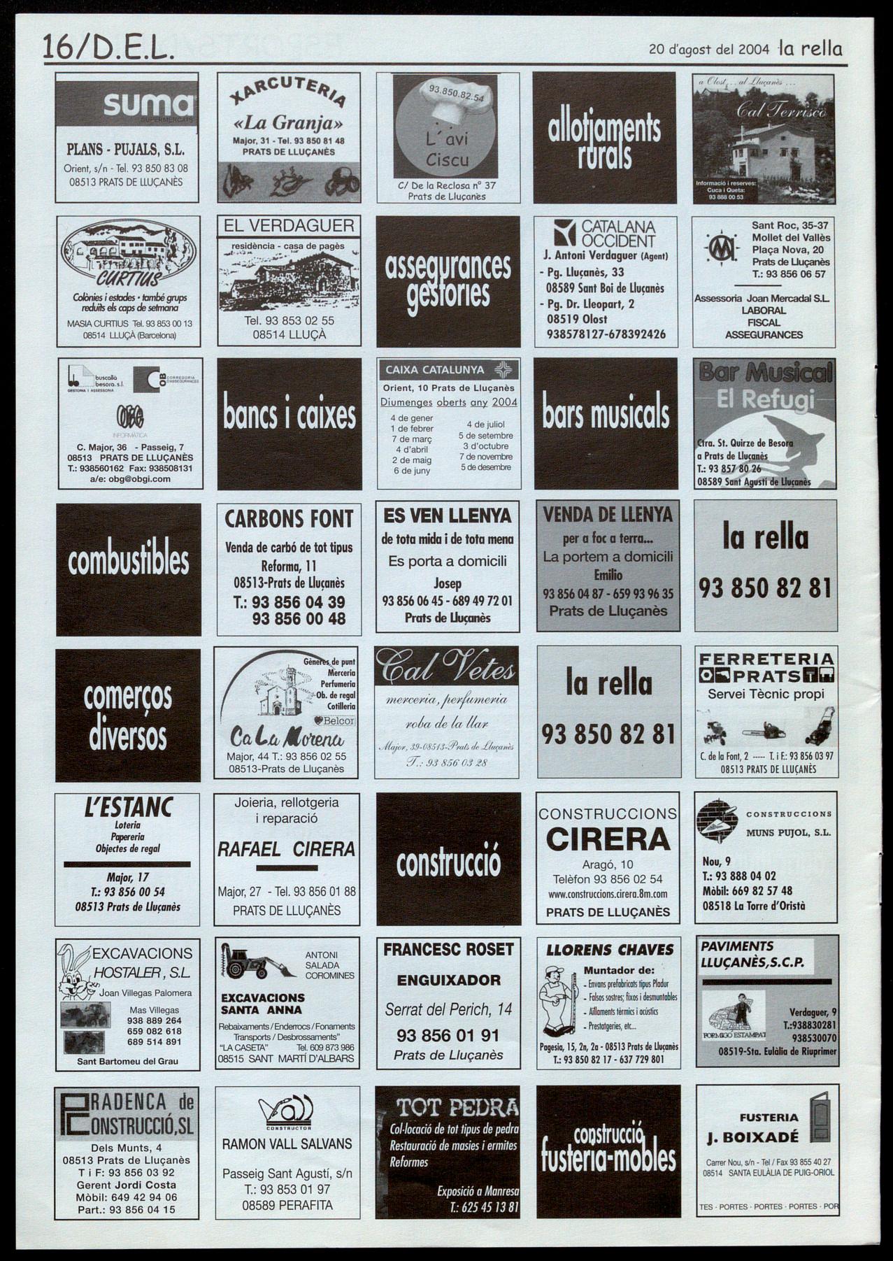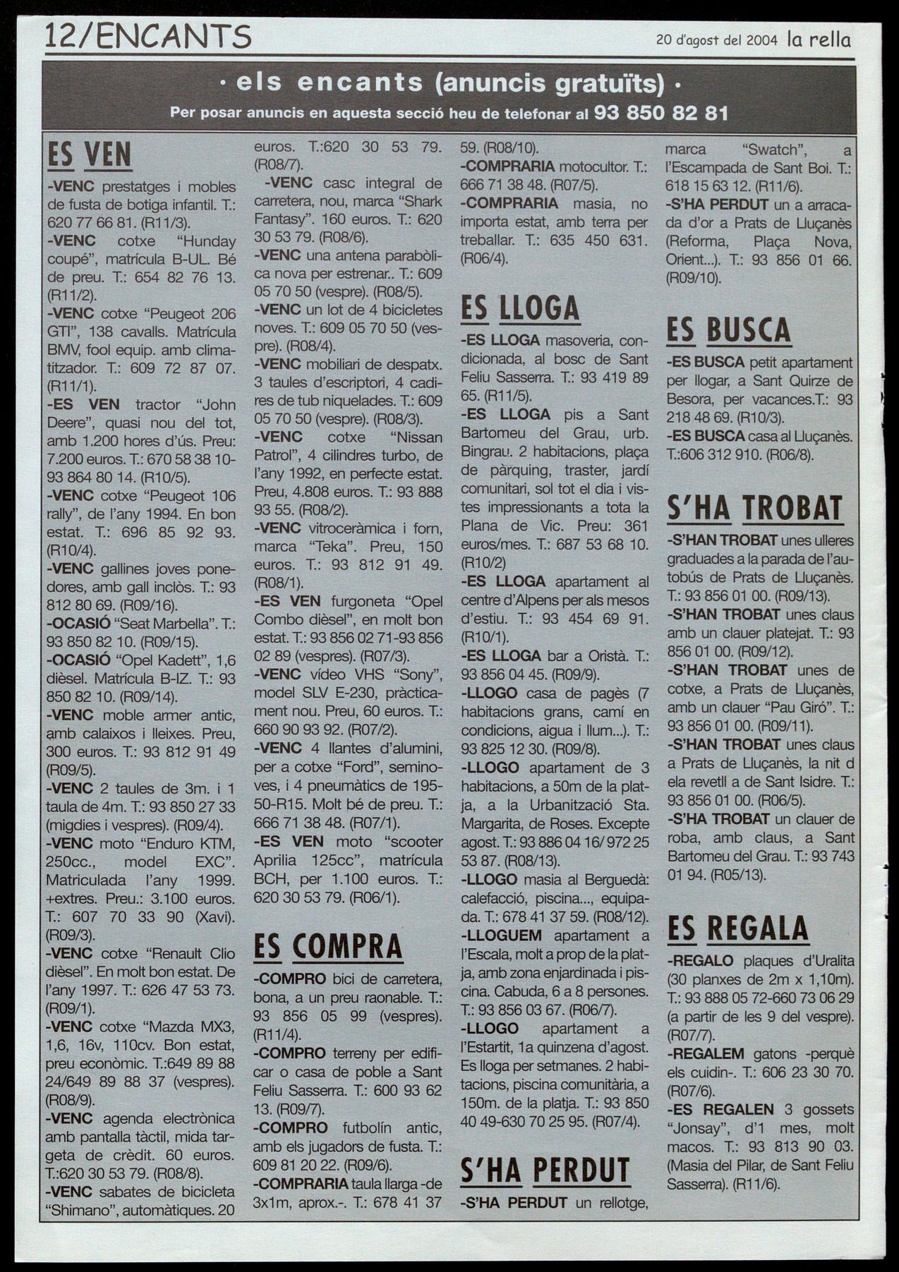 Per posar anuncis en aquesta secció heu de telefonar al 93 850 82 81