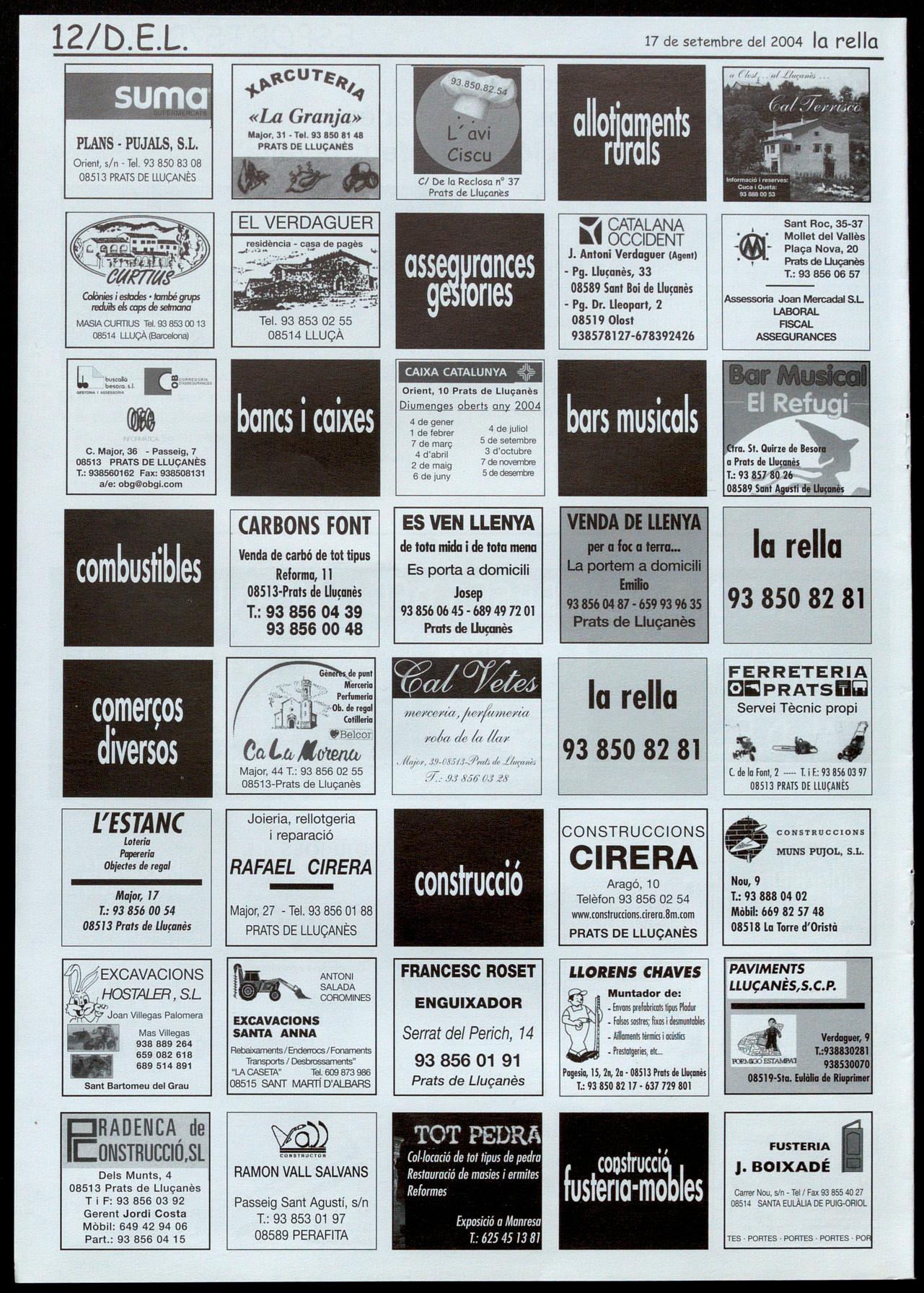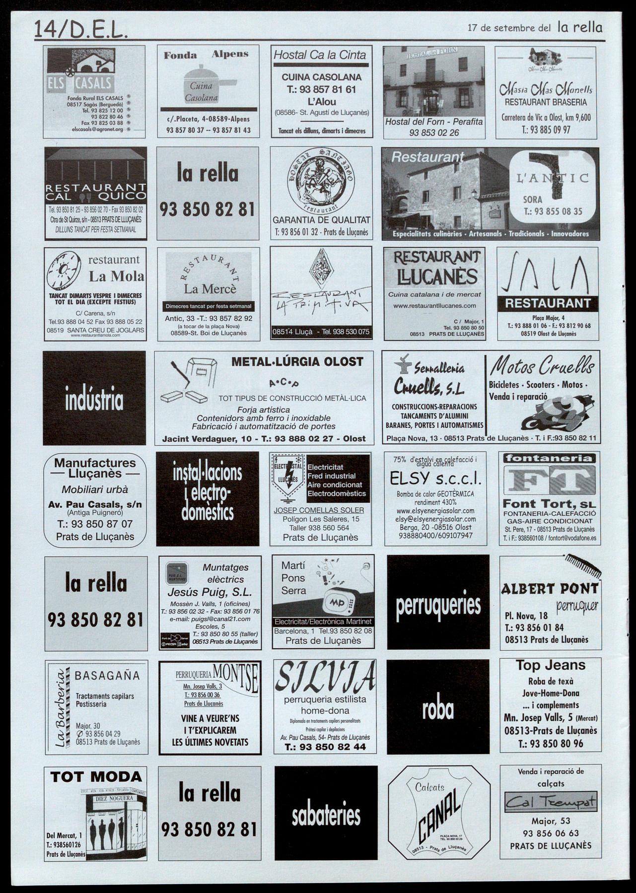 Escoles, 5 - T.: 93 856 06 74 - Prats de Llu�anès