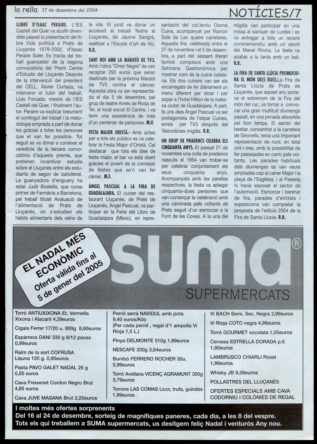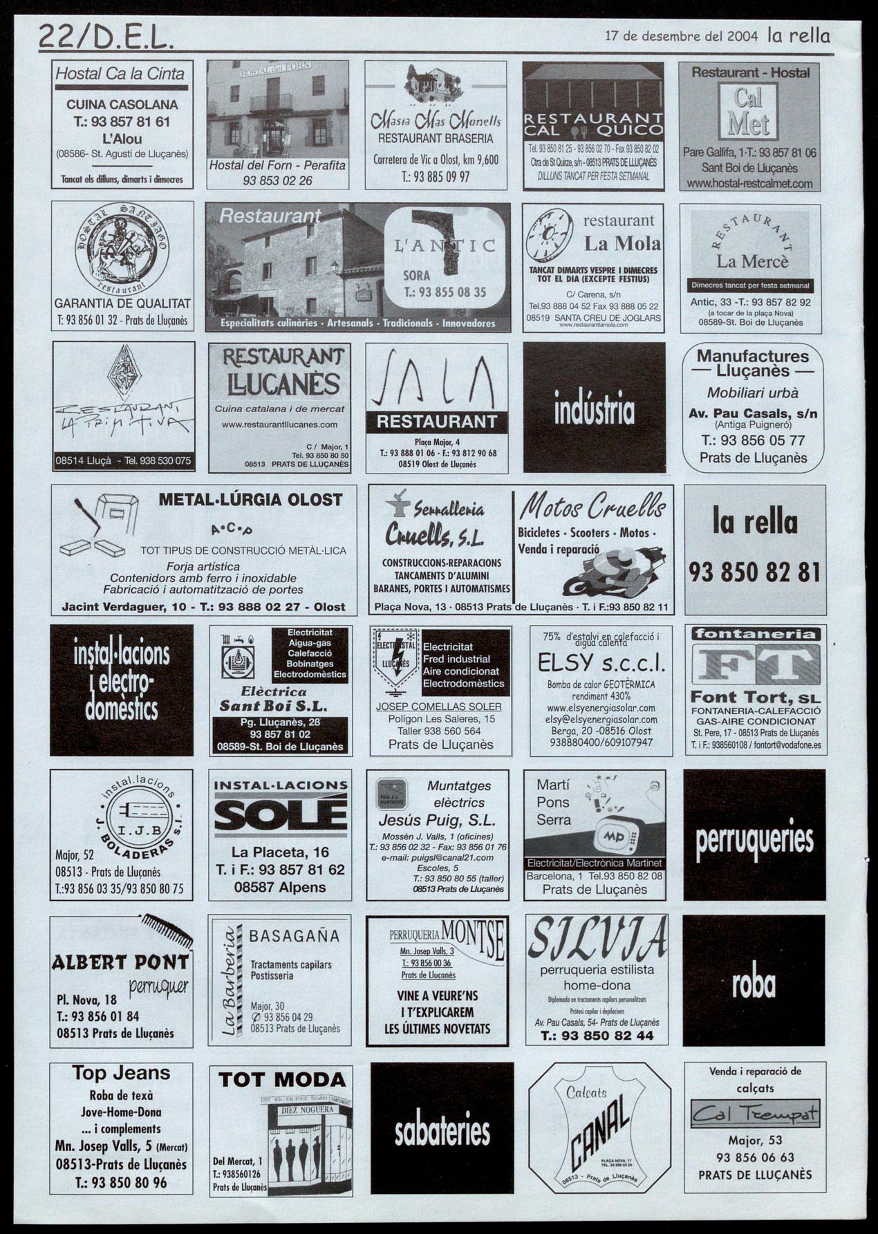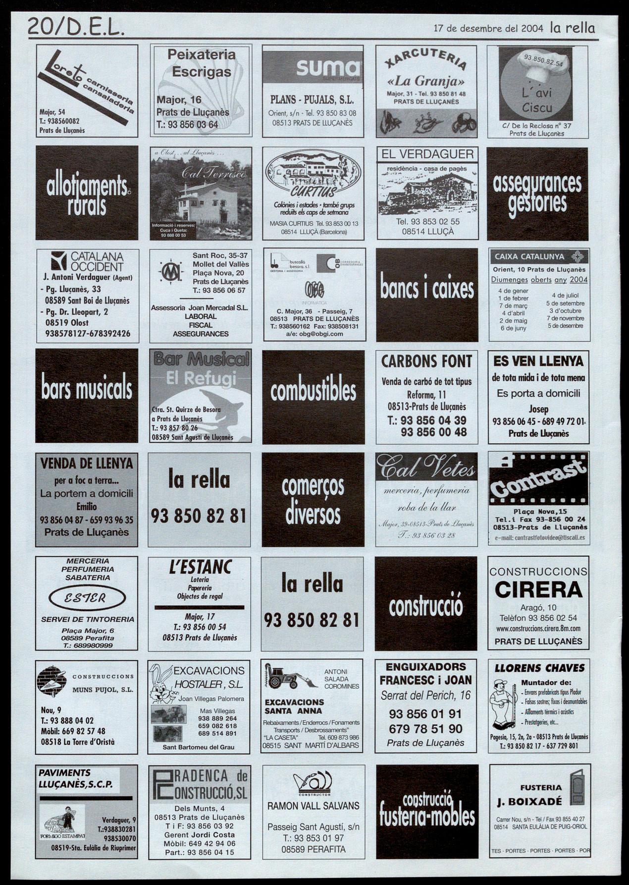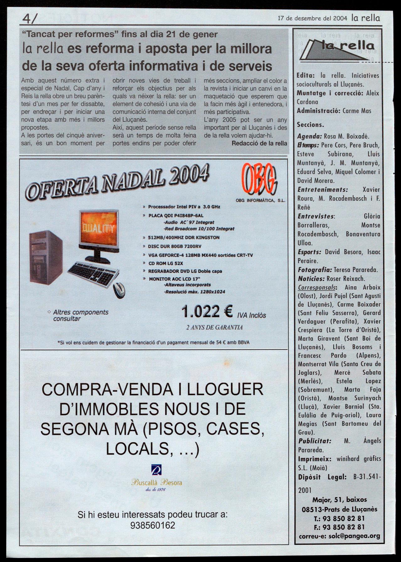 Corresponsals: Aina Arboix (Olost), Jordi Pujol (Sant Agustí de lluçanès), Carme Boixoder (Sant Feliu Sasserra), Gerard Verdaguer (Perafita), Xavier Crespiera (Lo Torre d'Oristà), Morta Giravent (Sant Boi de Lluçanès), Lluís Bosoms i Francesc Pardo (Alpens), Montserrat Vilo (Santo Creu de Joglars), Mercè Sabata (Merlès), Estela Lopez (Sobremunt), Morta Faja (Oristà), Montse Surinyach (Lluçà), Xavier Borniol (Sta Eulàlia de Puiq-oriol), Laura Megias (Sant Bartomeu del Grou).