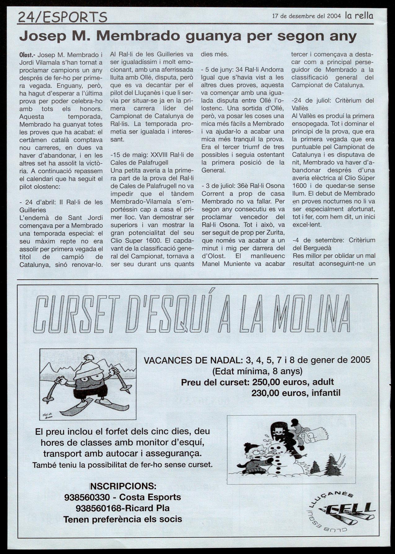 màxim rival, Manel Muniente, que després de Viladrau seguia líder de la general, només tres punts per davant de Membrado. Tot tenir-ne prou quedant a la dotzena posició al 2000