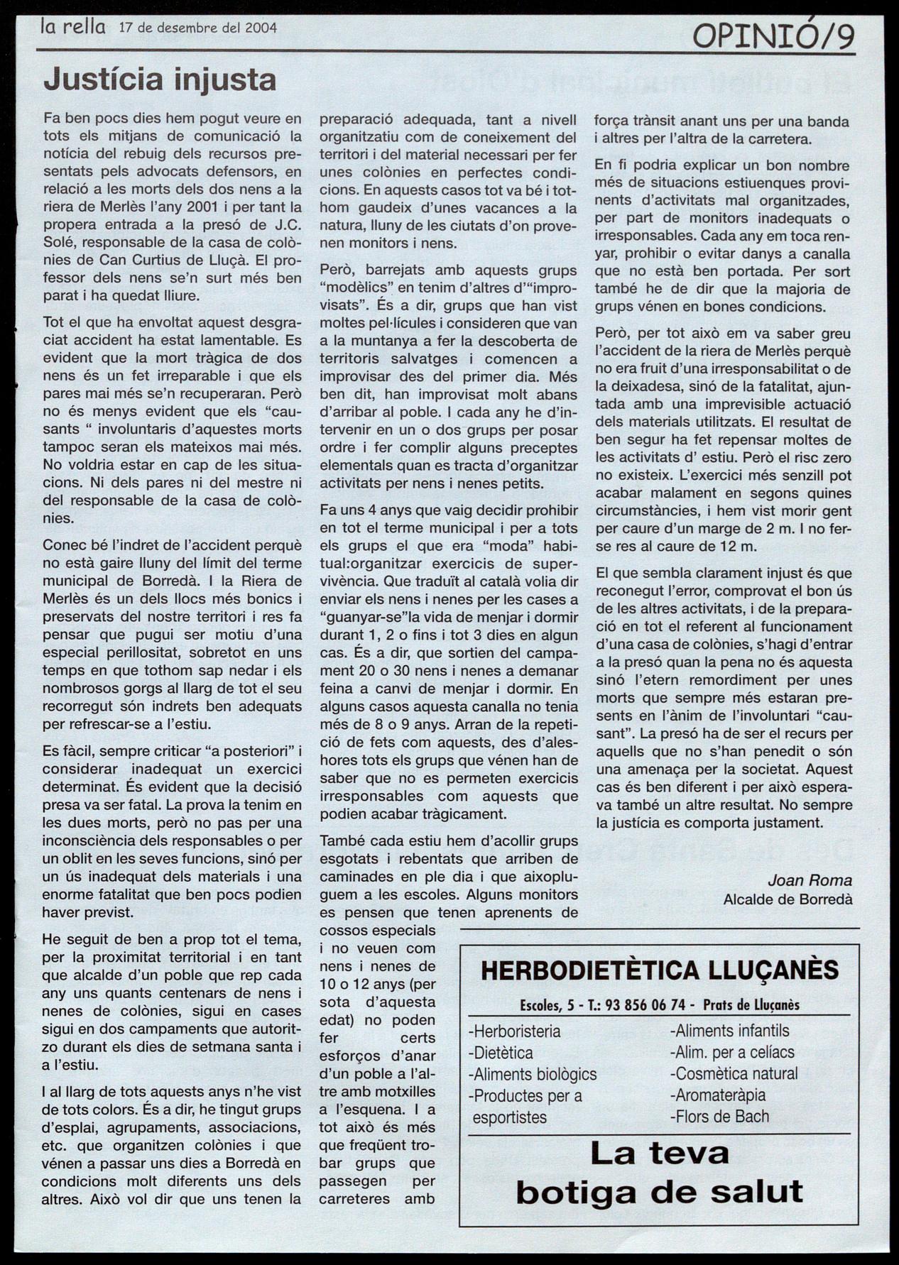 Publicitat: M. Àngels Para redo.