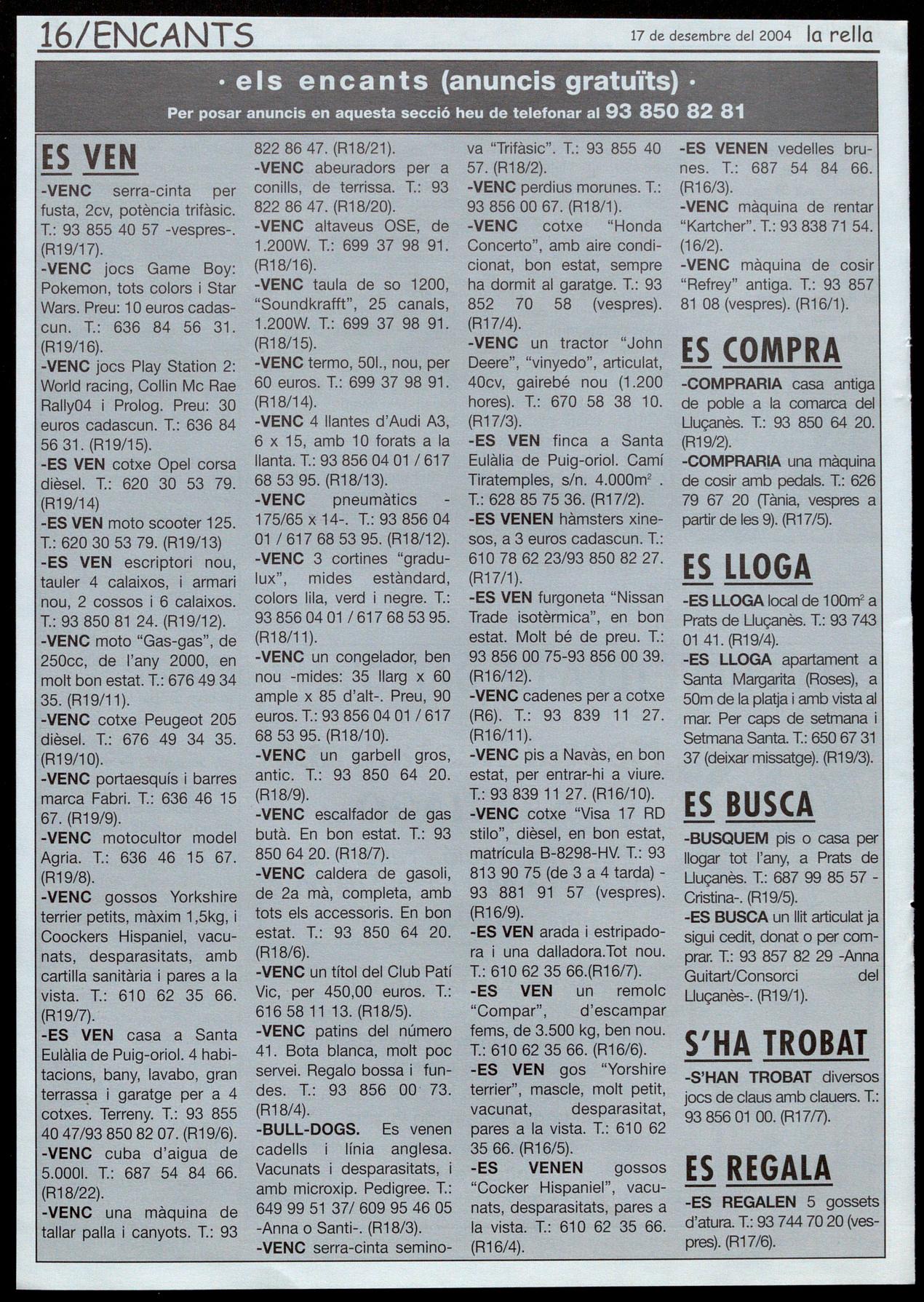 ) m �uscalLà ,�Jesorêl (kJ ,t. 1!)76' Si hi esteu interessats podeu trucar a: 938560162