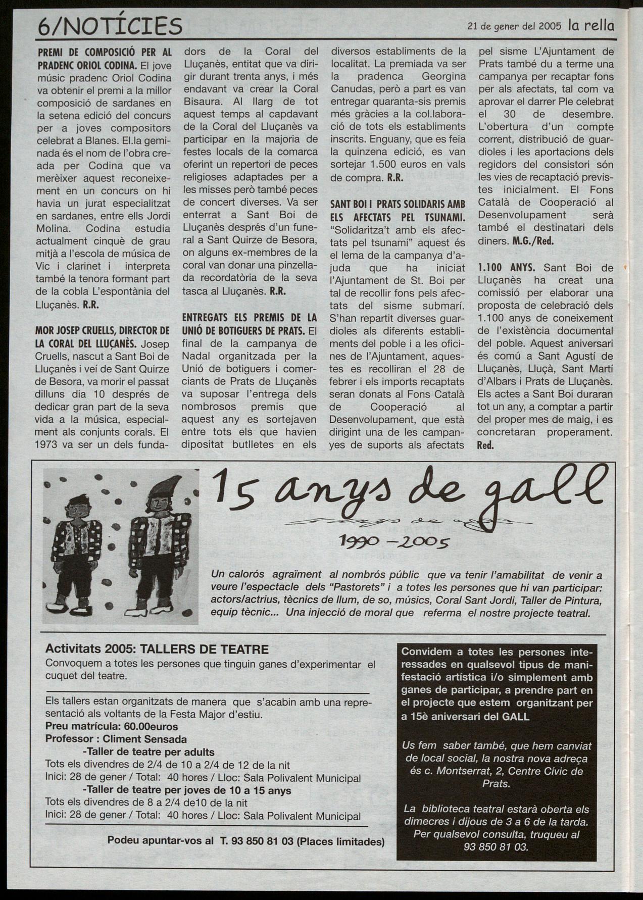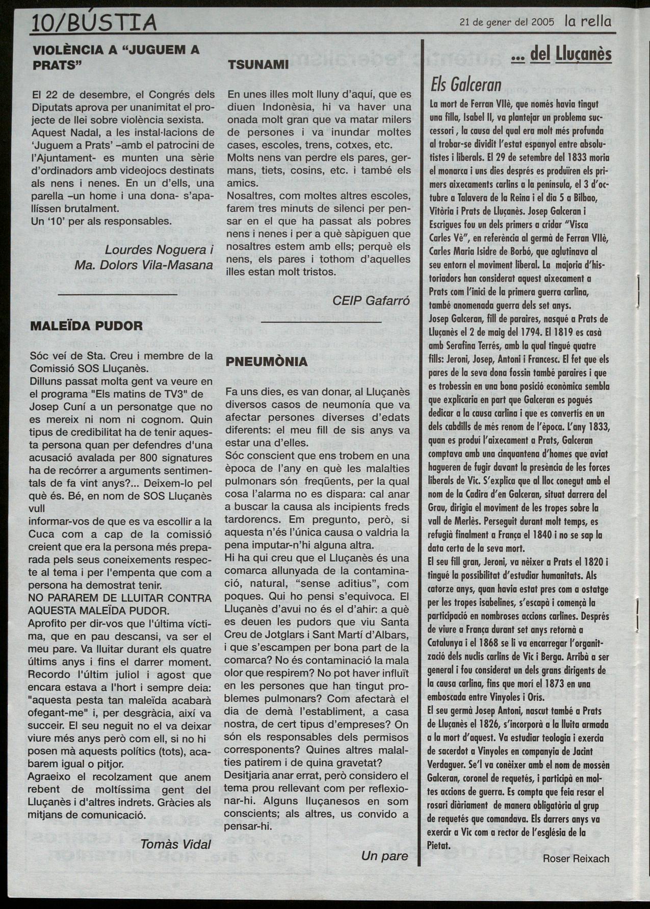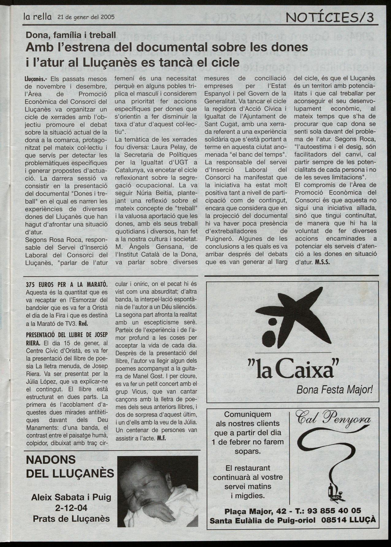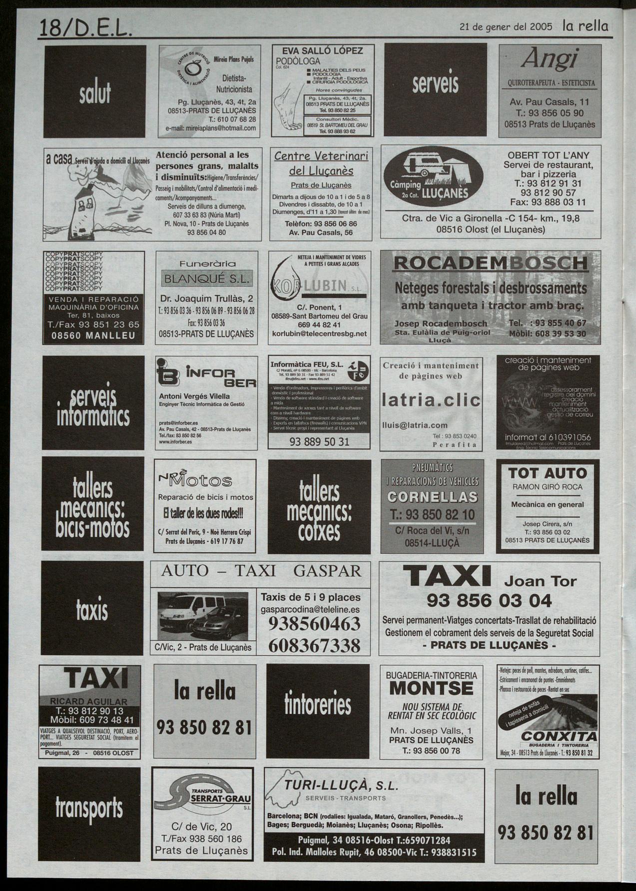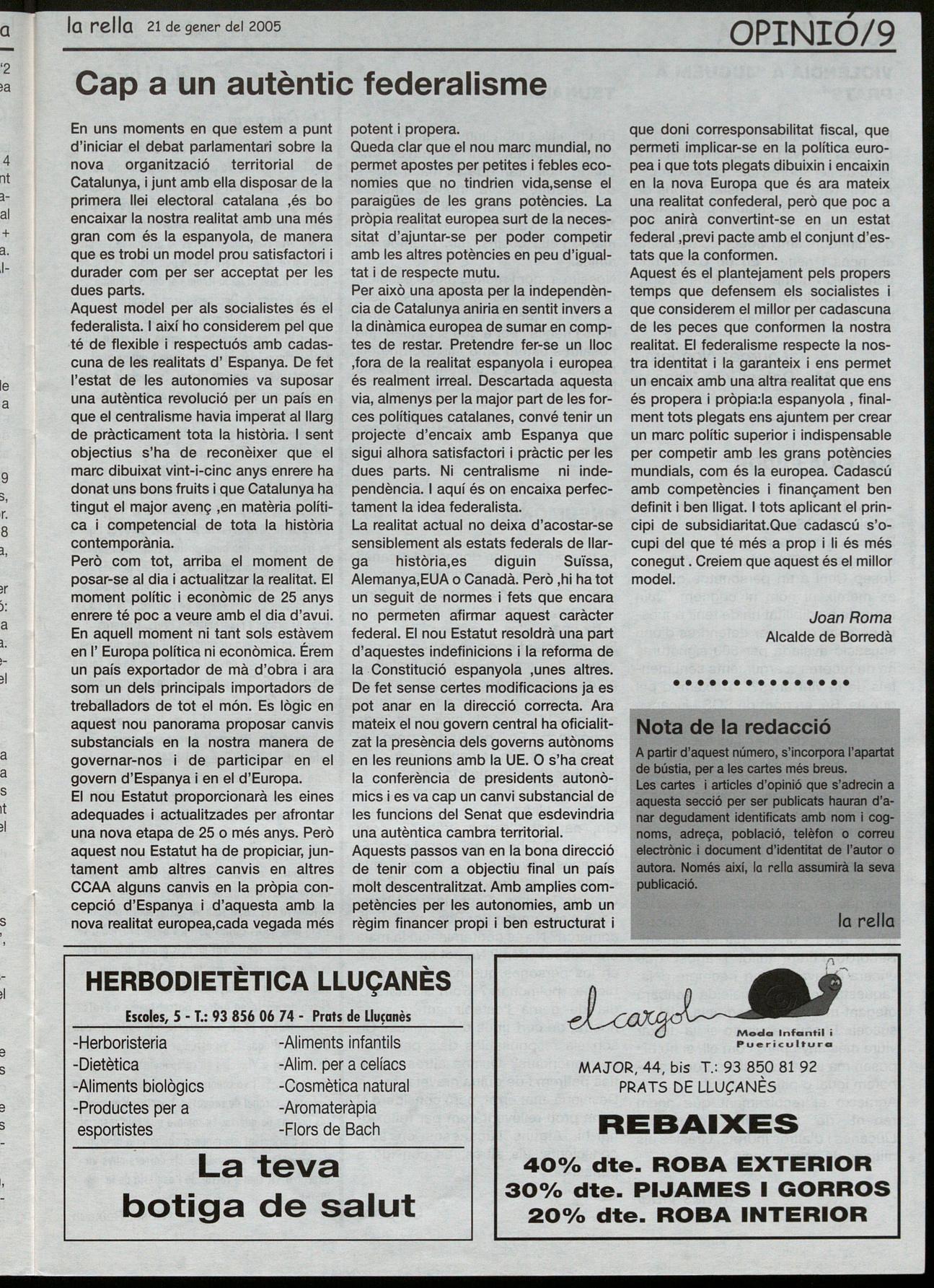 Tal com vam anunciar, amb l'any nou arriben canvis a la rella. Alguns ja es poden començar a veure en aquest número: canvis al temps, més pàgines fixes en color, una nova distribució de les seccions, columnes d'opi- ;¡; nió i informació fixes Però n'hi haurà més, com ara noves seccions, una maquetació diferent, més. serveis per consultar, nous col-laboradors Tot per anar fent més. i més gran l'espai comunicatiu del Lluçanès. Gràcies a la col-laboració de tothom -lectors, anunciats, subscriptors, distribuïdors - ho farem possible� la rella'
