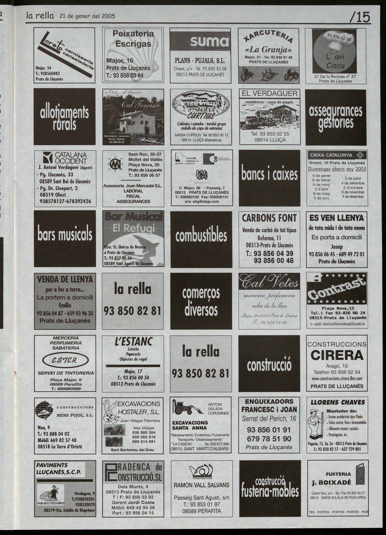 ENCADELLATS C/. dels Àlbers, s/n 08513 Prats de Lluçanès T,: 93 856 04 16 (despatxi T.: 93 850 80 35 (naul