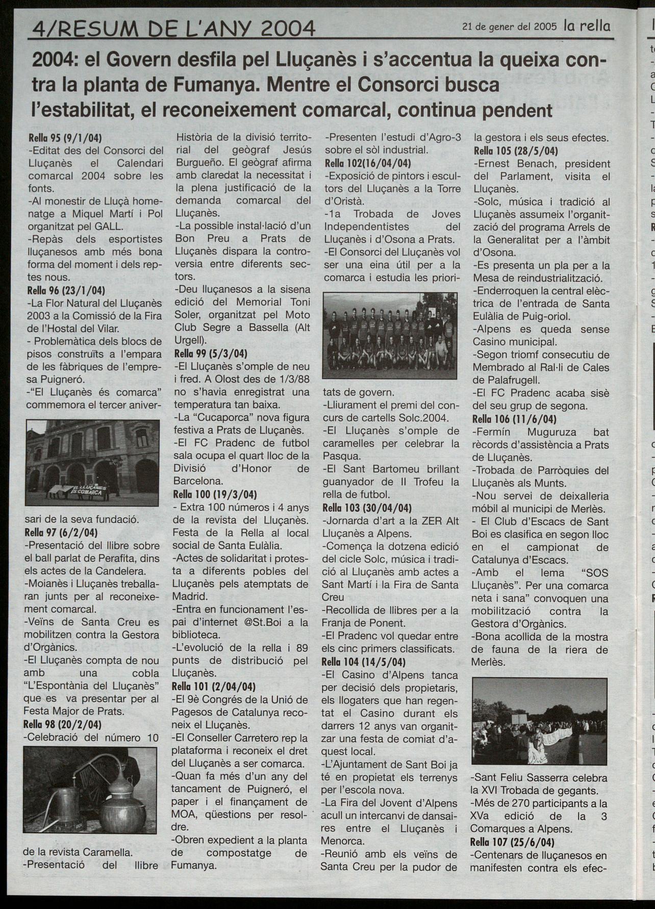 - Extra 100 números i 4 anys de la revista del Lluçanès. Festa de la Rella al local social de Santa Eulàlia.