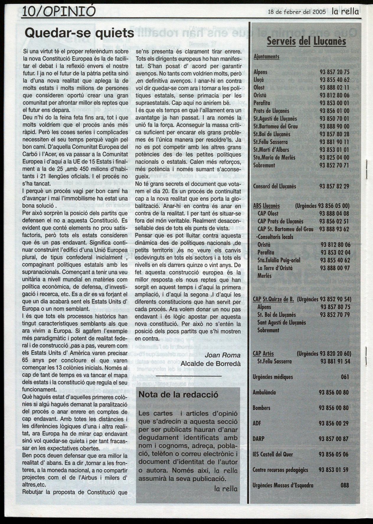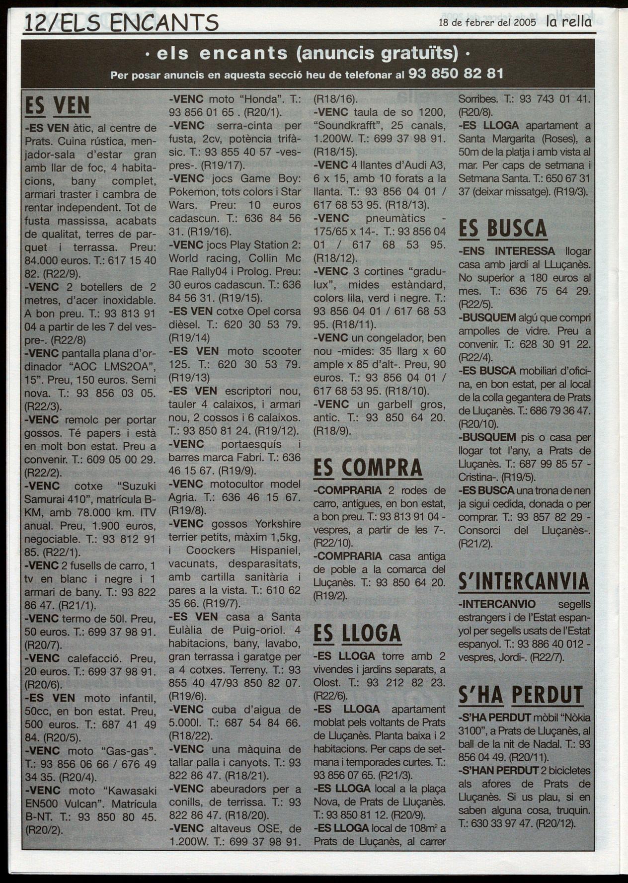 MAJOR, 44, bis T.: 93 8508192 PRATS DE LLUÇANÈS