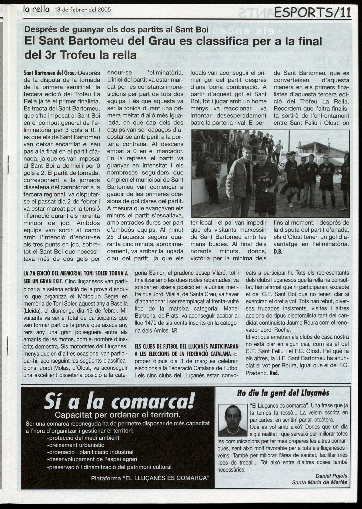 Tot i la derrota els de Prats de Lluçanès continuen en una de les posicions capdavanteres i es troben en aquests moments a deu punts del líder momentani,I'Escuraxemeneies.D.B.