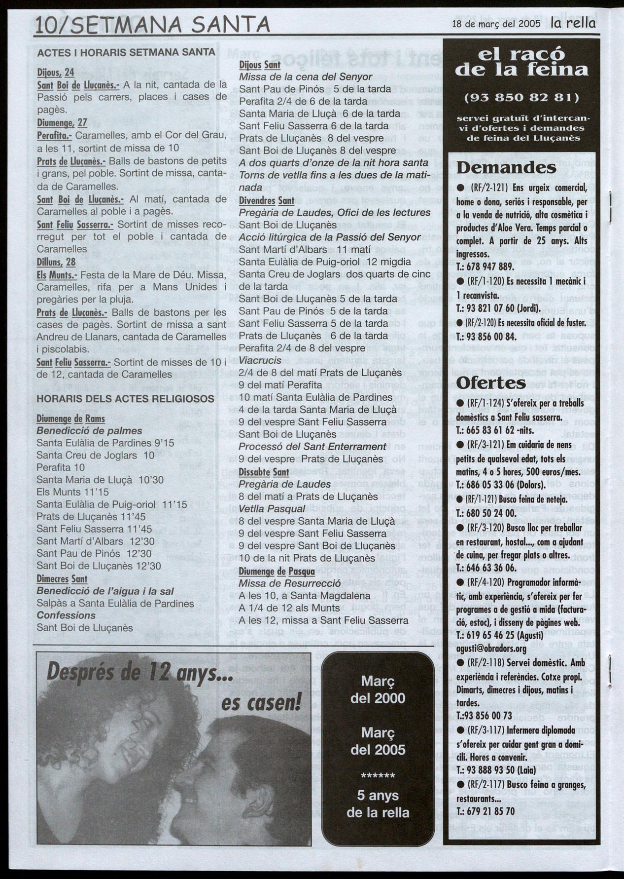 Del31 de març al 20 de maig de 2005. Els dijous de 9 a 11 de la nit. a dies i un total de 16 hores.