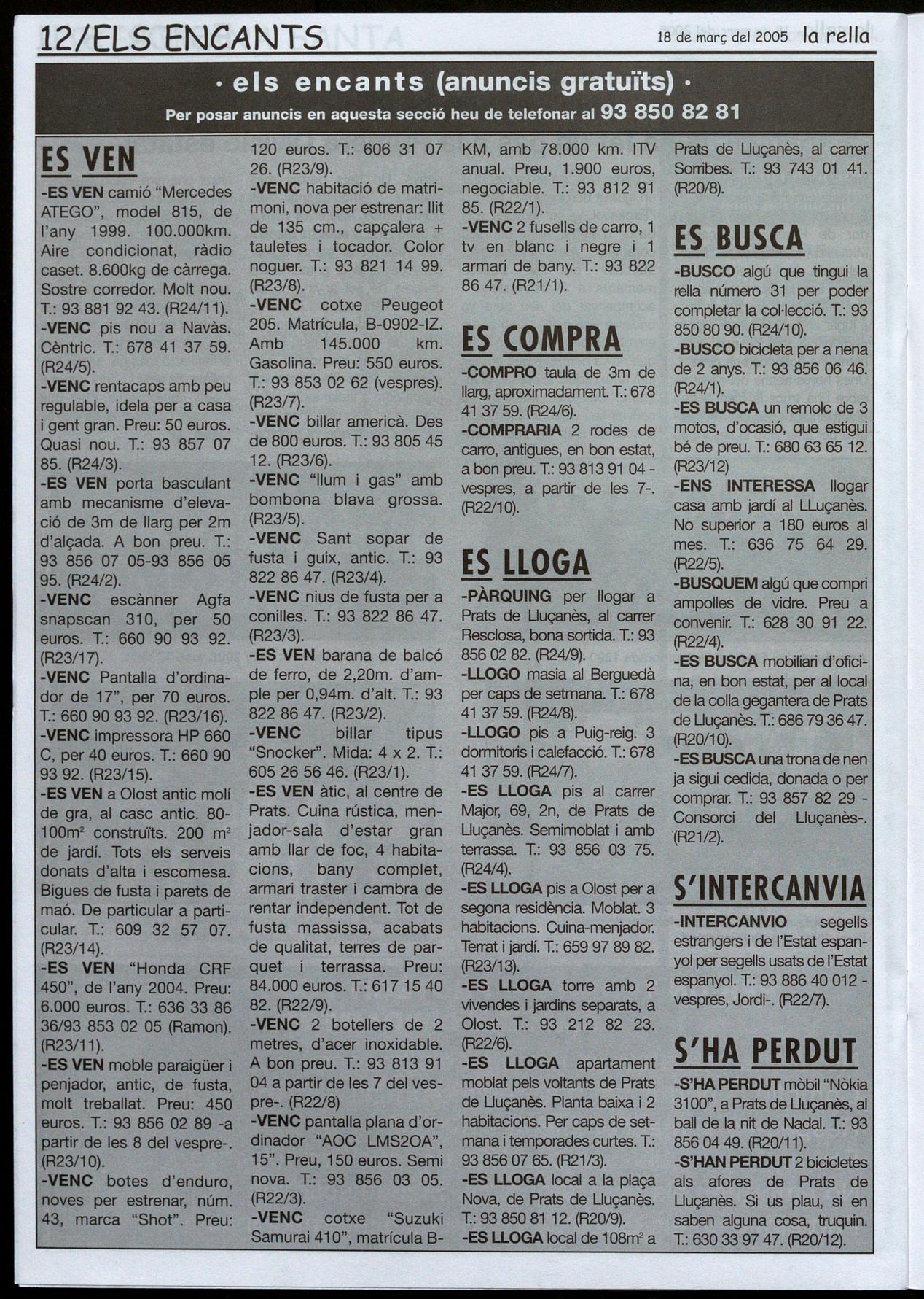 Prats de Lluçanès, al carrer Sorribes. T.: 93 743 01 41. (R20/8).