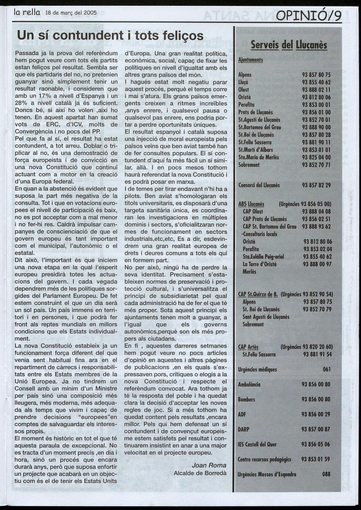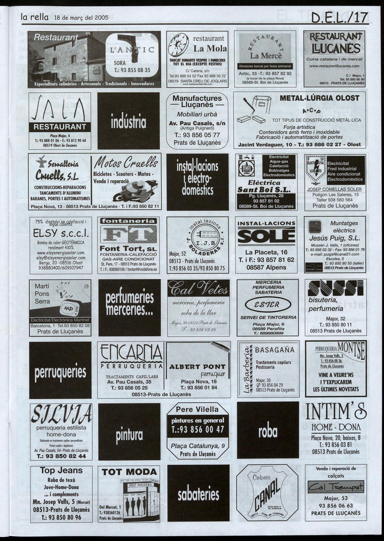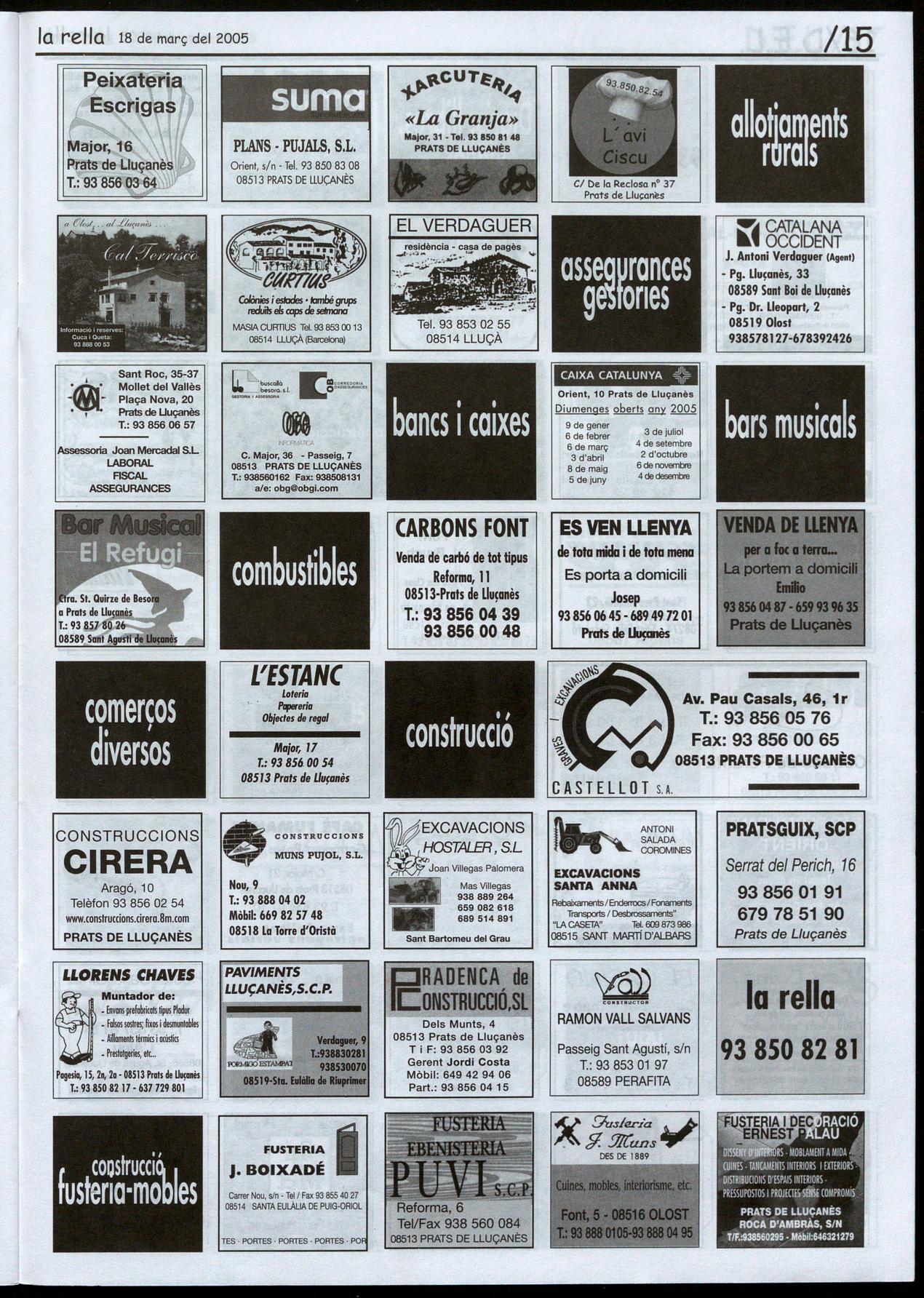 InformaGió facilitada per: Esteve Subirana, lIu¡à; Lluís Muntanyà, Perofita; Pere Bruch, Olosl; Josep M. Muntanyà, Prols de lIu¡anès; Pere Cors, Orislà; Eduard Selva, �anl80i de lIu¡anès; Laura Mejias, �anl8arlomeudel Grau; David Morera, �anl feliu �asserra