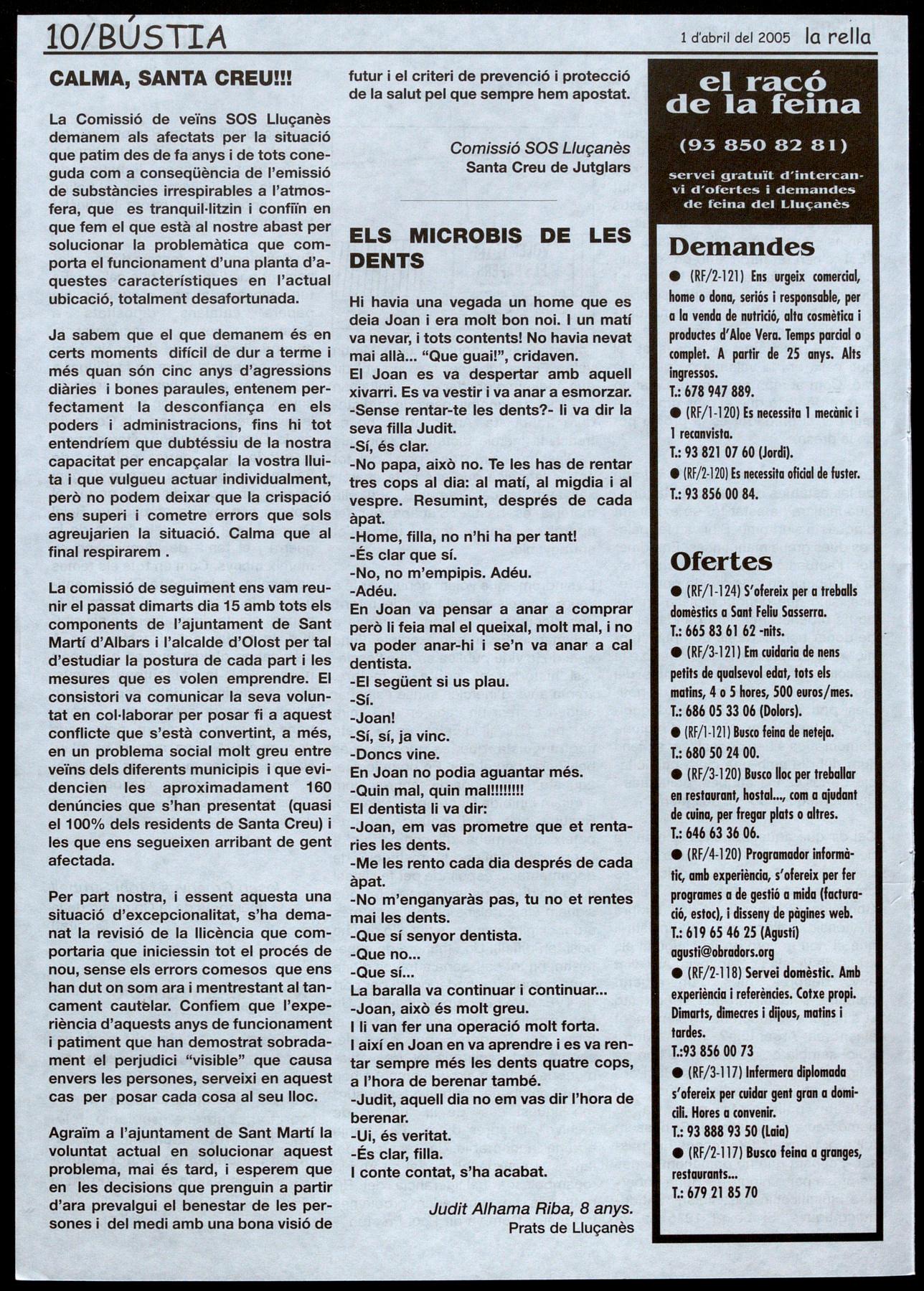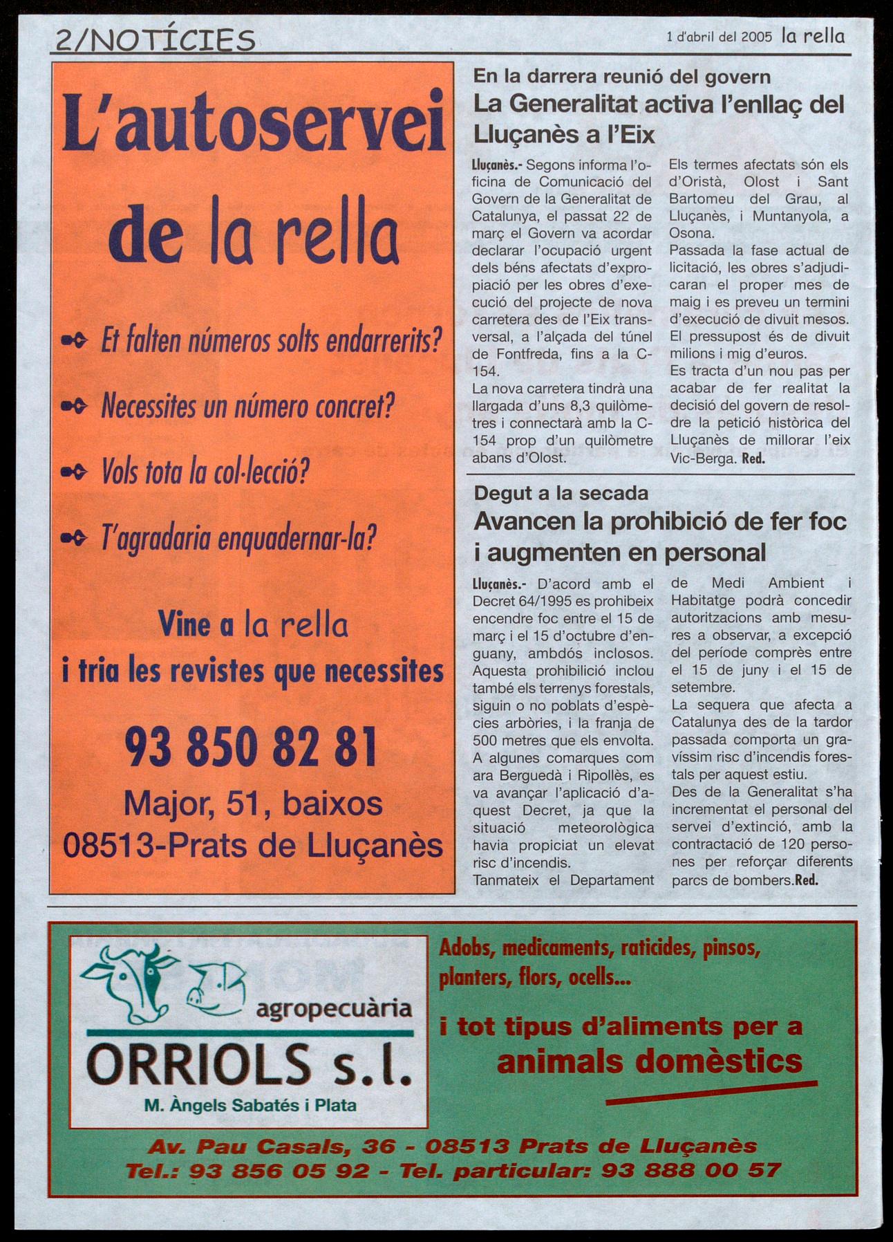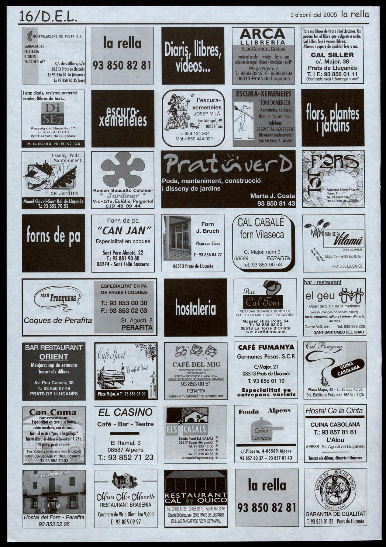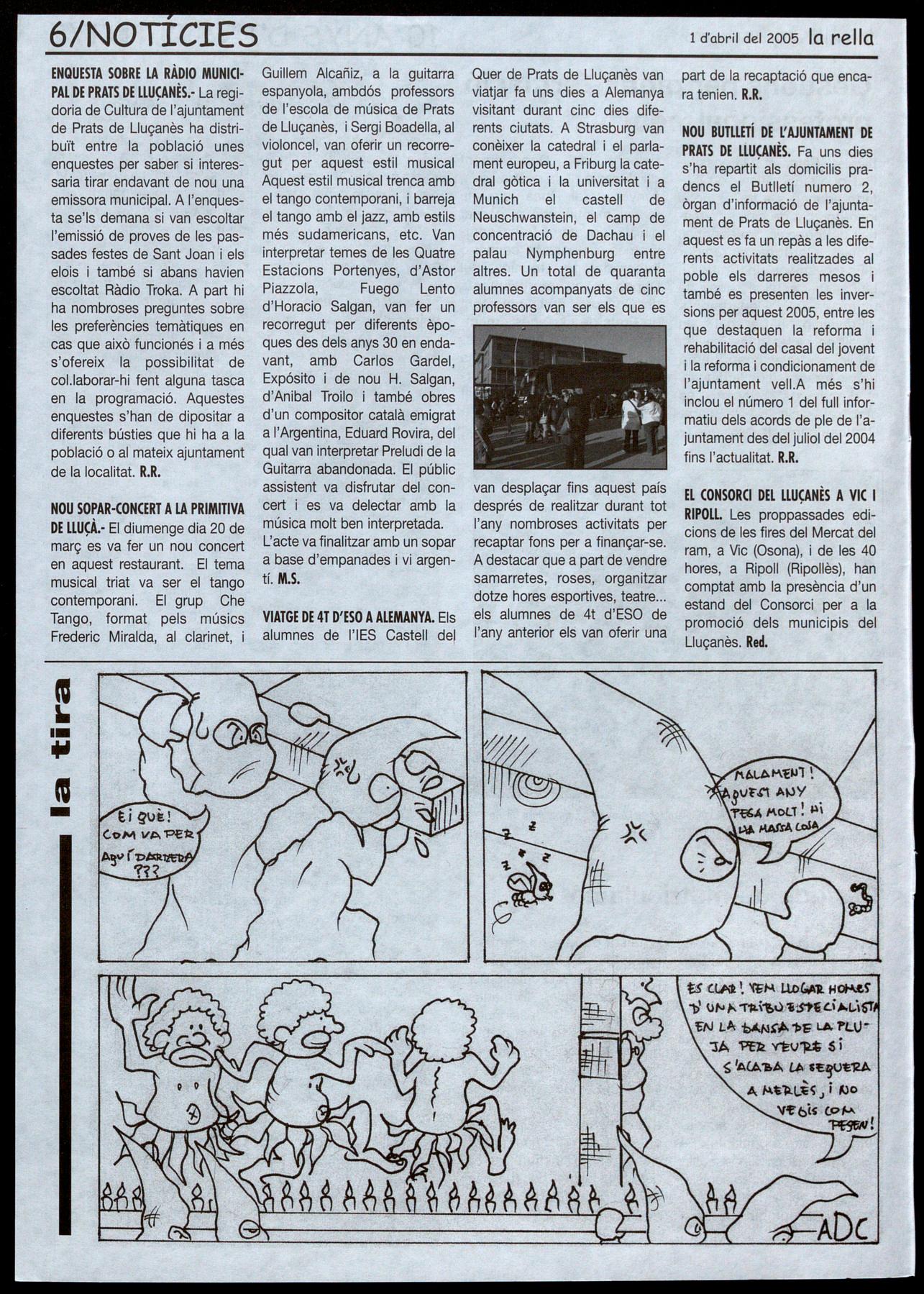 NOU BUTLLETí DE L'AJUNTAMENT DE PRATS DE LLUÇANÈS. Fa uns dies s'ha repartit als domicilis pradencs el Butlletí numero 2, òrgan d'informació de l'ajuntament de Prats de Lluçanès. En aquest es fa un repàs a les diferents activitats realitzades al poble els darreres mesos també es presenten les inversions per aquest 2005, entre les que destaquen la reforma i rehabilitació del casal del jovent i la reforma condicionament de l'ajuntament vell.A més s'hi inclou el número 1 del full informatiu dels acords de ple de l'ajuntament des del juliol del 2004 fins l'actualitat. R.R.