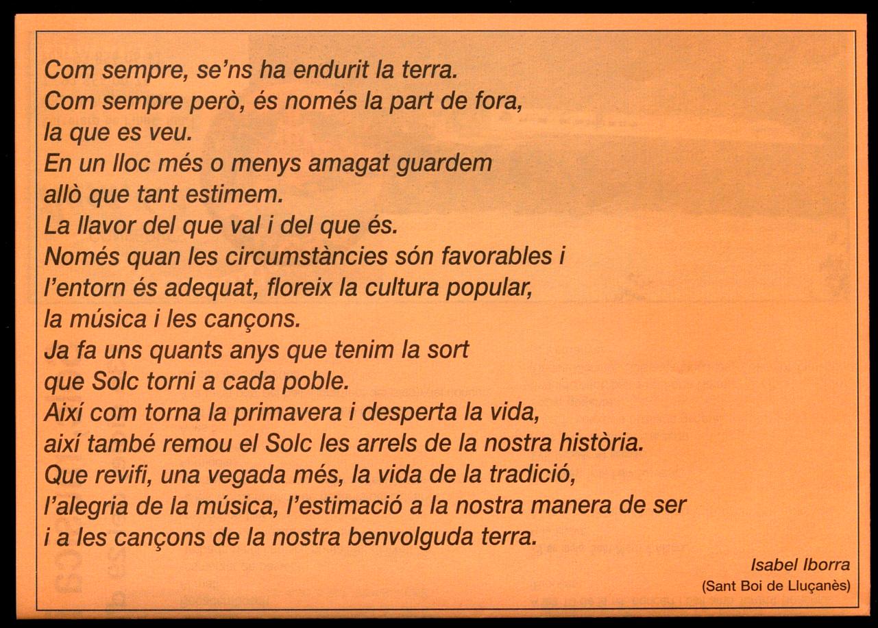 Així com torna la primavera i desperta la vida, així també remou el Solc les arrels de la nostra història.