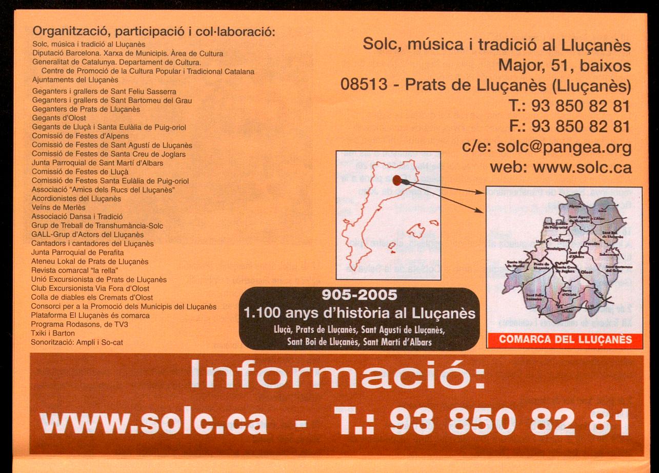 Coixinera, la Font de la Carota, Xarop de Canya, la Criatura Verda, la Banda d'en Vinaixa, la Cobleta de la Selva, Skamot Tamarro, la Sonsoni, Tururut Bonaigua, els Groullers, Randellaires, Duatònic, la Portàtil F.M., Tres fan ball De Calaix. Cal remarcar altra vegada la presència de Forta Barreja, amb músics lluçanesos, els Acordionistes del Solc, sorgits aquests darrers en els tallers organitzats per l'associació. Quant al Solc d'allà enllà, en aquesta edició es comptarà amb Aljibe Folk, de Madrid, Castilla-La Mancha, els italians Lampie Tròn Trio. Altres activitats que cal assenyalar com a complement seran l'espectacle de
