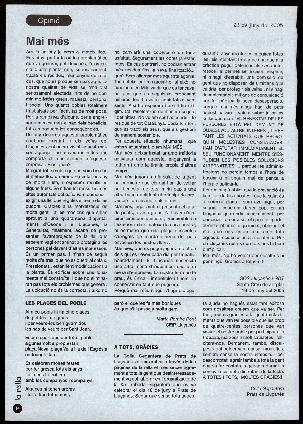 SOS Lluçanès i GDT Santa Creu de Jotglar 19 de juny del 2005