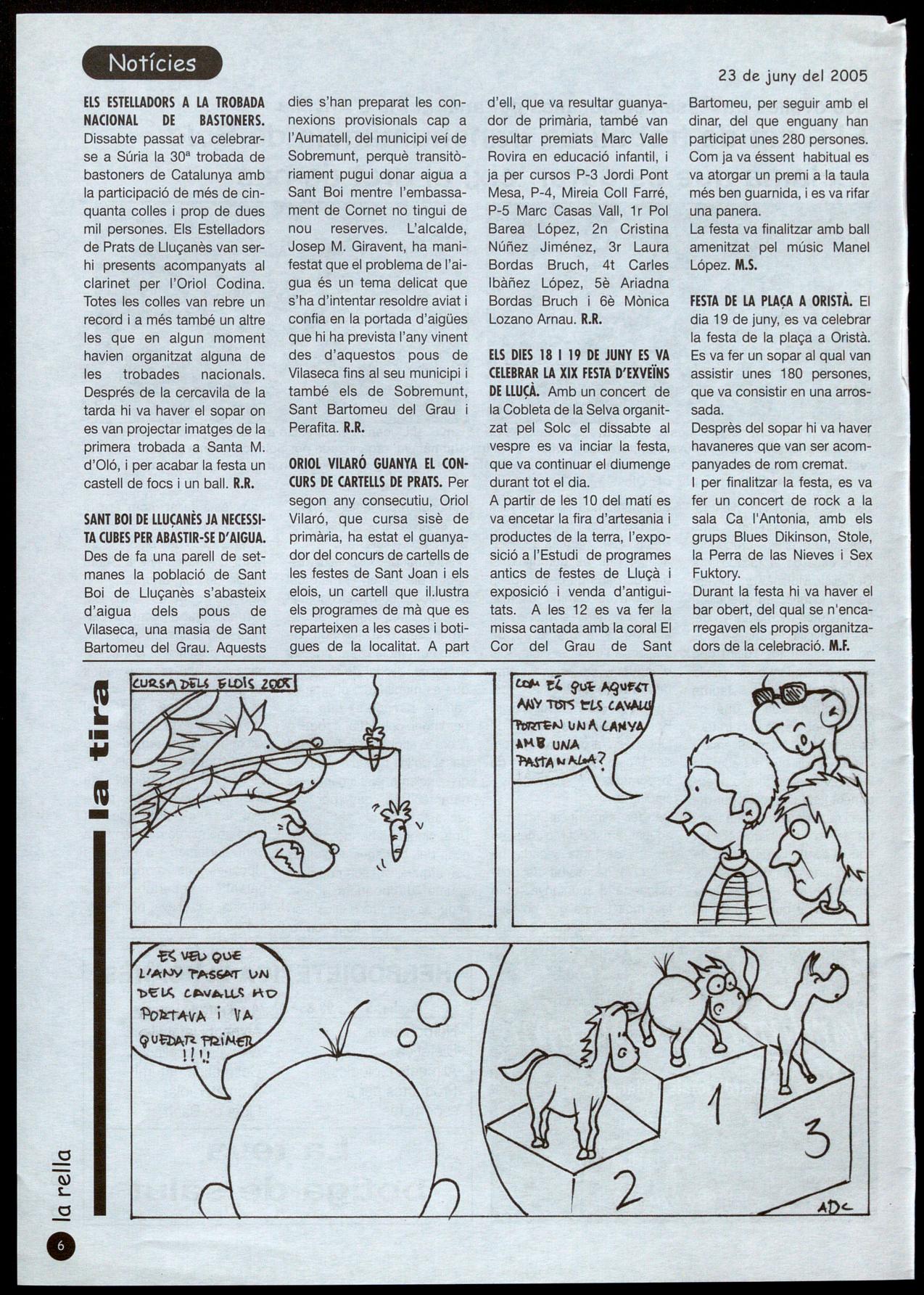 ORIOL VILARÓ GUANYA EL CONCURS DE CARTELLS DE PRATS. Per segon any consecutiu, Oriol Vilaró, que cursa sisè de primària, ha estat el guanyador del concurs de cartells de les festes de Sant Joan els elois, un cartell que il.lustra els programes de mà que es reparteixen a les cases botigues de la localitat. A part