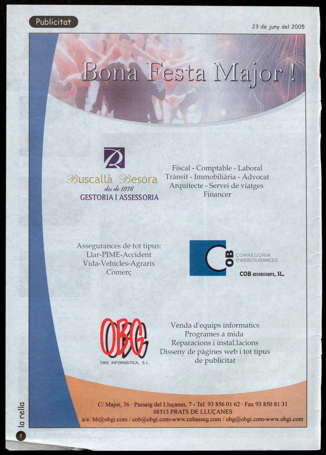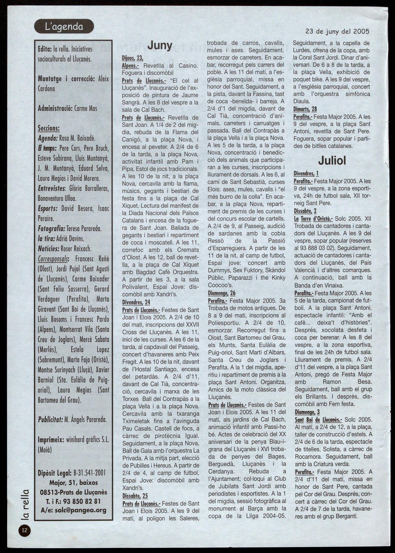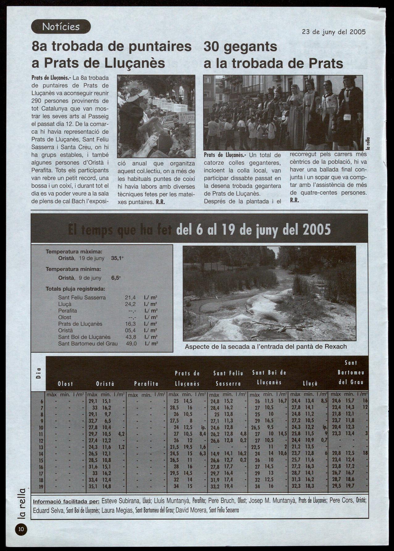 La Colla Gegantera de Prats de Lluçanès vol fer arribar a través de les pàgines de la rella el més sincer agraïment a tota la gent que desinteressadament va col·laborar en l'organització de la Xa Trobada Gegantera que es va celebrar el dia 18 de juny a Prats de Lluçanès. Segur que sense tota aques-
