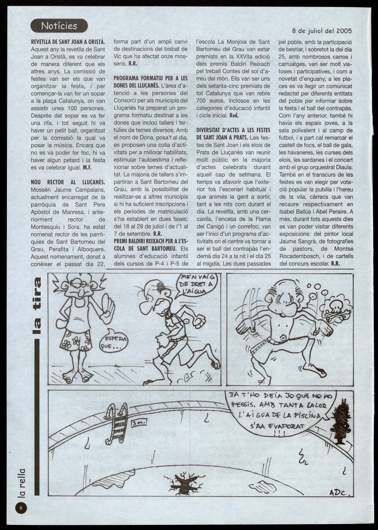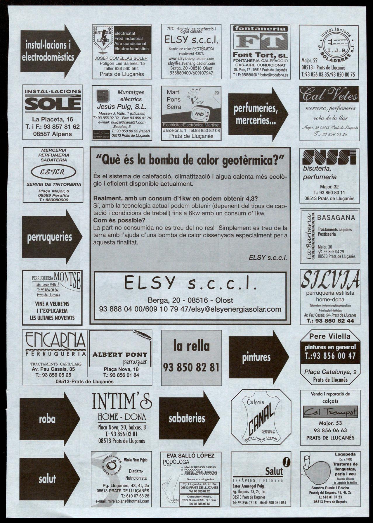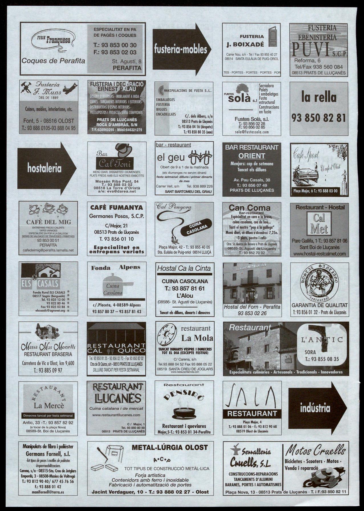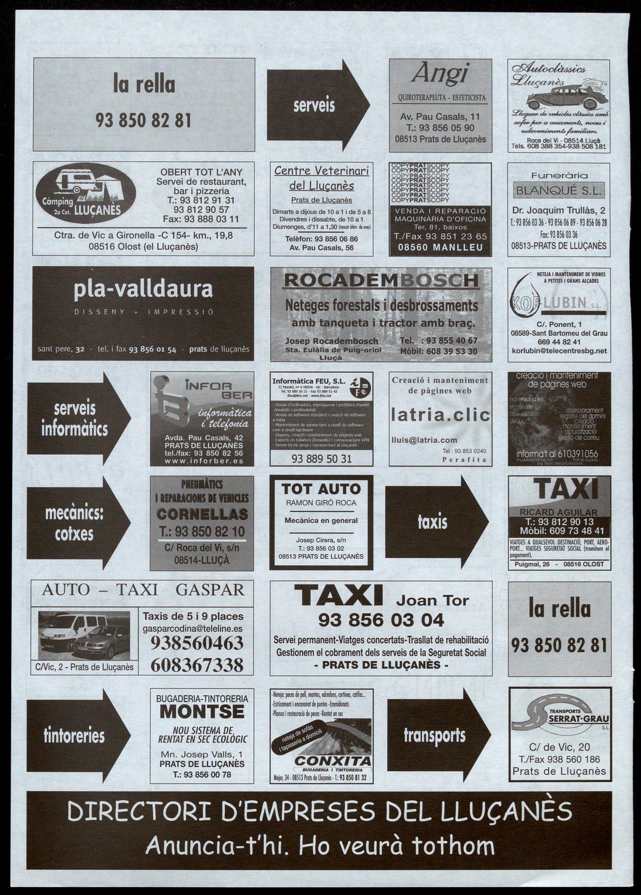 Notícies: Roser Reixach. Corresponsals: Francesc Reñé {Olostl, Jordi Pujol {Sant Agustí de Lluçanèsl, (arme Boixader {Sant Feliu Sasserral, Gerard Verdaguer {Perafital, Marta Giravent {Sant Boi de Lluçanèsl, Lluís Bosoms Francesc Pardo {Alpensl, Montserrat Vila {Santa (reu de Joglarsl, Mercè Sabata {Merlèsl, Estela Lopez {Sobremuntl, Marta Faja {Oristàl, Montse Surinyach {Lluçàl, Xavier Barniol {Sta. Eulàlia de Puig·
