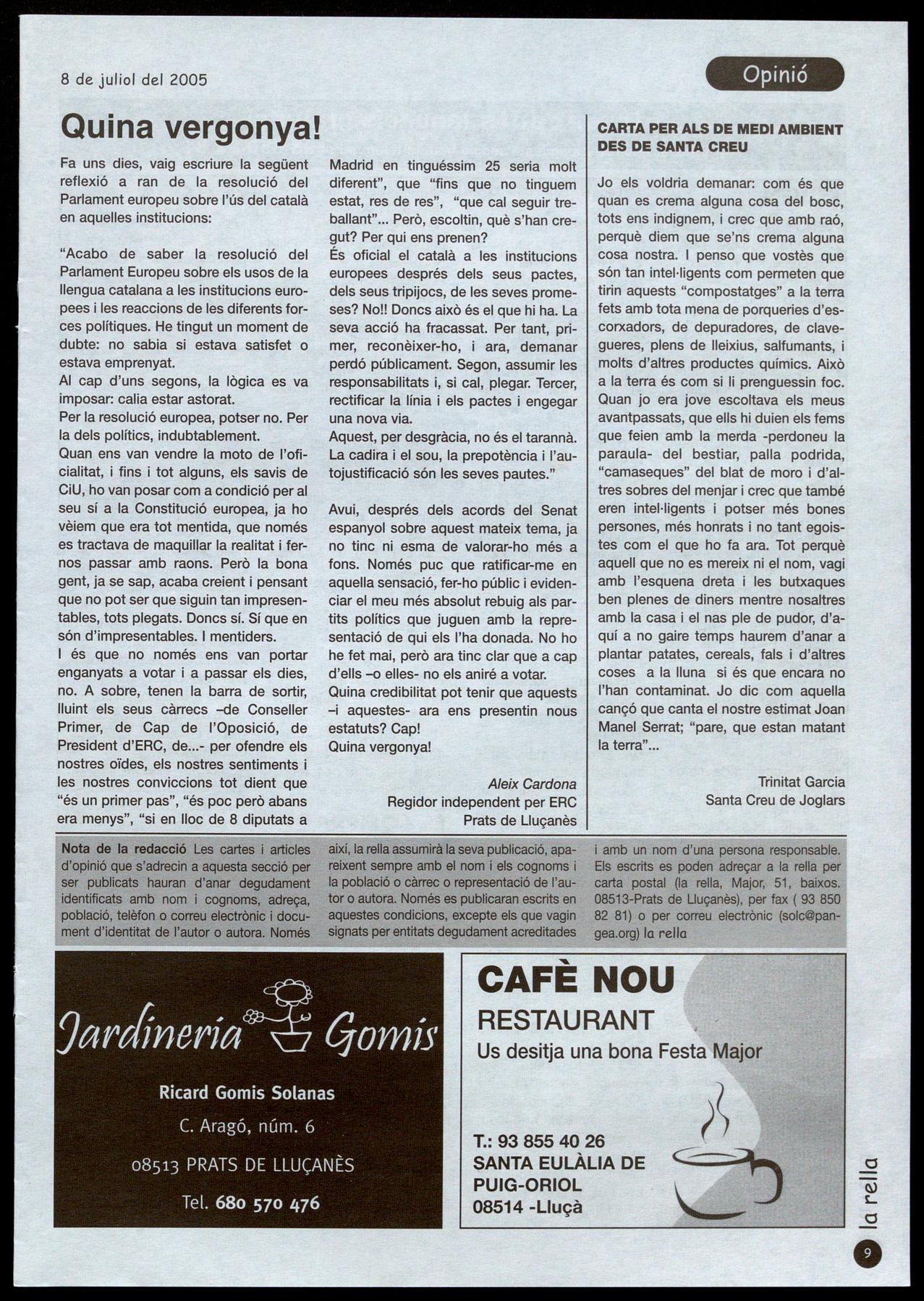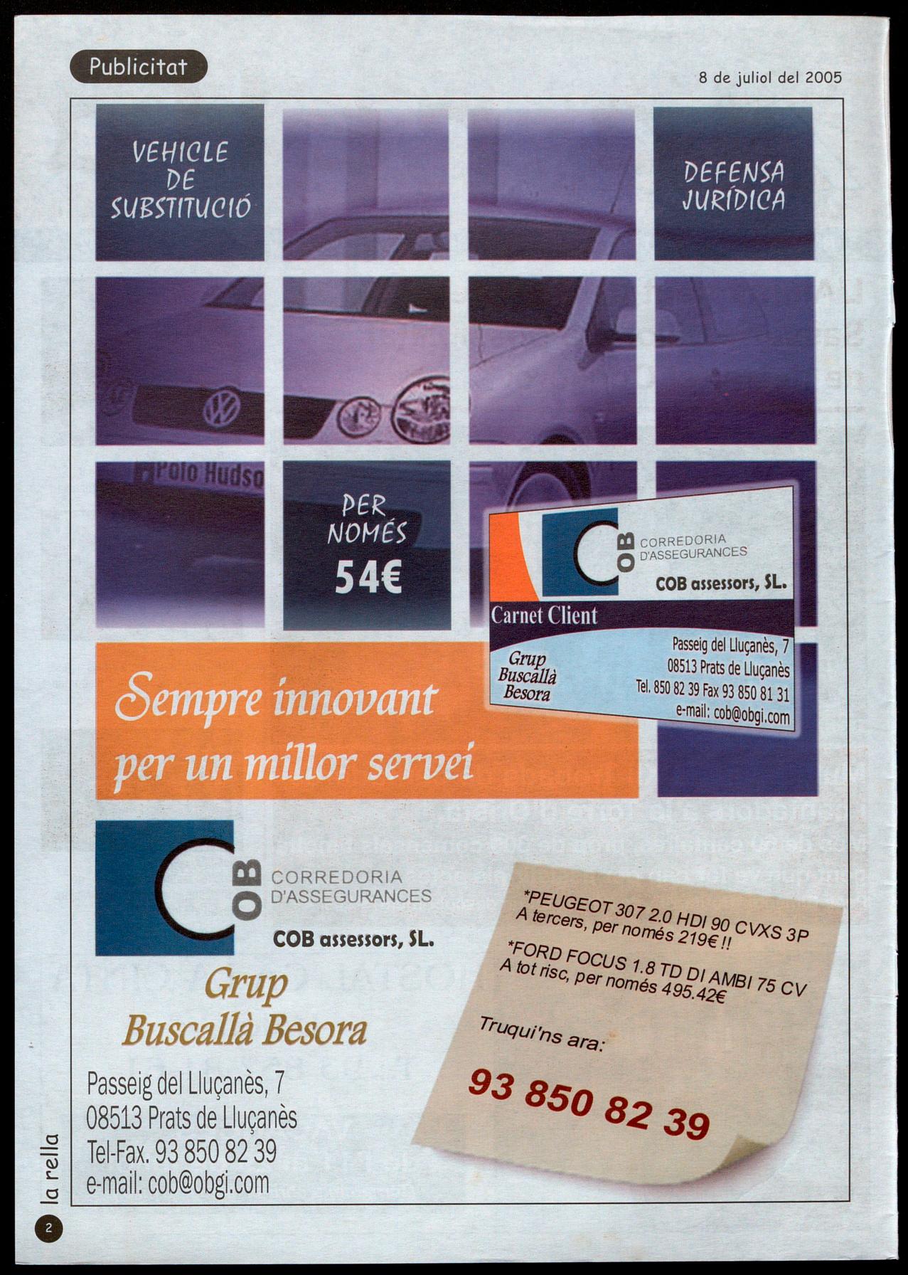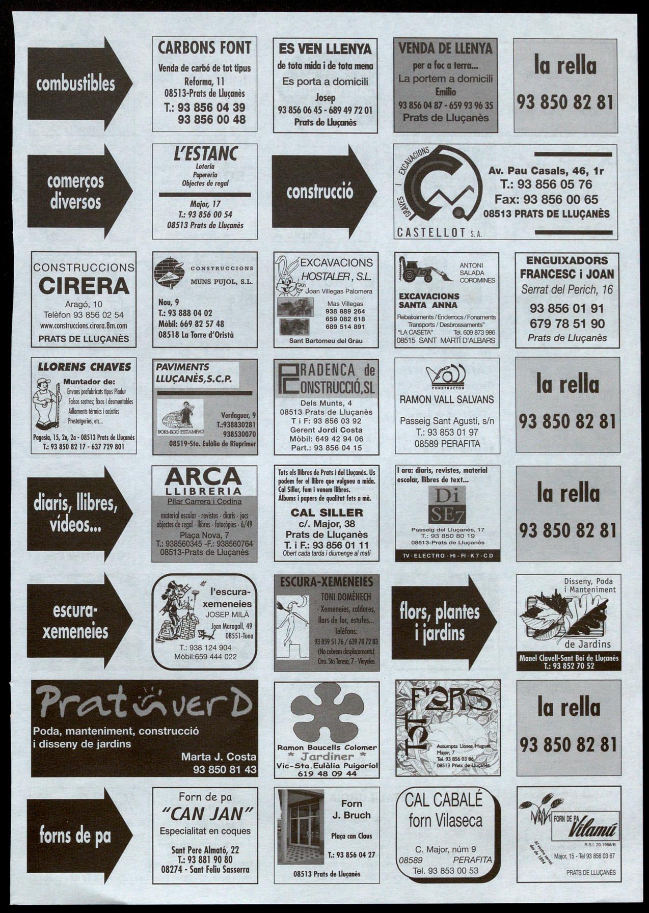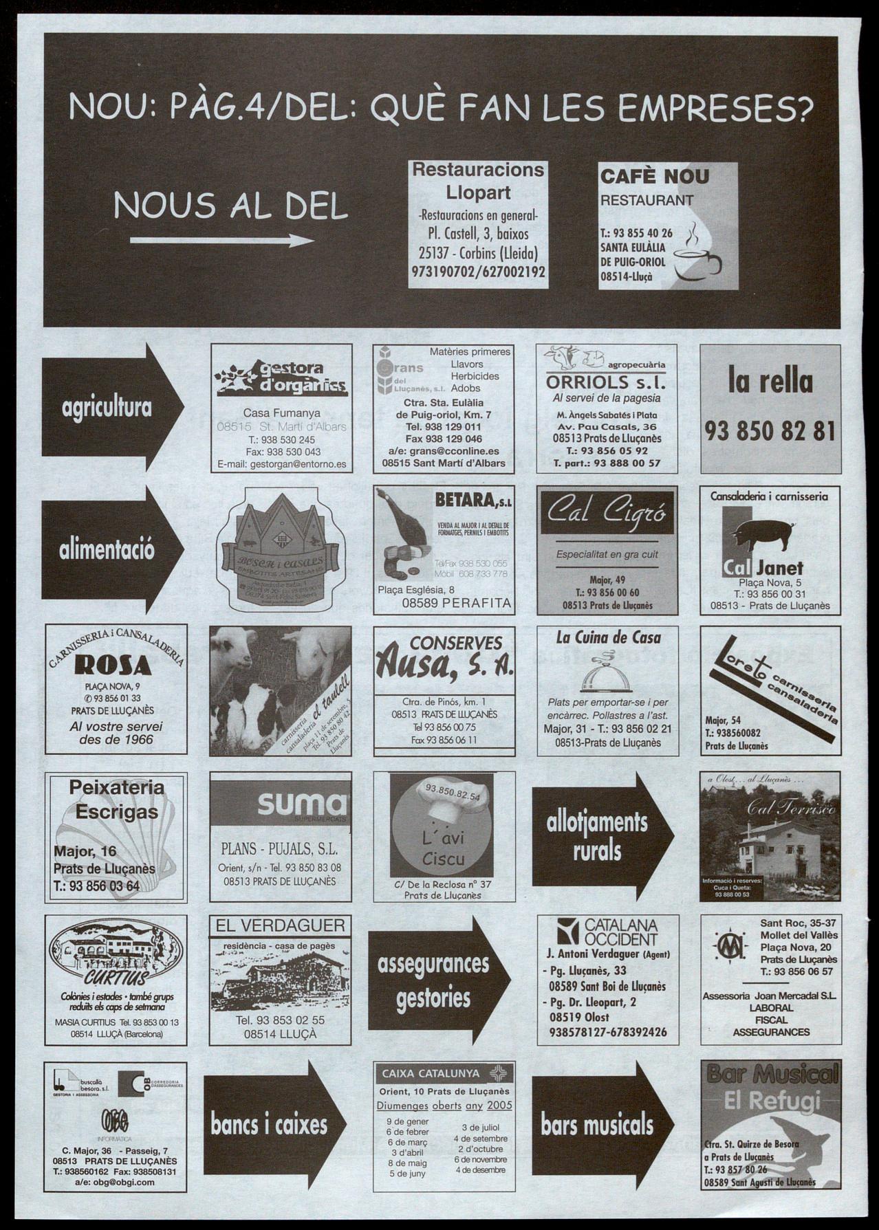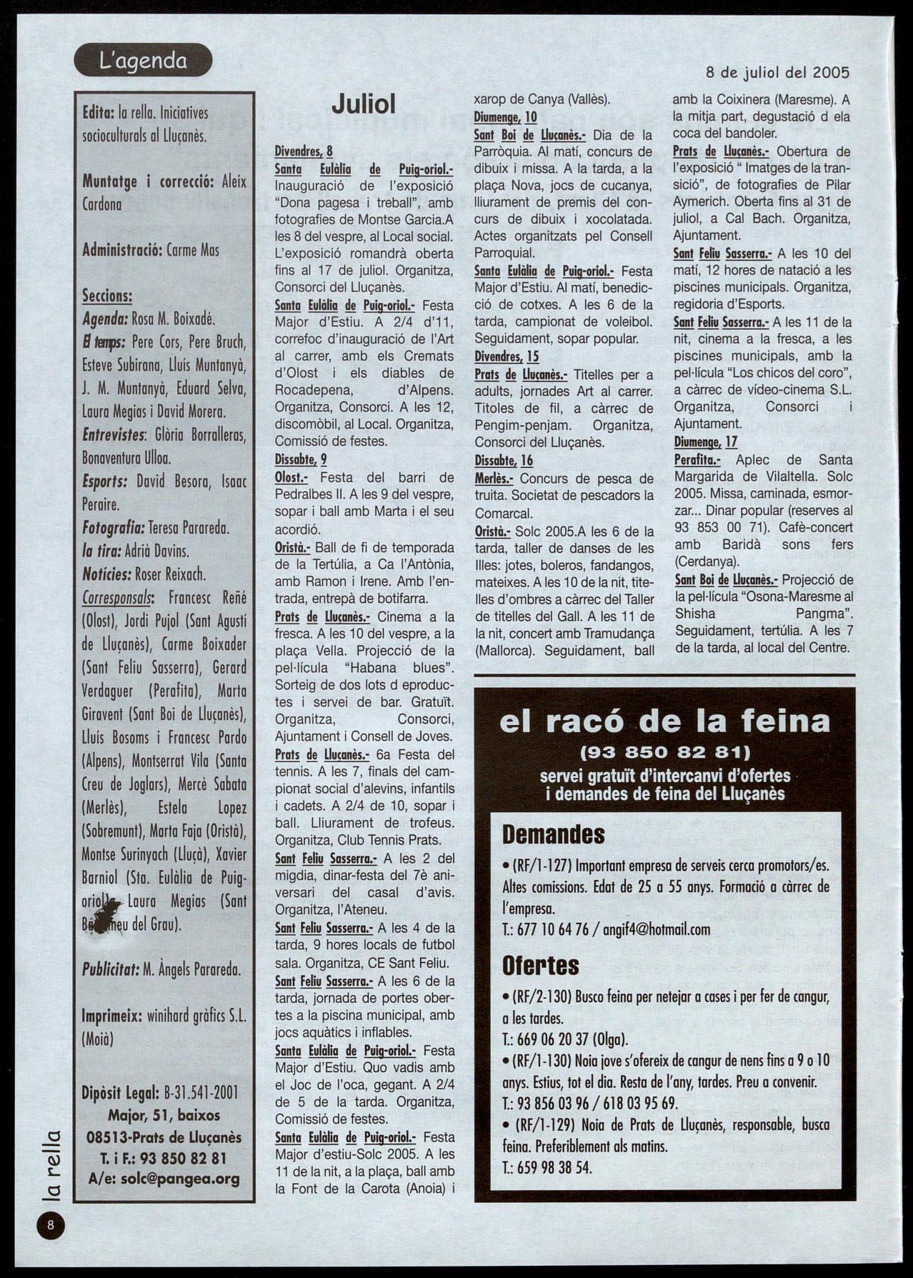 Notícies: Roser Reixach. Corresponsals: Francesc Reñé {Olostl, Jordi Pujol {Sant Agustí de Lluçanèsl, (arme Boixader {Sant Feliu Sasserral, Gerard Verdaguer {Perafital, Marta Giravent {Sant Boi de Lluçanèsl, Lluís Bosoms Francesc Pardo {Alpensl, Montserrat Vila {Santa (reu de Joglarsl, Mercè Sabata {Merlèsl, Estela Lopez {Sobremuntl, Marta Faja {Oristàl, Montse Surinyach {Lluçàl, Xavier Barniol {Sta. Eulàlia de Puig·